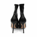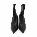 Jimmy Choo 'Brin' sock boots in black smooth leather with a stiletto heel and a pointed toe.