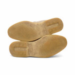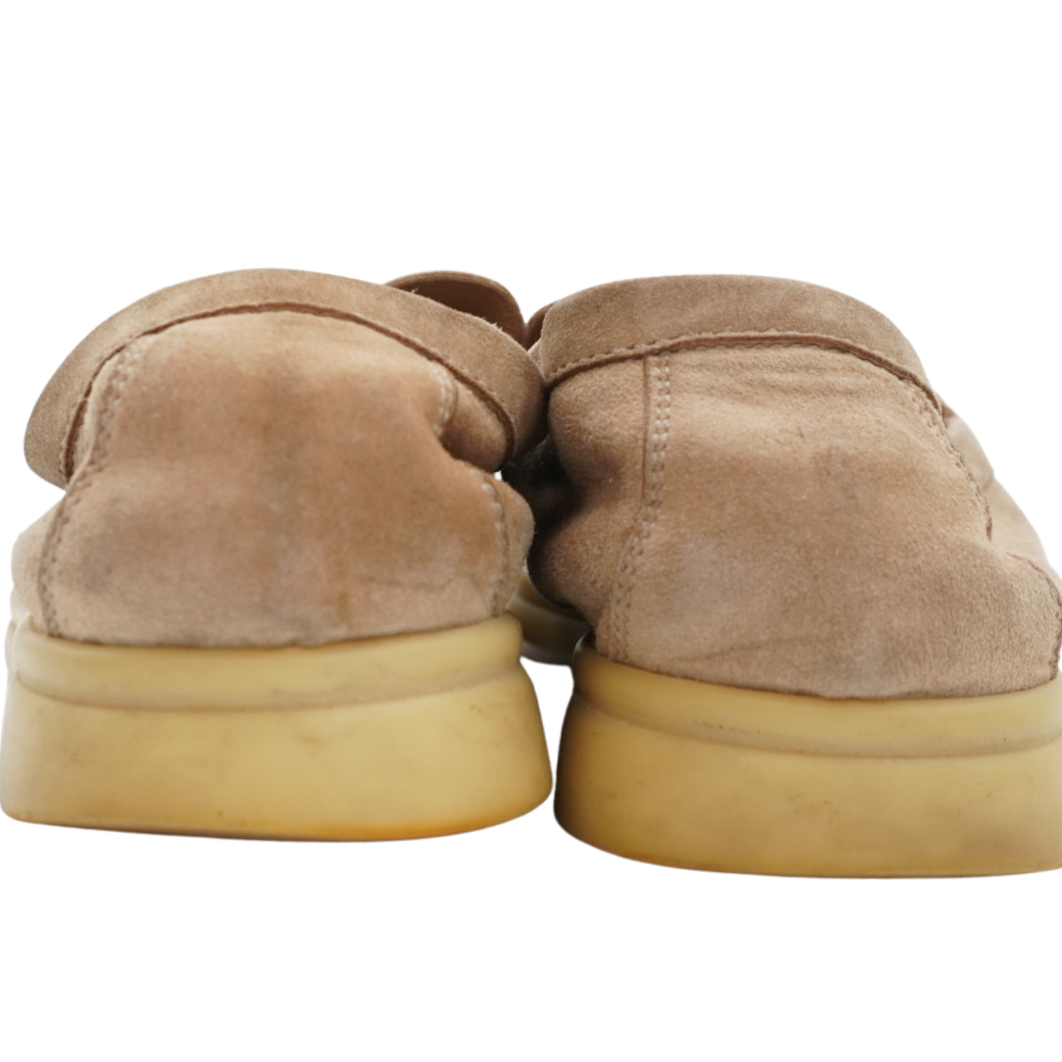 Loro Piana 'Summer Walk' loafers in beige suede with a gold charm detail and a tonal rubber sole.