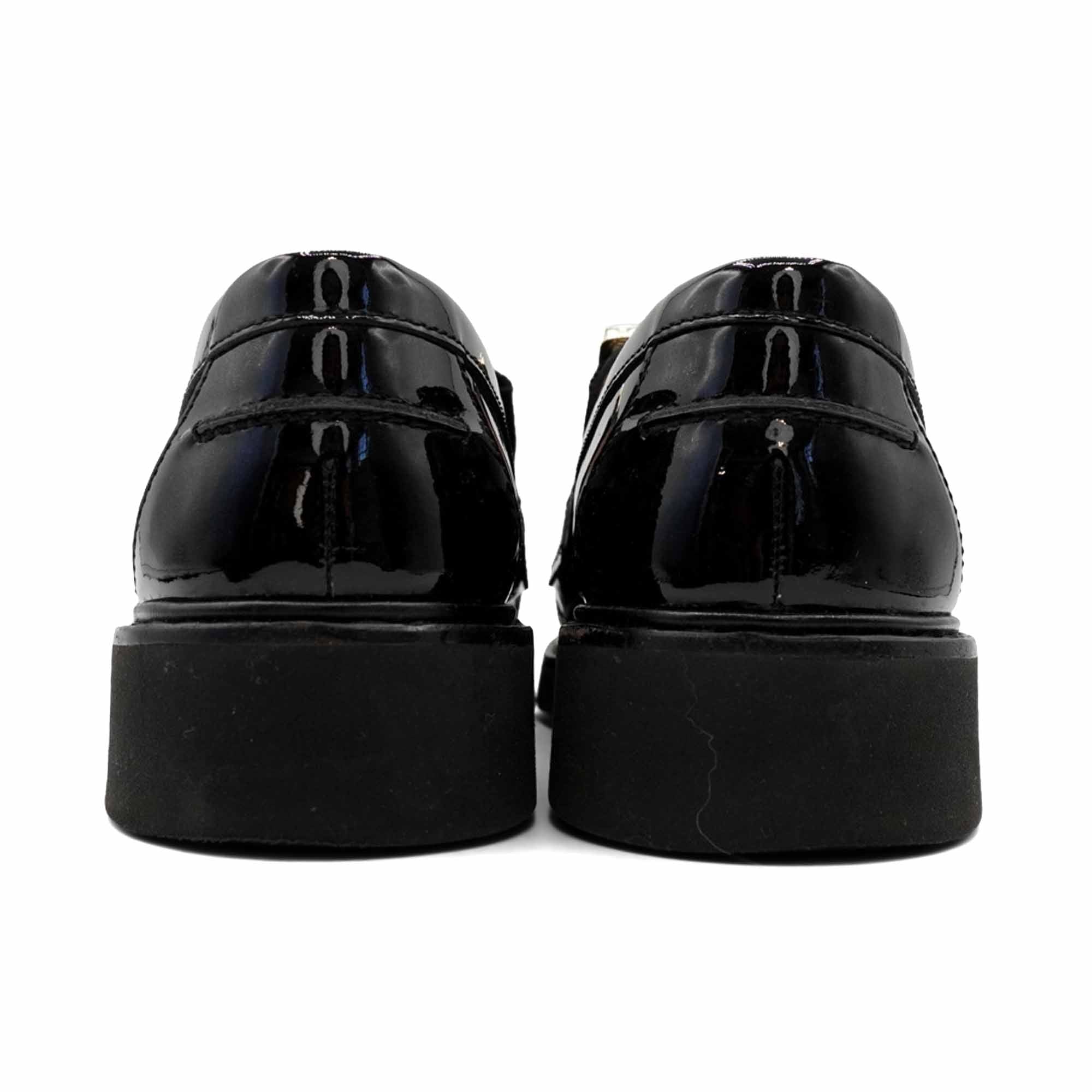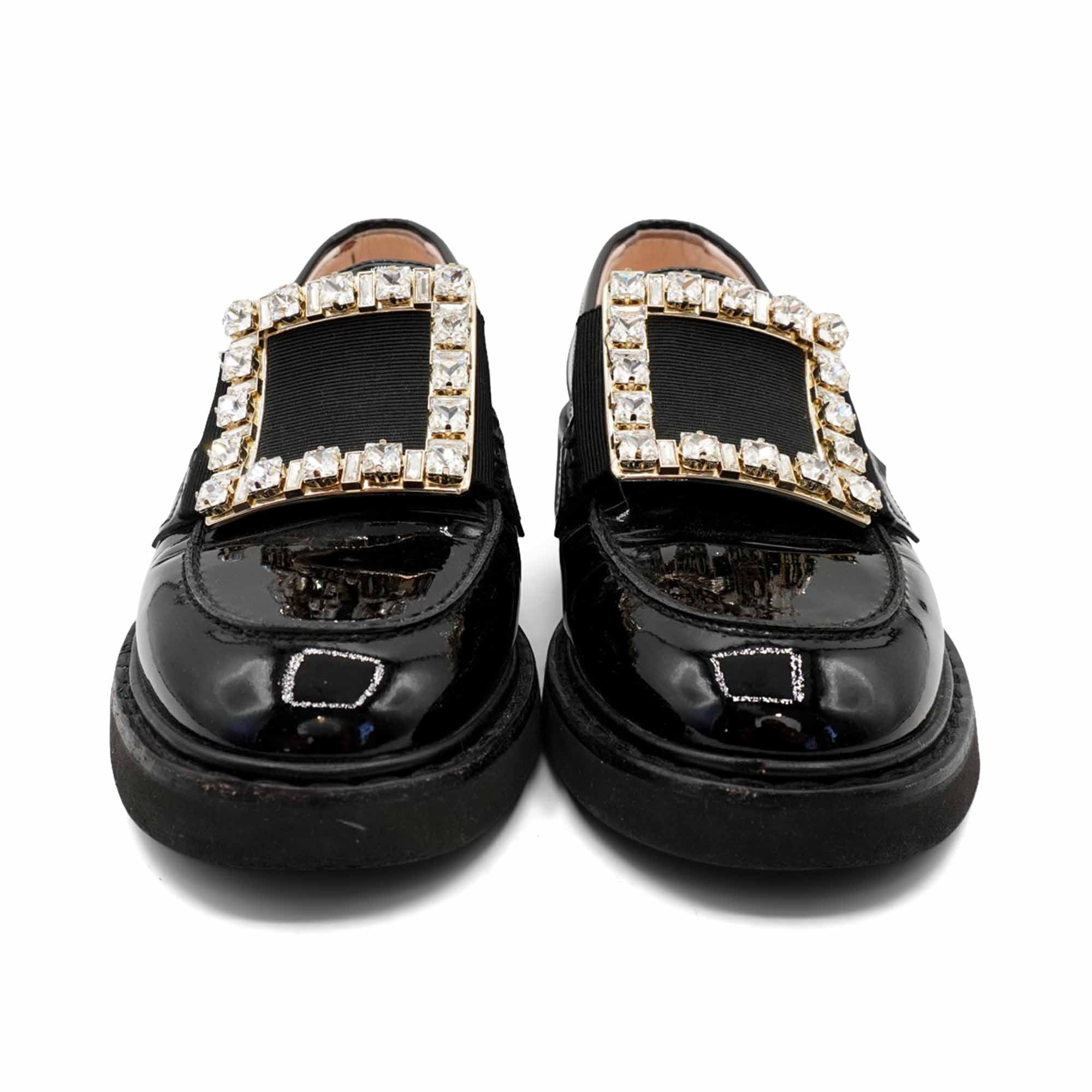 Roger Vivier 'Viv Ranger' loafers in black patent leather with gold and crystal embellished buckle.