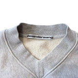 Alexander Wang cropped sweatshirt in grey cotton with a v-neckline and a small embroidered logo on the chest.
