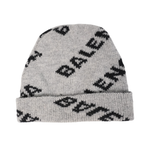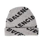 Balenciaga hat in grey wool with an all-over black monogram pattern.