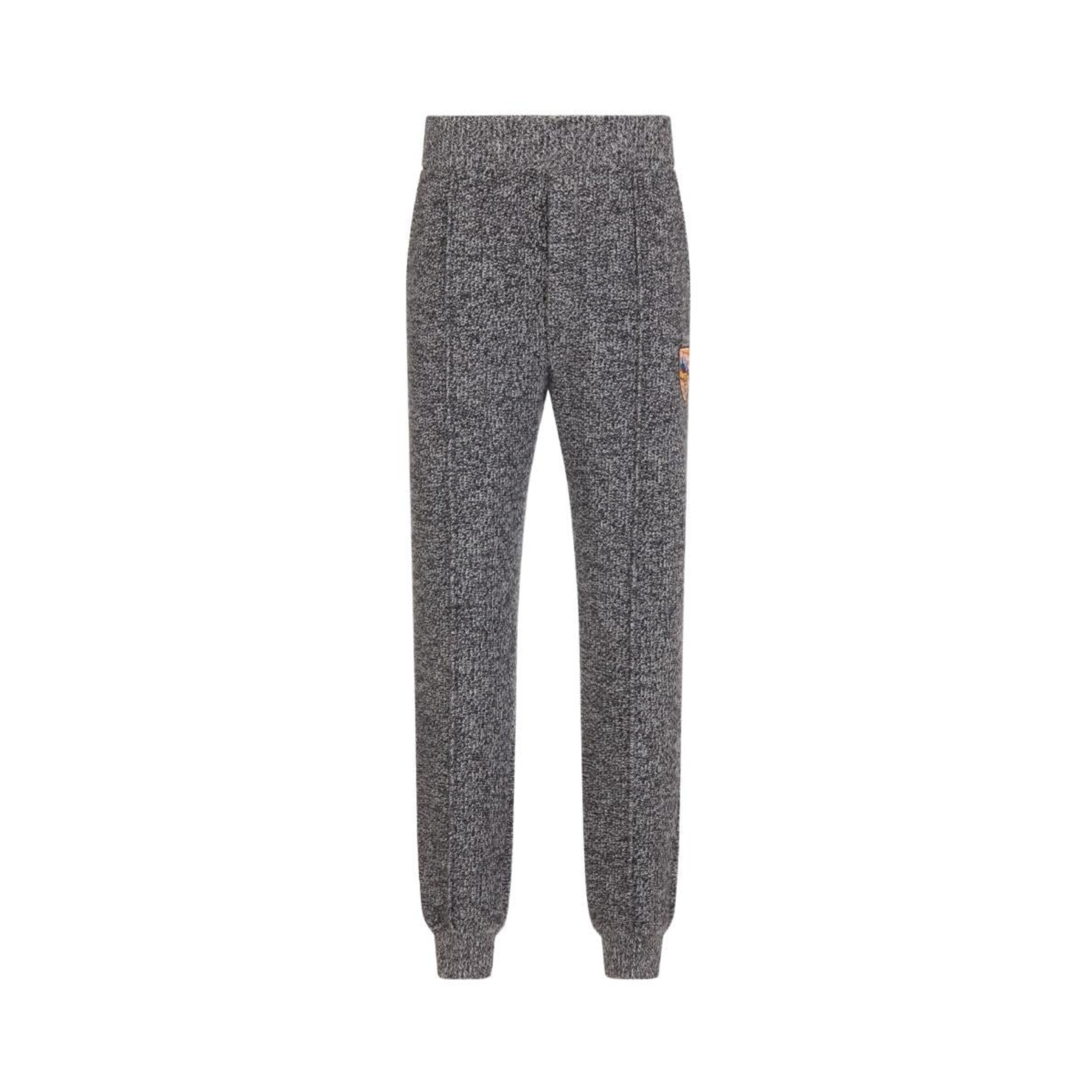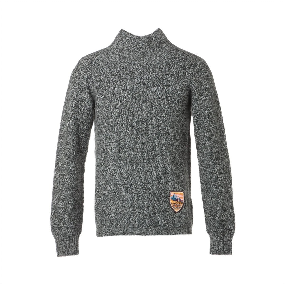 Dior Homme x Jack Kerouac salt and pepper knit two-piece set. Includes pull-over sweater with a mock neck, ribbed sleeve cuffs and bottom hem and an embroidered mountain range logo patch. Pants are joggers with ribbed waist and ankle cuffs, drawstring waist, seams down front of legs, hand pockets in front, flap pockets on back and an embroidered mountain range logo patch.