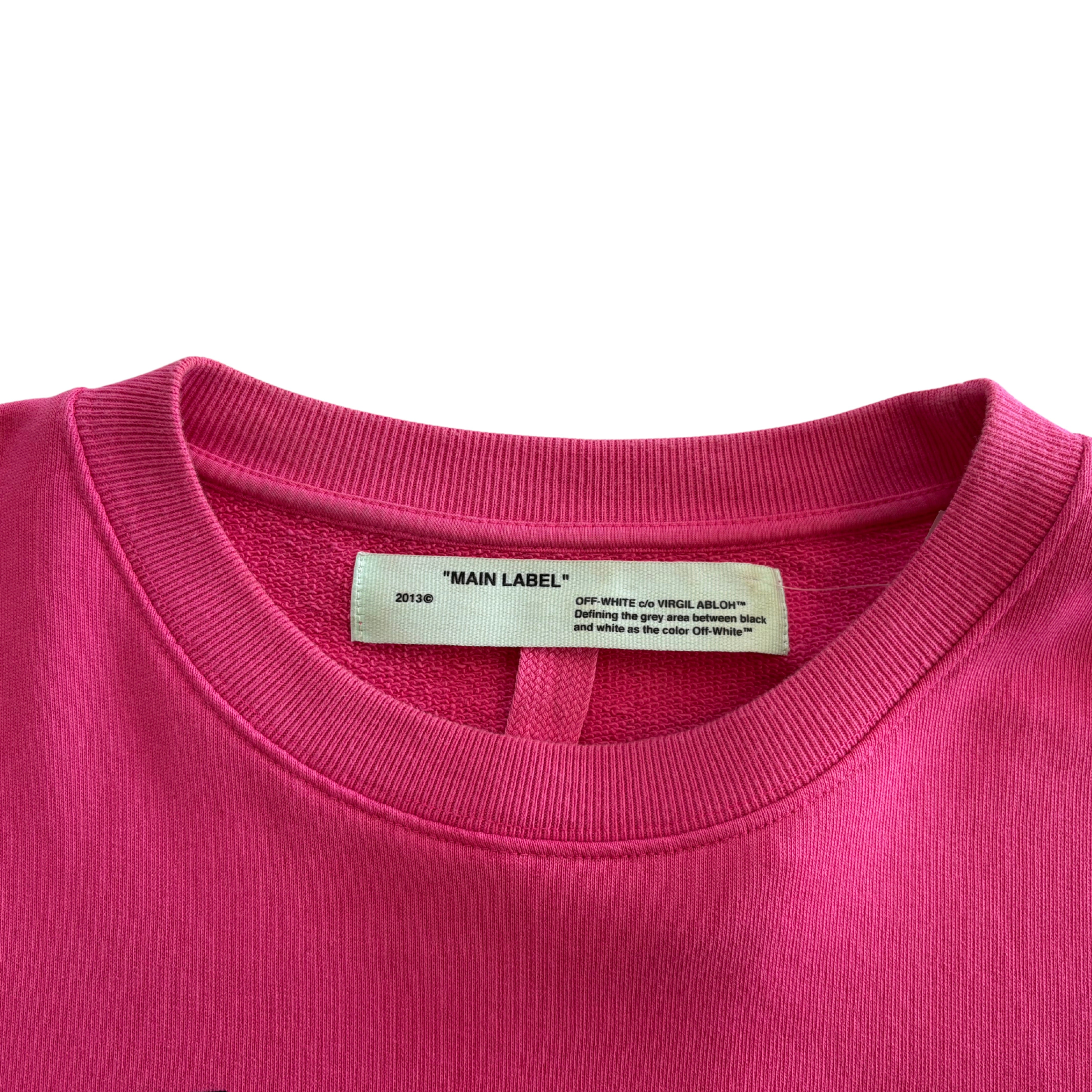 OFF-WHITE 'Impressionism' hot pink crewneck sweatshirt with black and white graphics on the front, back, and both sleeves.