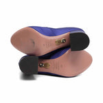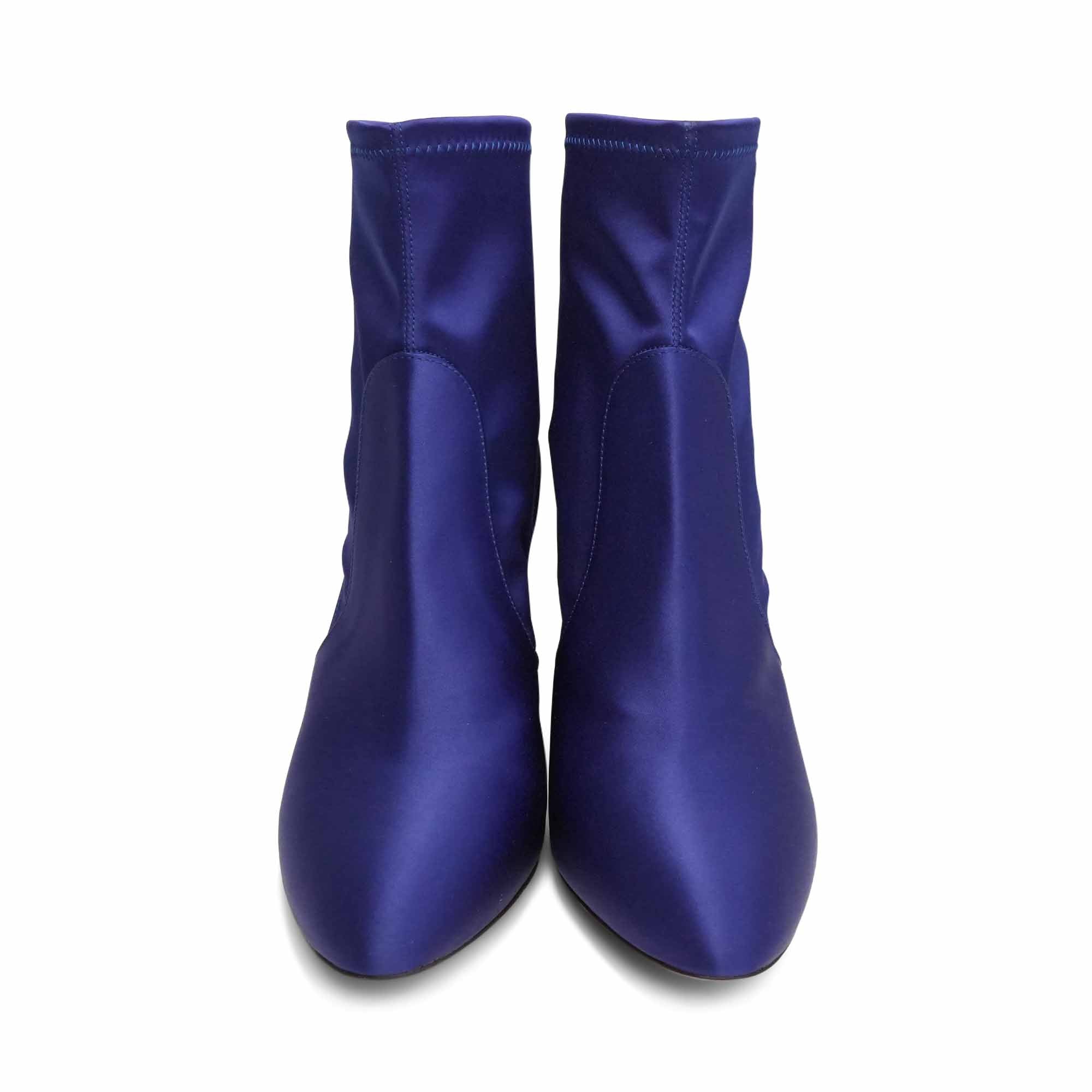 Aquazzura 'So Me' almond toe sock ankle boots in royal blue stretch satin with block heel.