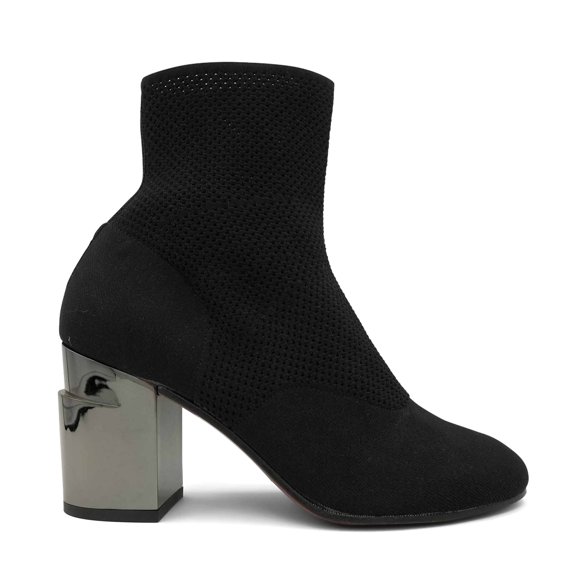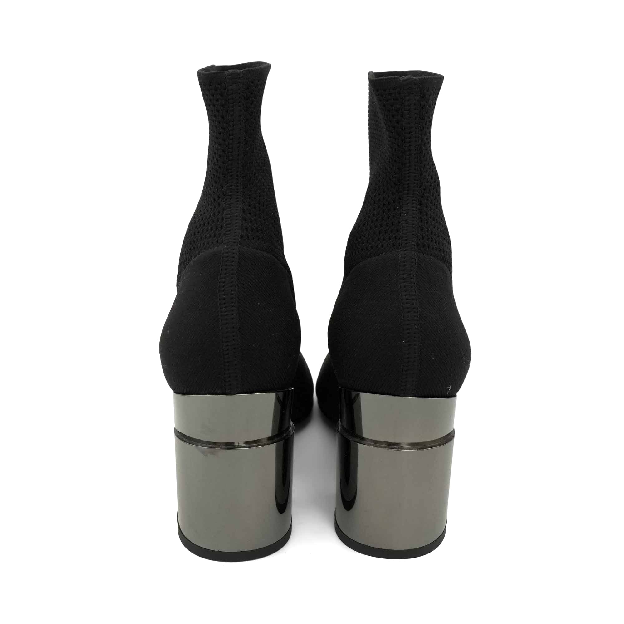 Clergerie 'Keane' sock boots in black perforated stretch canvas with a silver metal slotted heel.