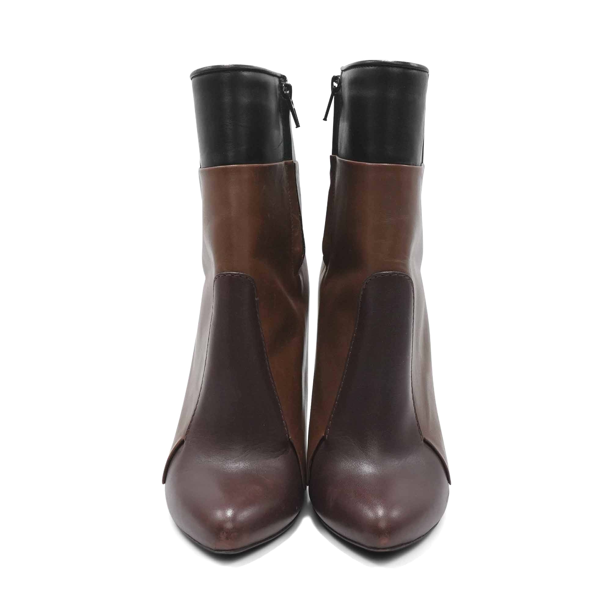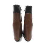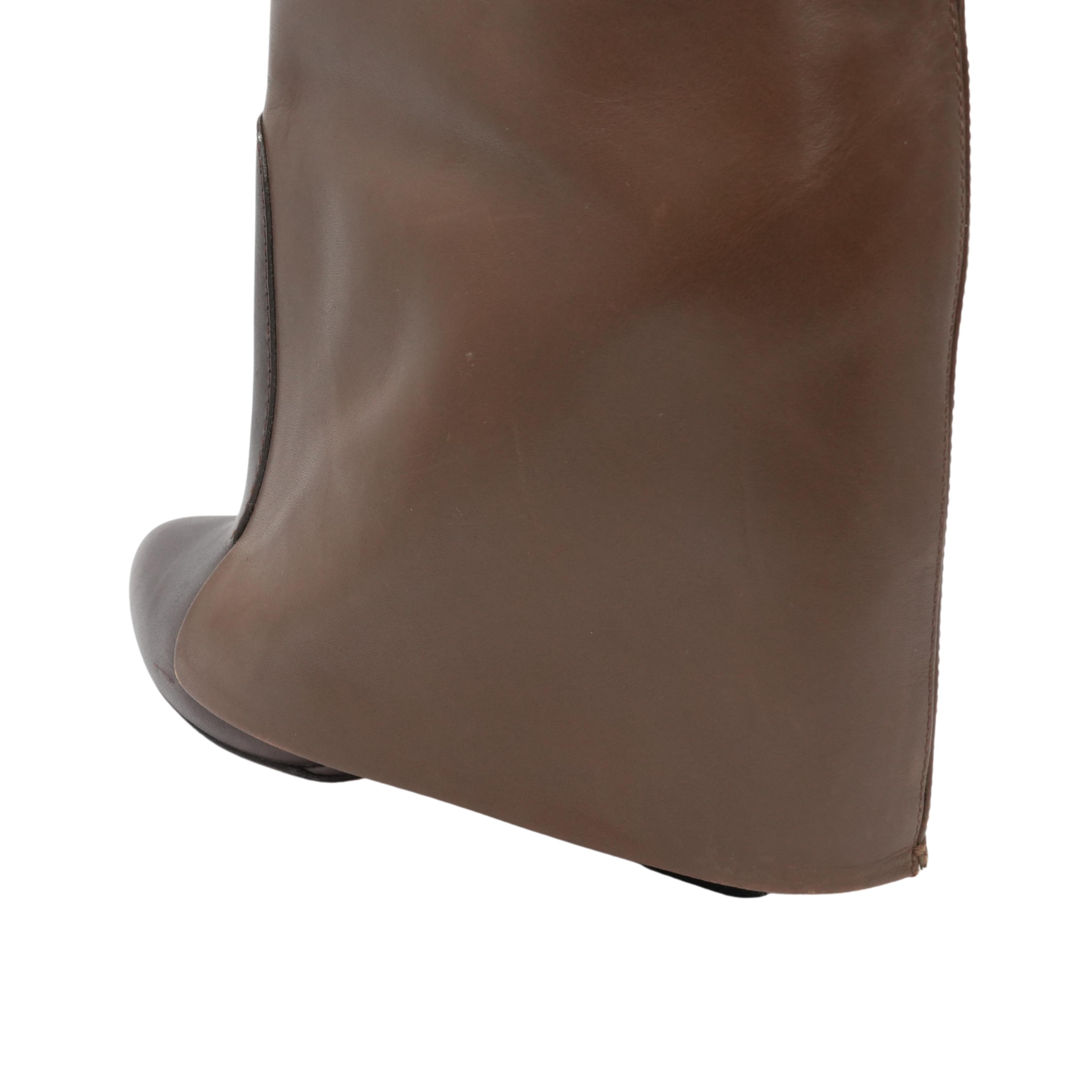 Givenchy tricolour foldover style 'Shark' boot in light brown, dark brown and black leather. Features a side zip, a chunky kitten heel and hidden inner wedge for extra height.