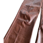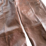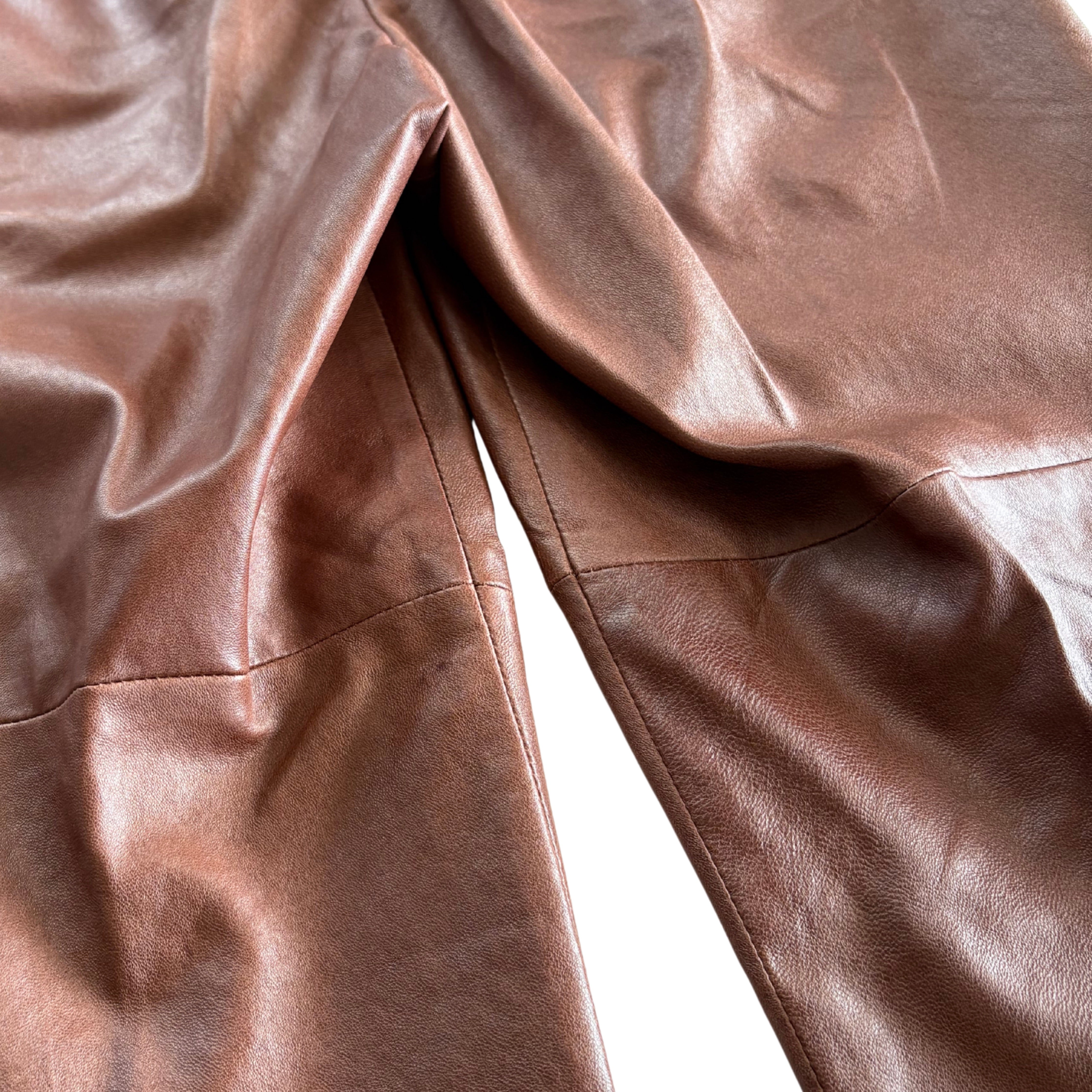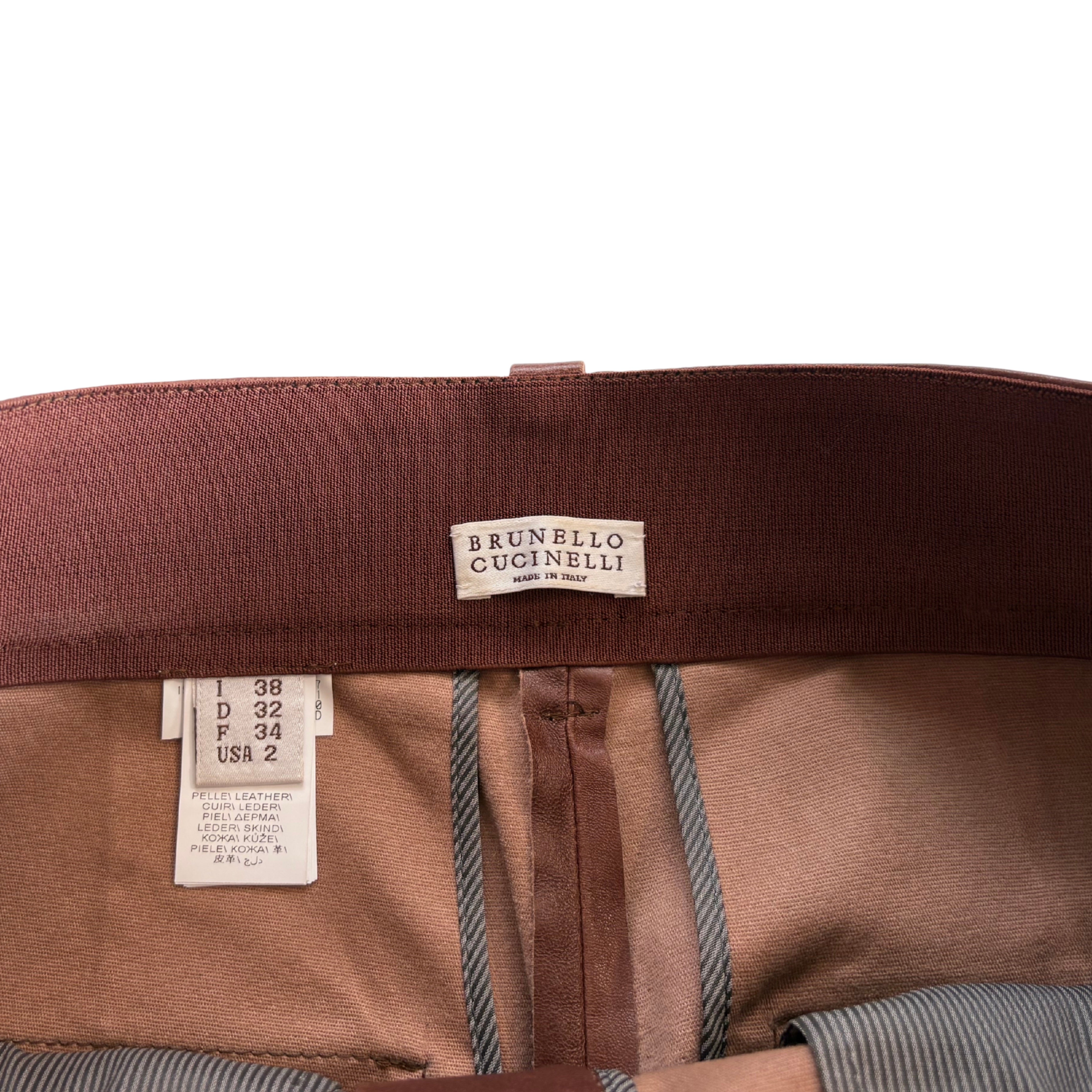 Brunello Cucinelli straight-leg pants in brown leather with a front hook closure and a centre pleat down the legs.
