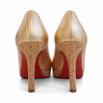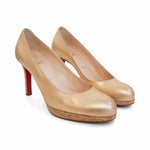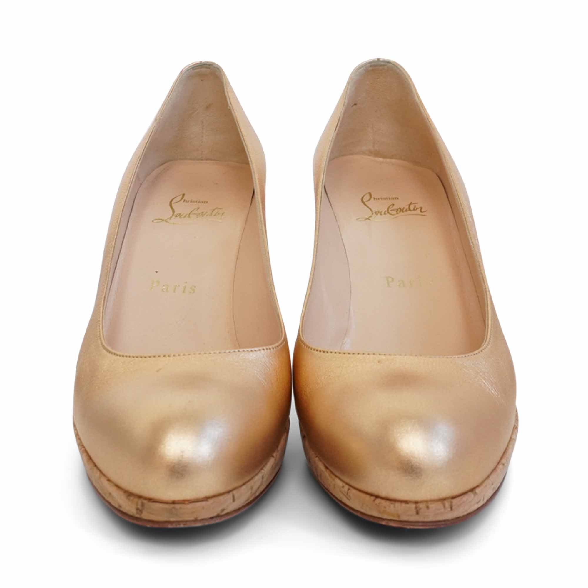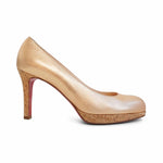 Christian Louboutin 'Simple' pumps in metallic rose gold leather with a platform cork sole and heel.