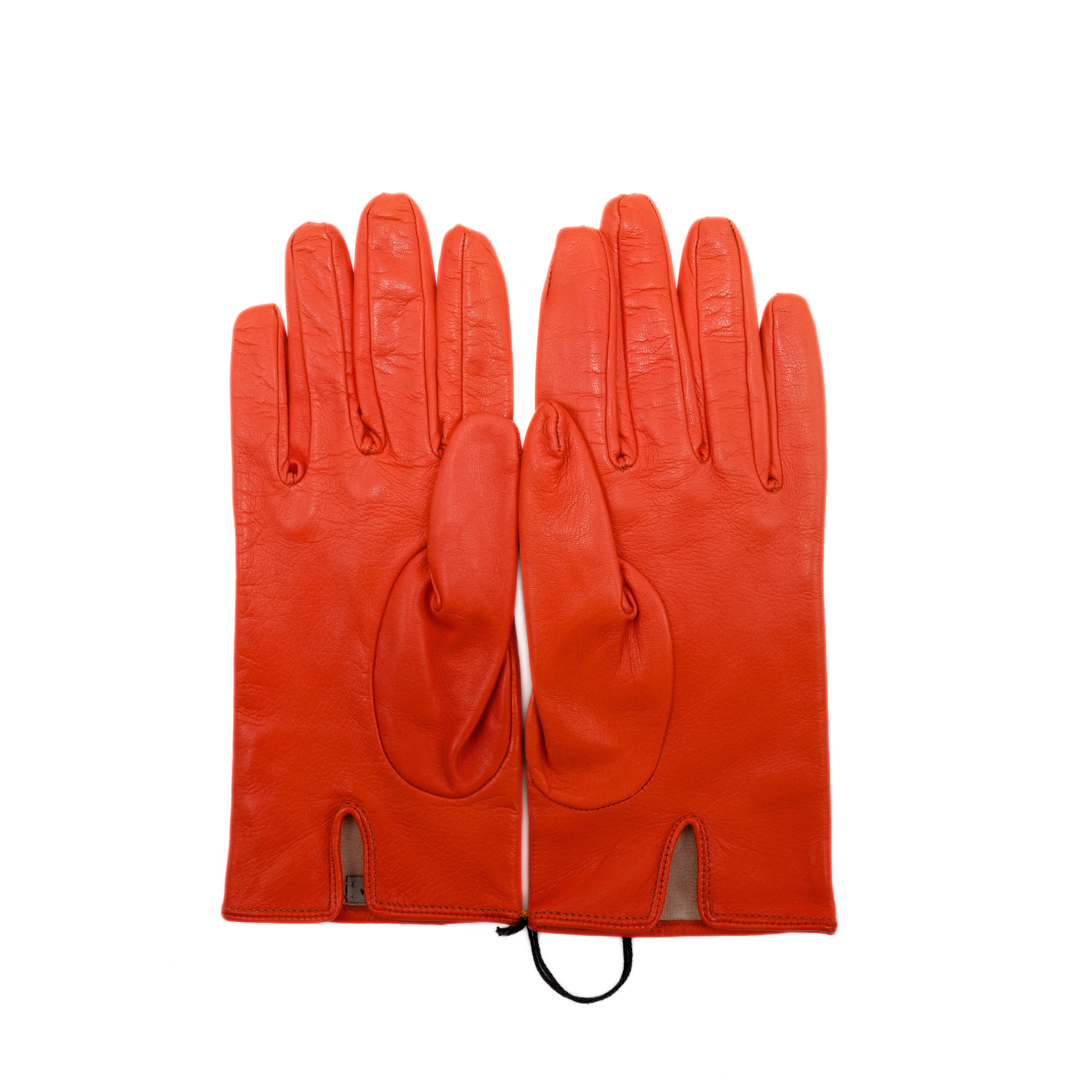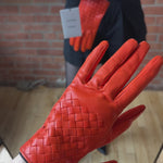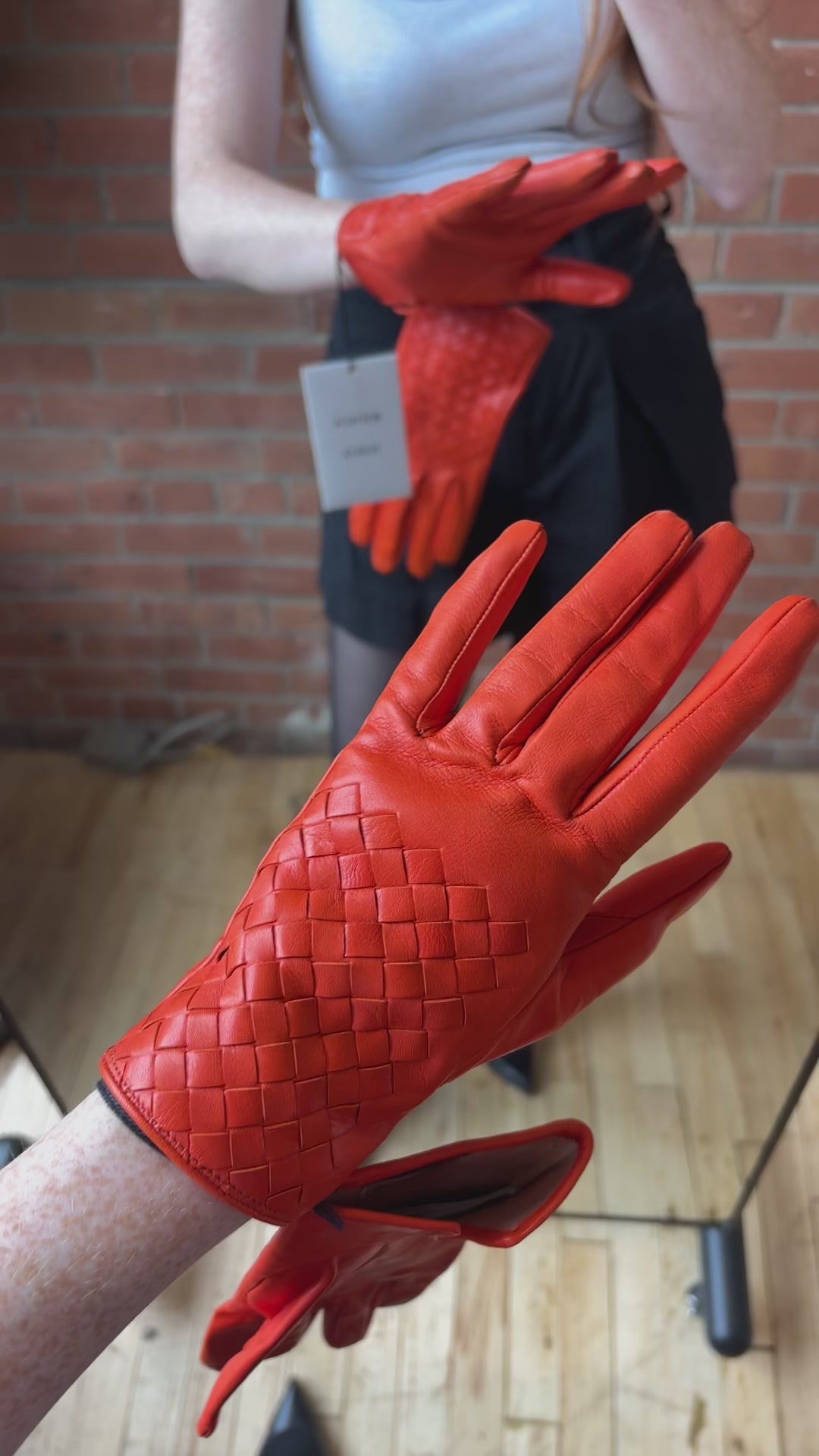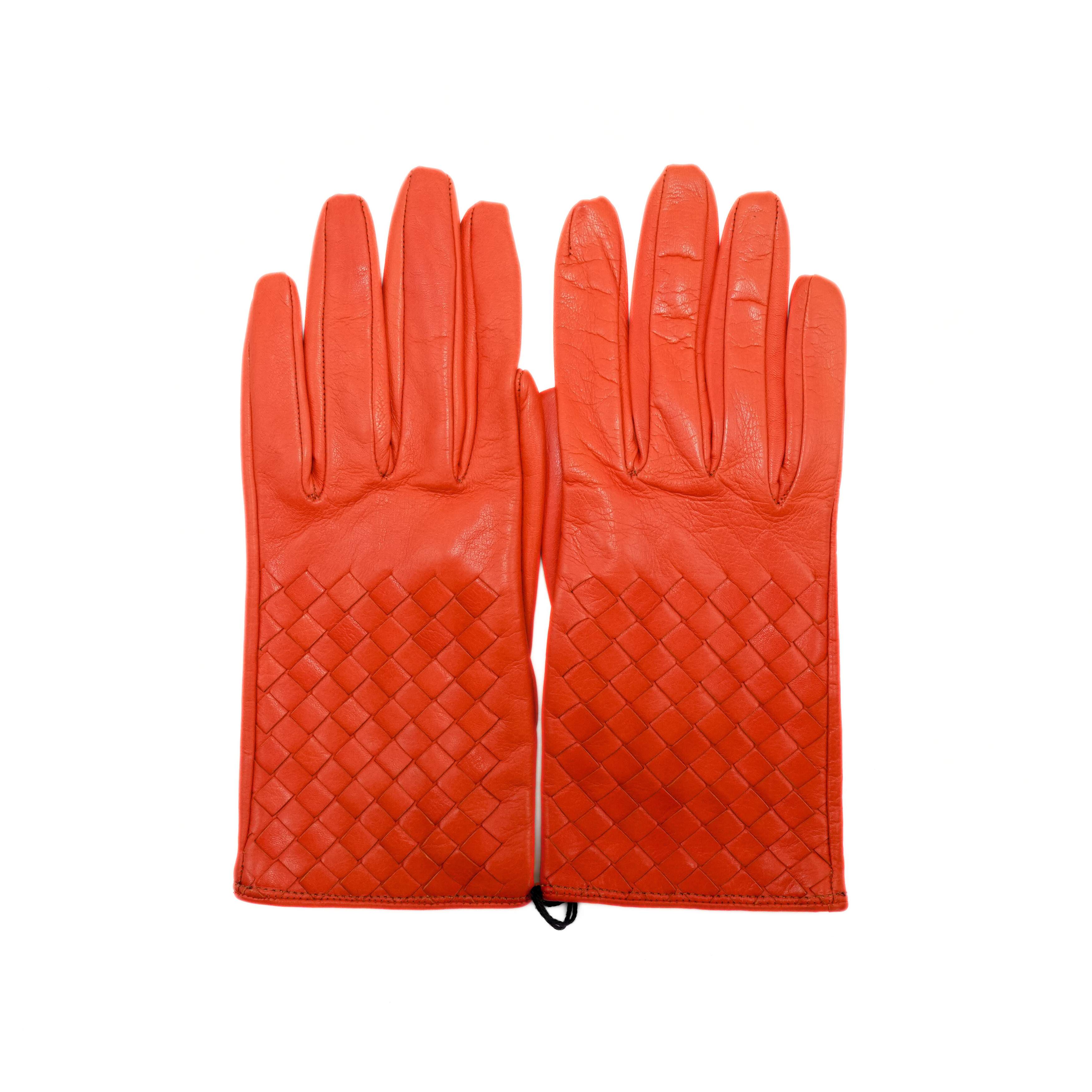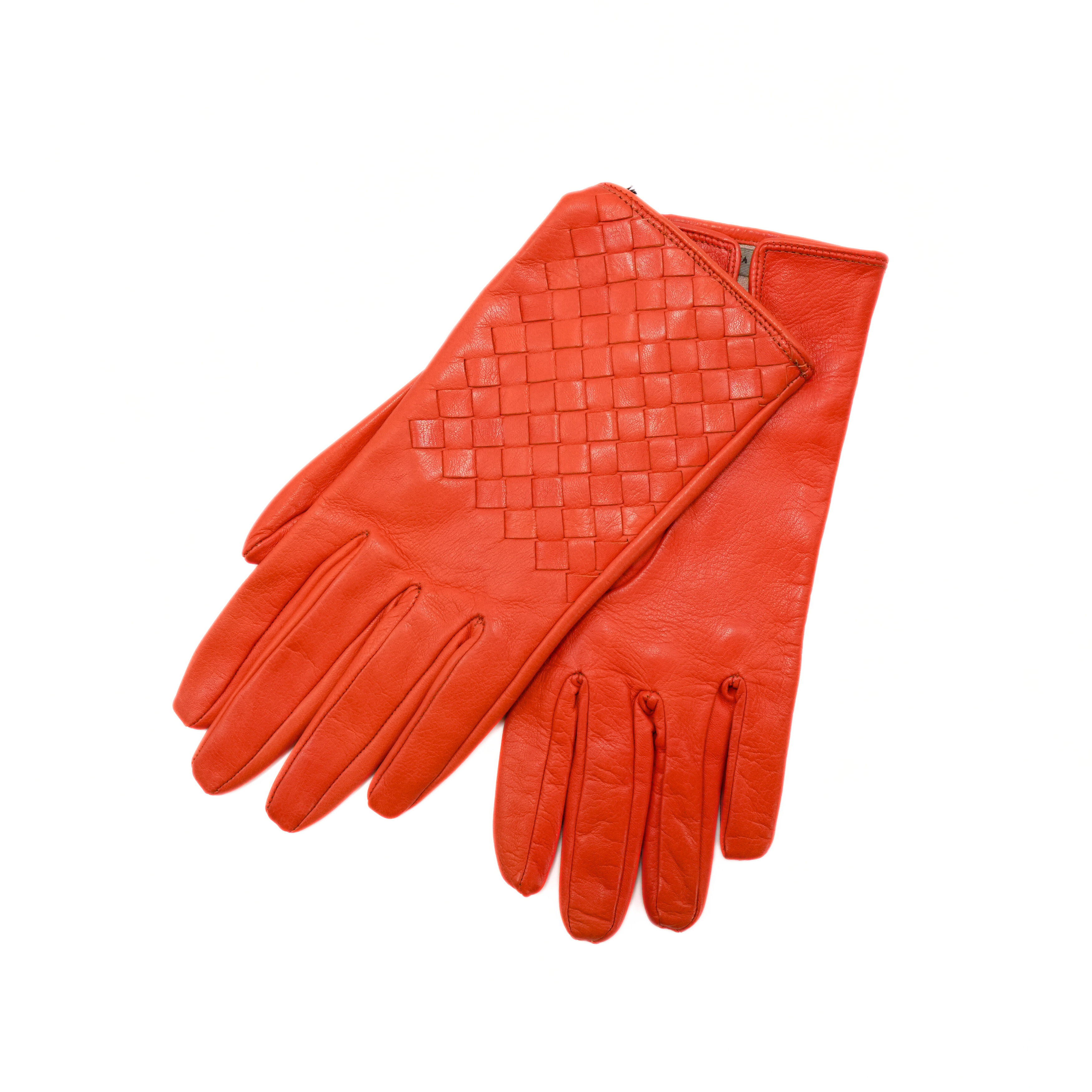Bottega Veneta gloves in orange intrecciato lambskin leather.