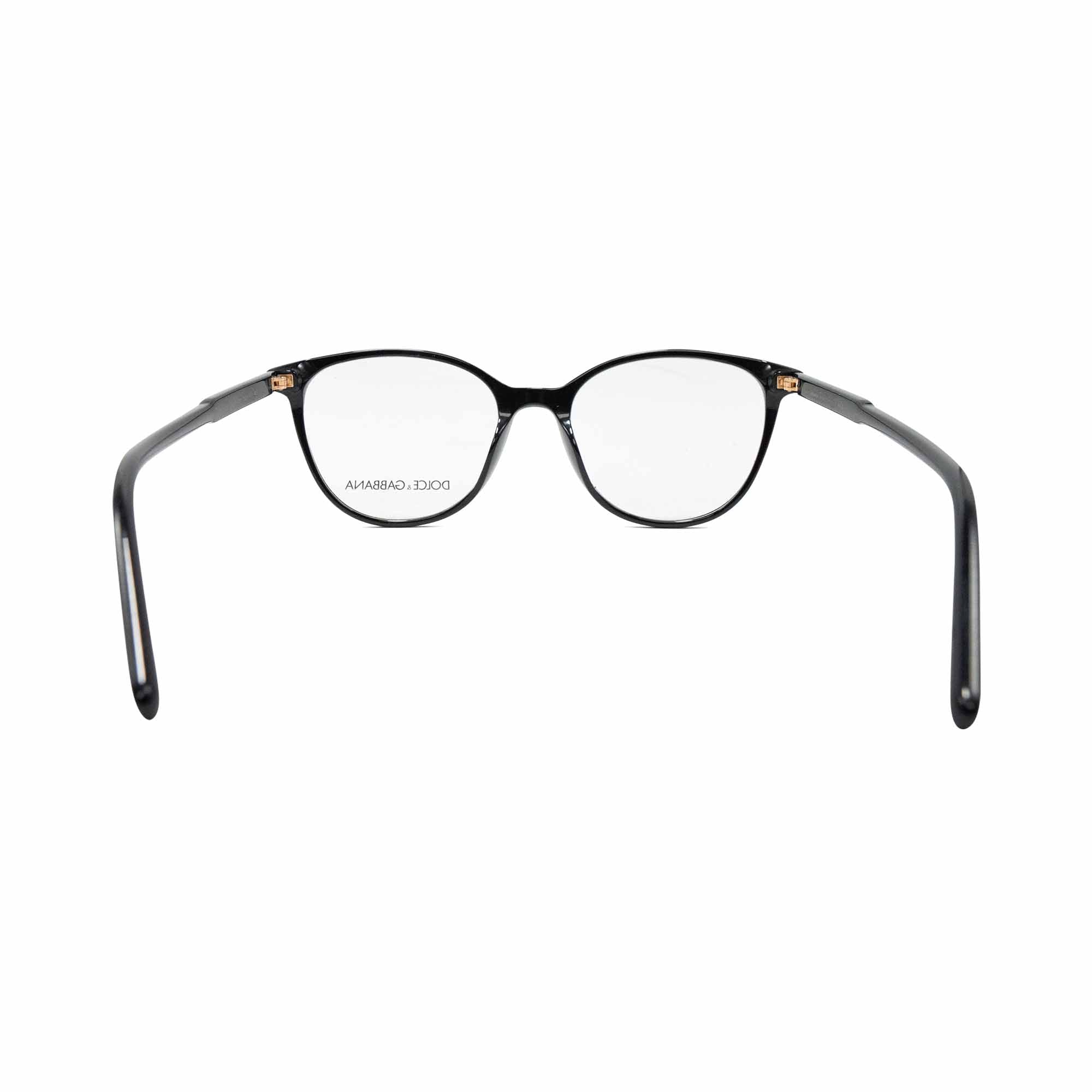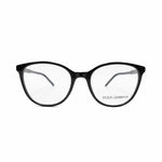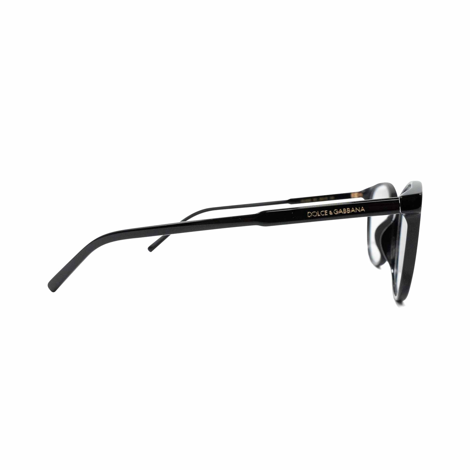 Dolce and Gabbana oval reading glasses in black acetate with a logo on the left lens.