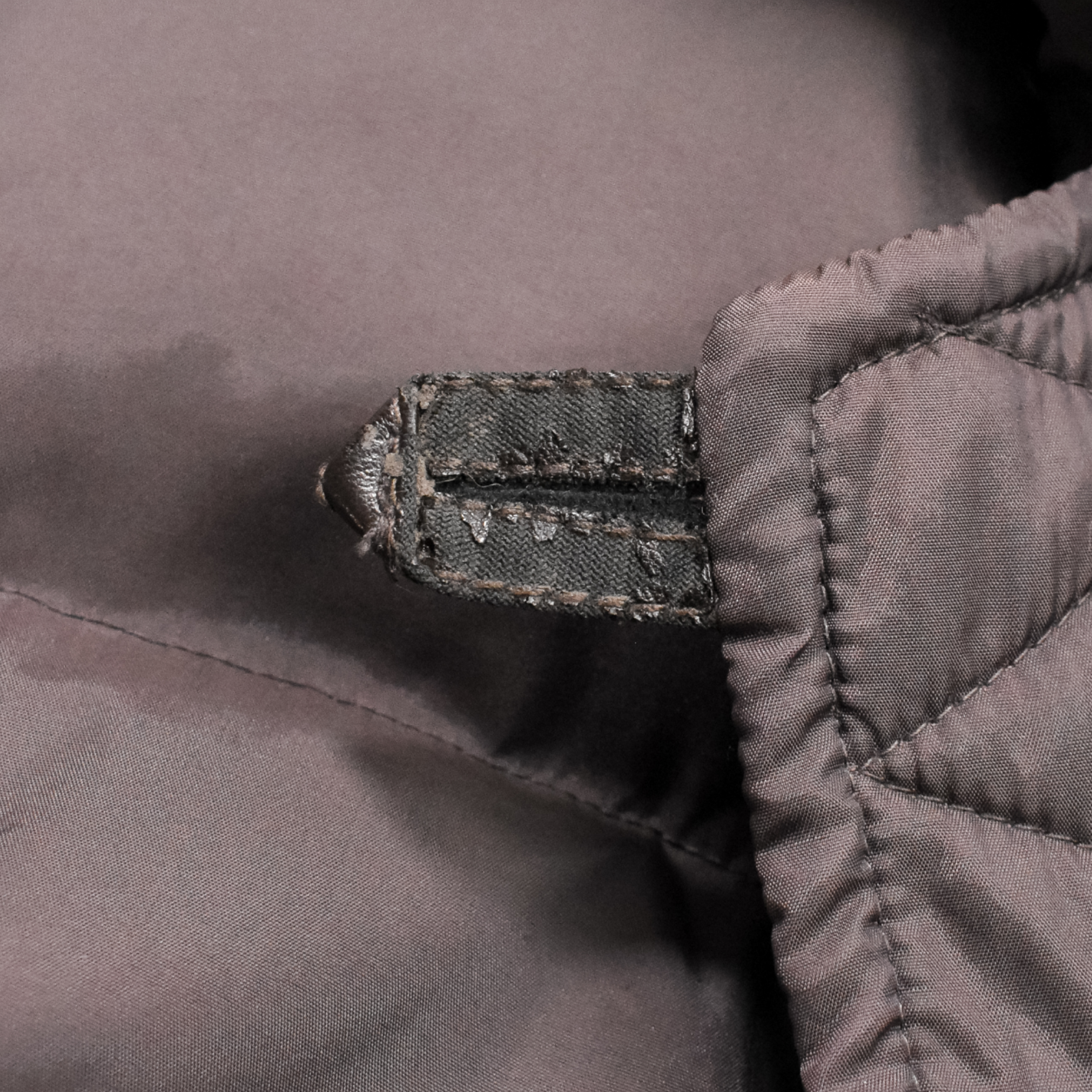 Good. Wear to leather trim throughout, some pulling in ribbed knit hems, wear to logo patch, light marks in nylon.