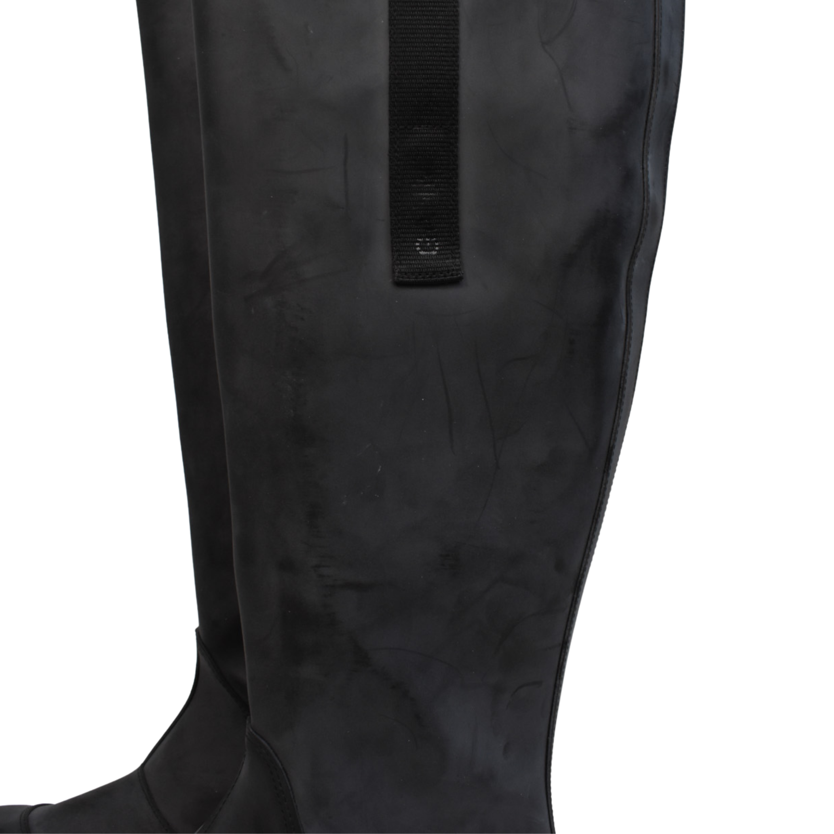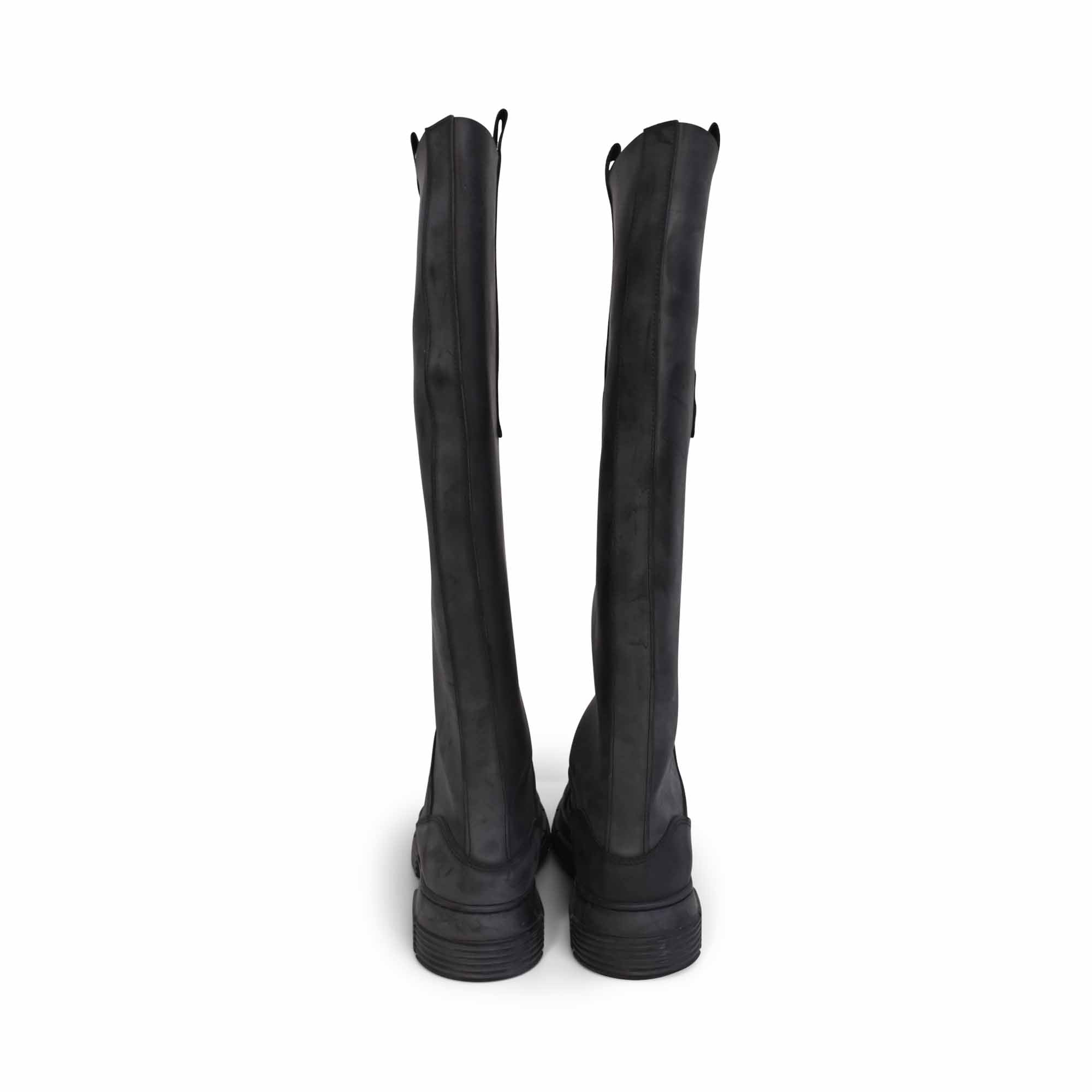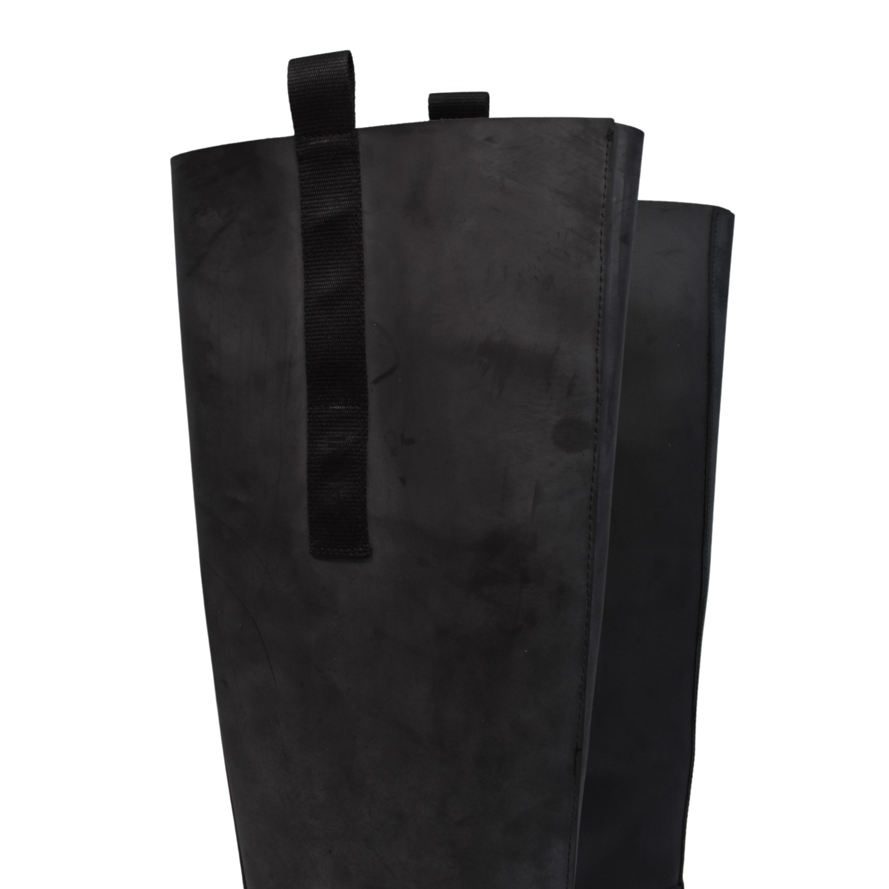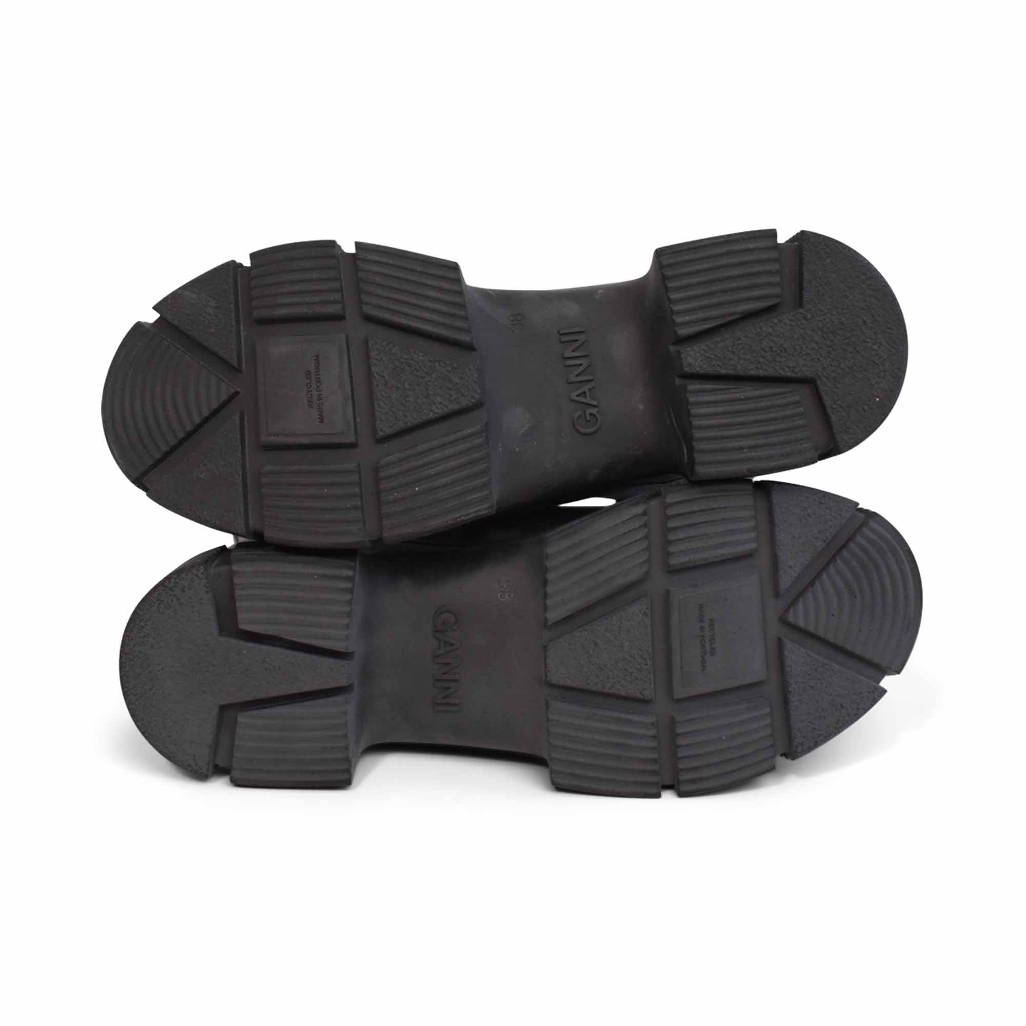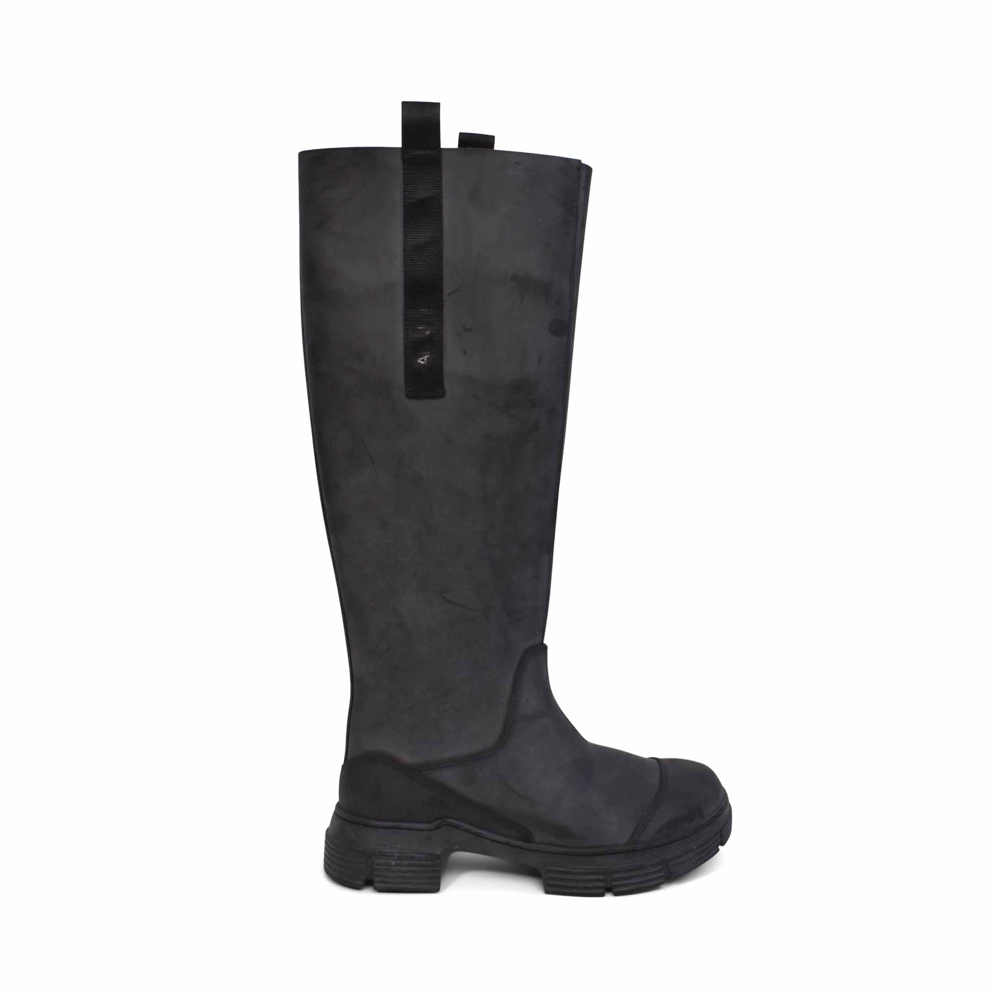 Ganni 'Country' boots in dark grey matte recycled rubber with a canvas logo stripe on the sides and a lug sole.