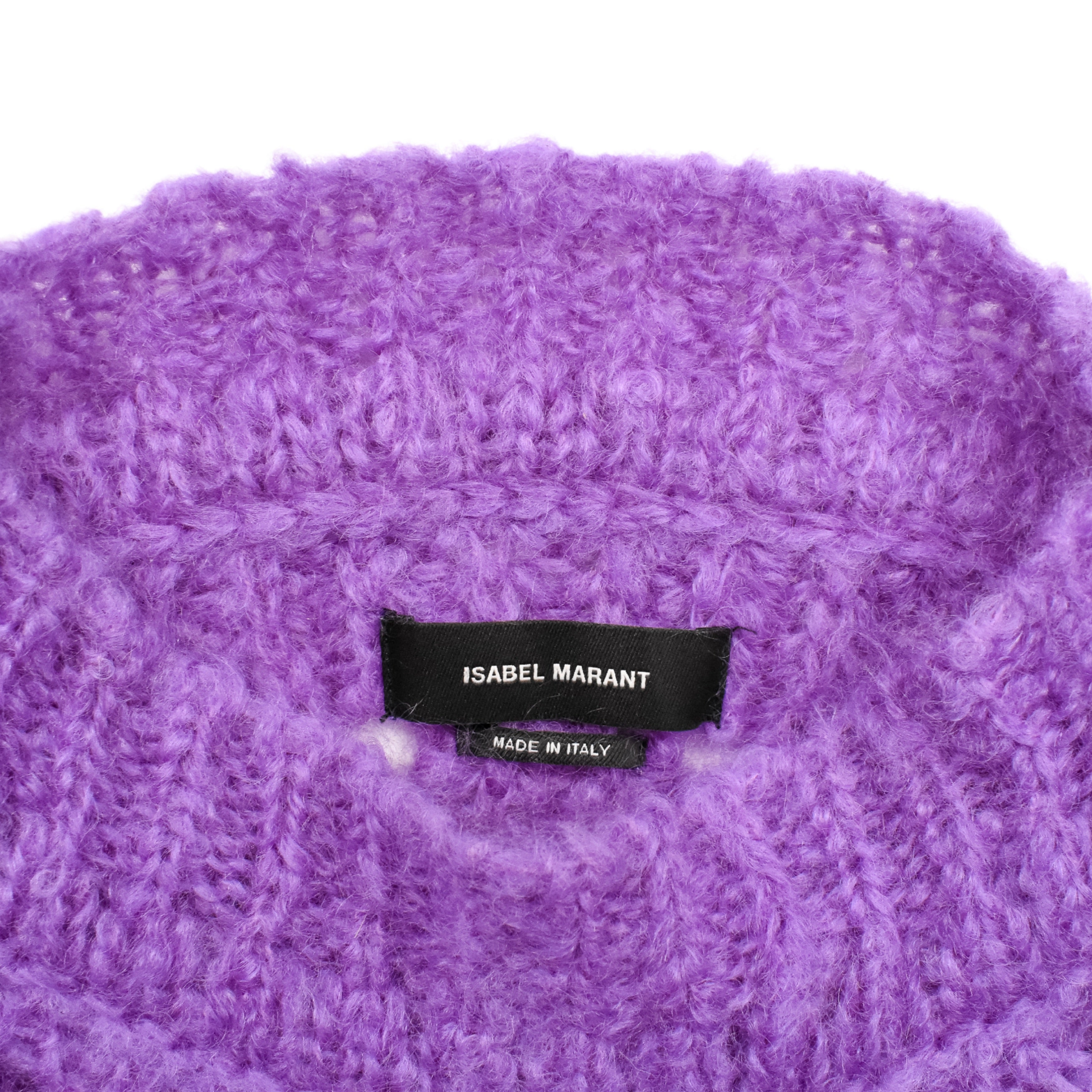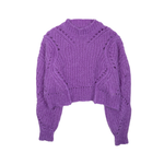 Isabel Marant pullover sweater in a purple knit mohair blend with a mock-neckline and cutouts throughout.