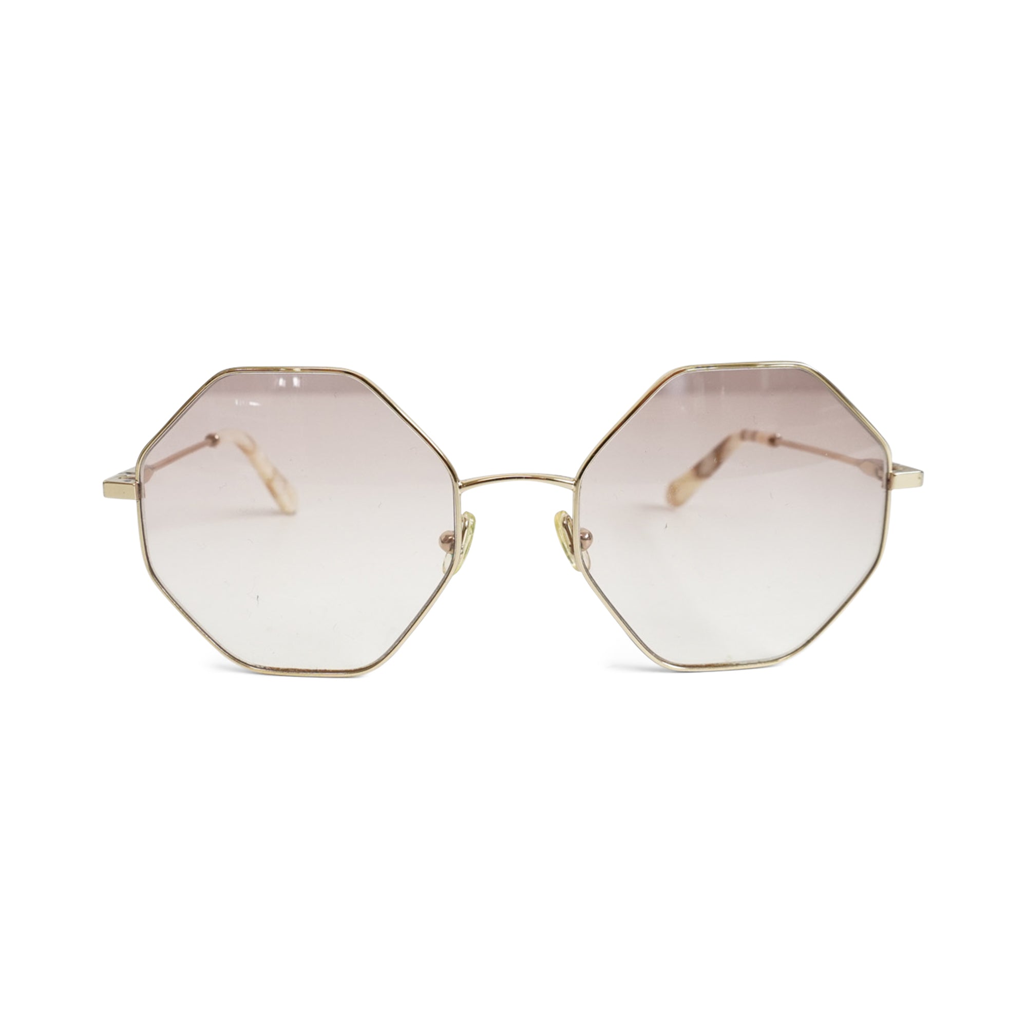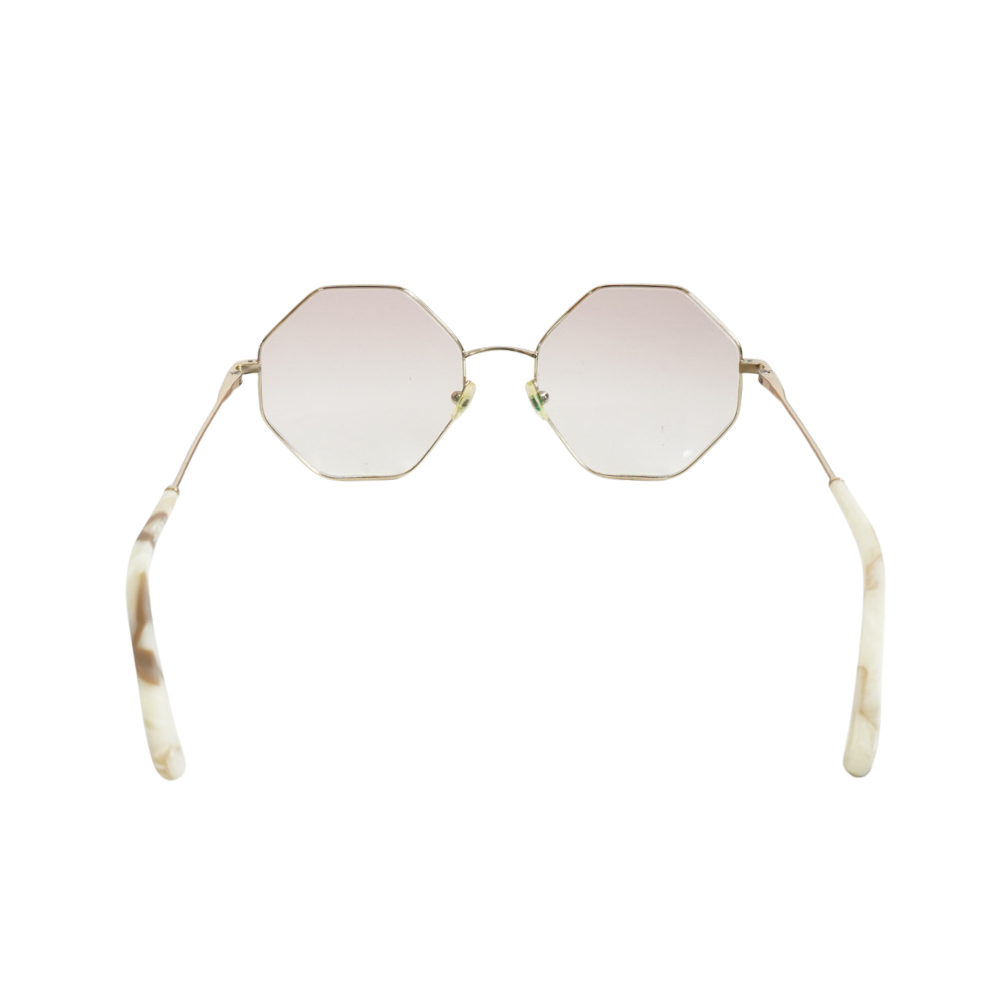 Chloe octagon sunglasses in gold hardware with rose-tint lenses and temple tips in marble patterned acetate.