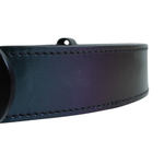 Christian Dior belt in purple and green iridescent patent leather with a black leather interior and a black 'CD' logo buckle.