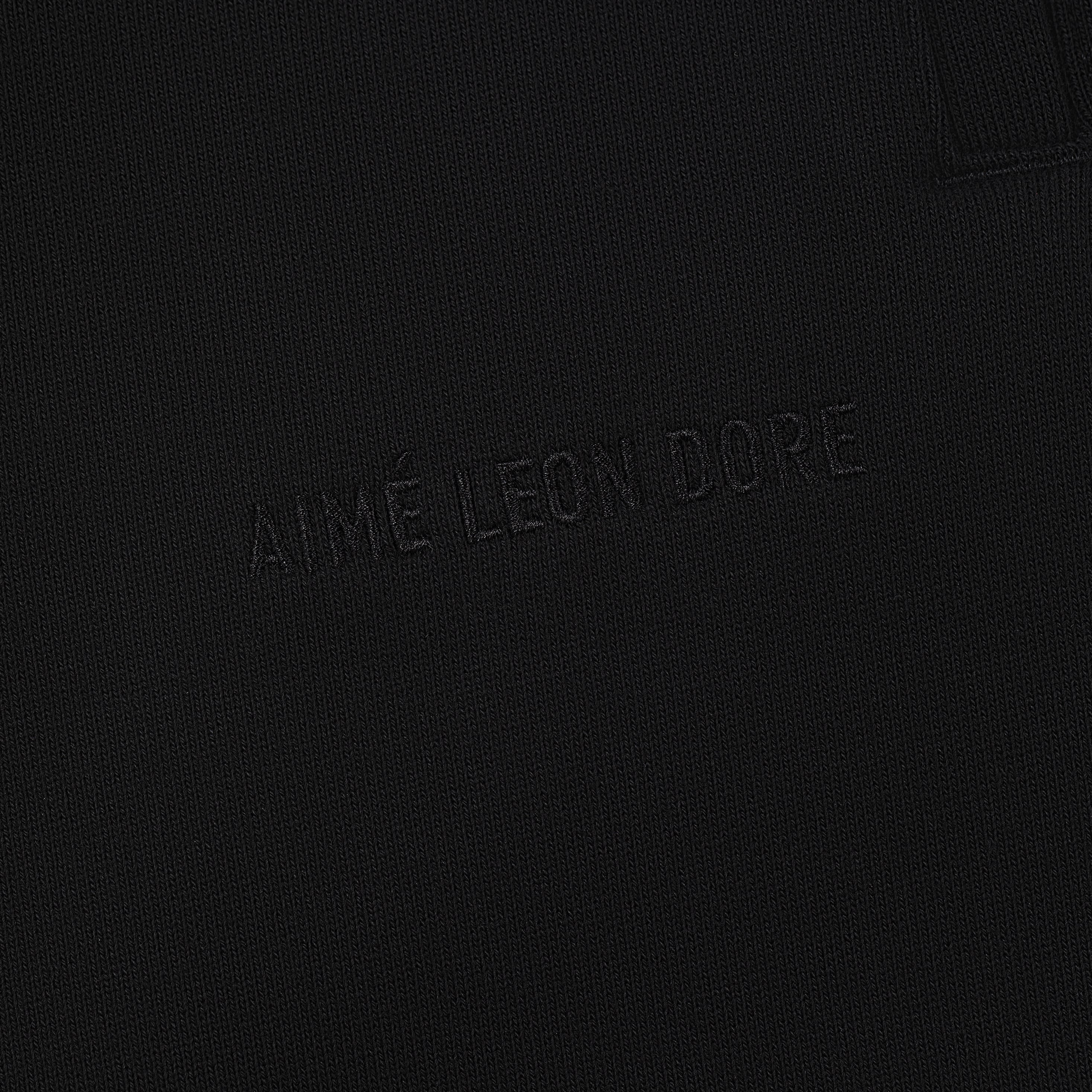 Aime Leon Dore black sweat pants with tonal logo embroidery, slit pockets at the hips, and patch pockets on the back.