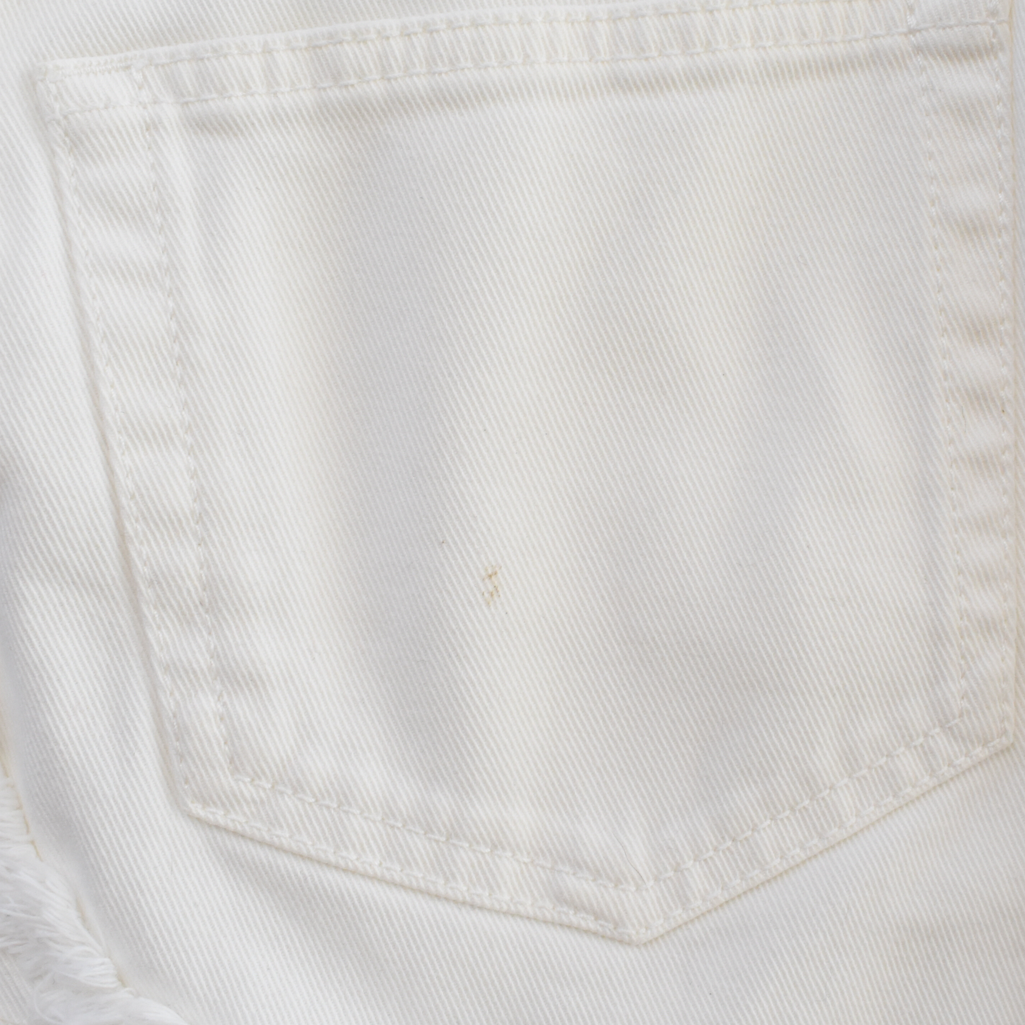 Great. Small dirt mark on back pocket.