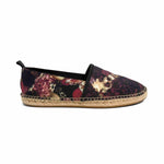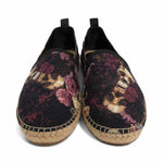 Christian Dior espadrilles in a black and purple skull and floral all-over pattern. Features a small black embroidered 'Dior Homme' logo on the side.