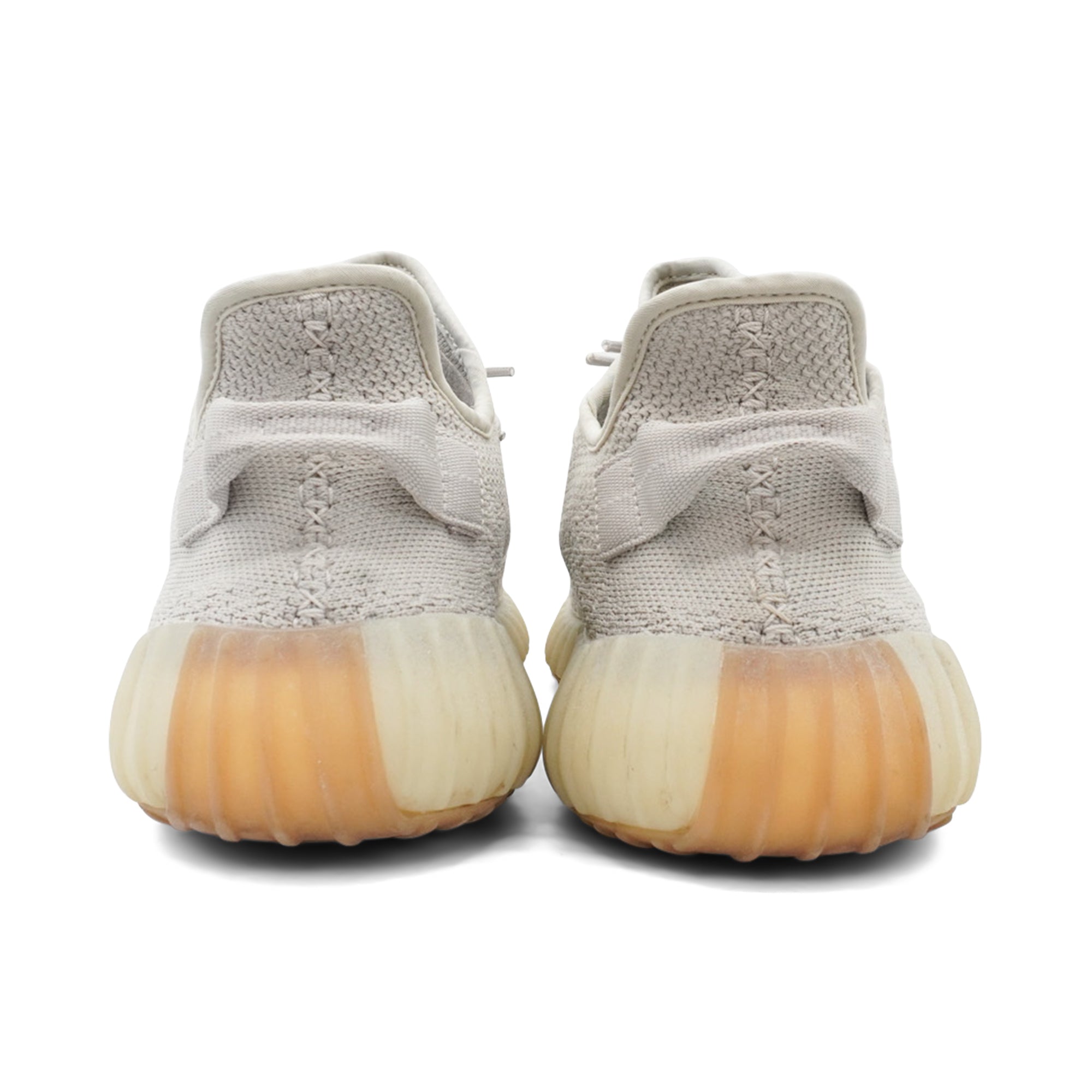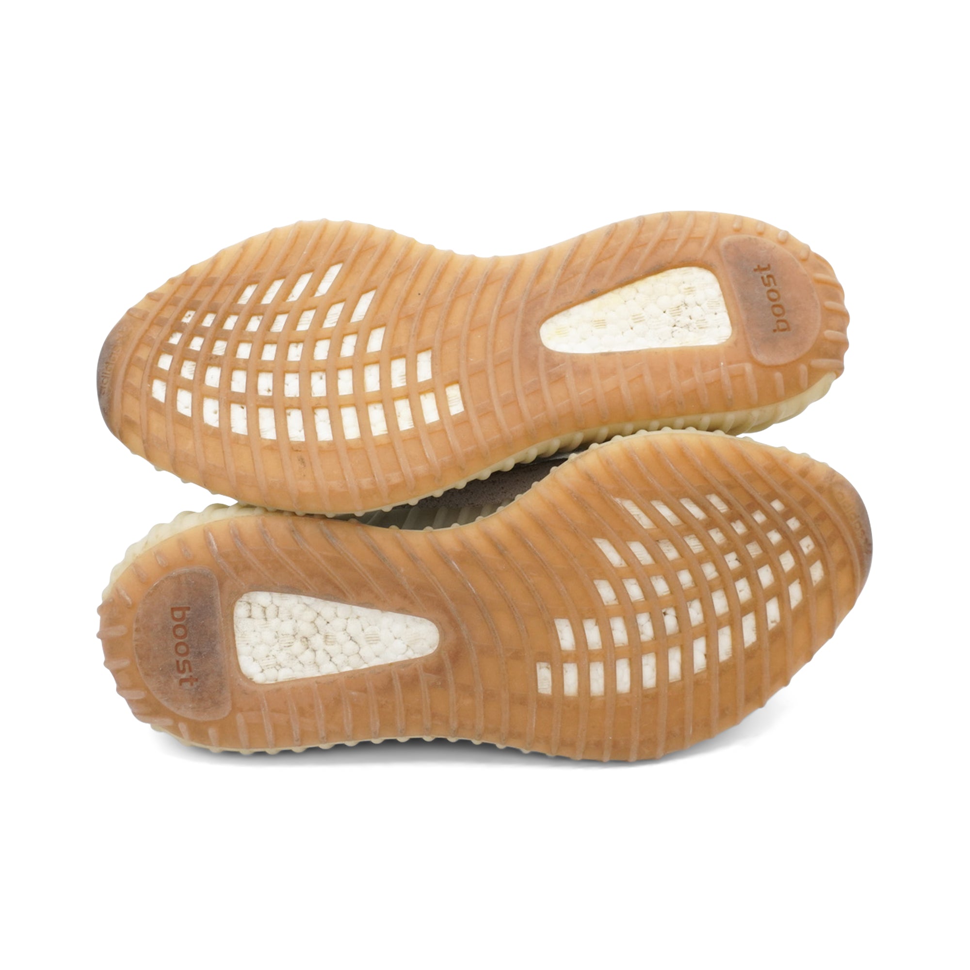 Yeezy 'Boost 350 v2' sneakers in Sesame prime knit with tonal laces and ribbed soles.