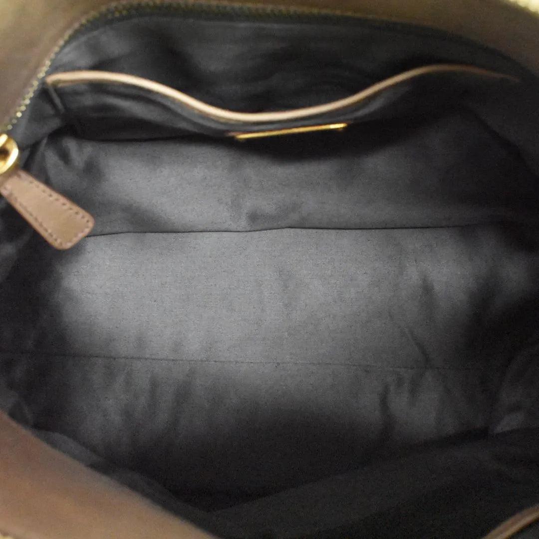 Good. Moderate wear on leather, small stains on front, scratching on leather.