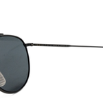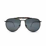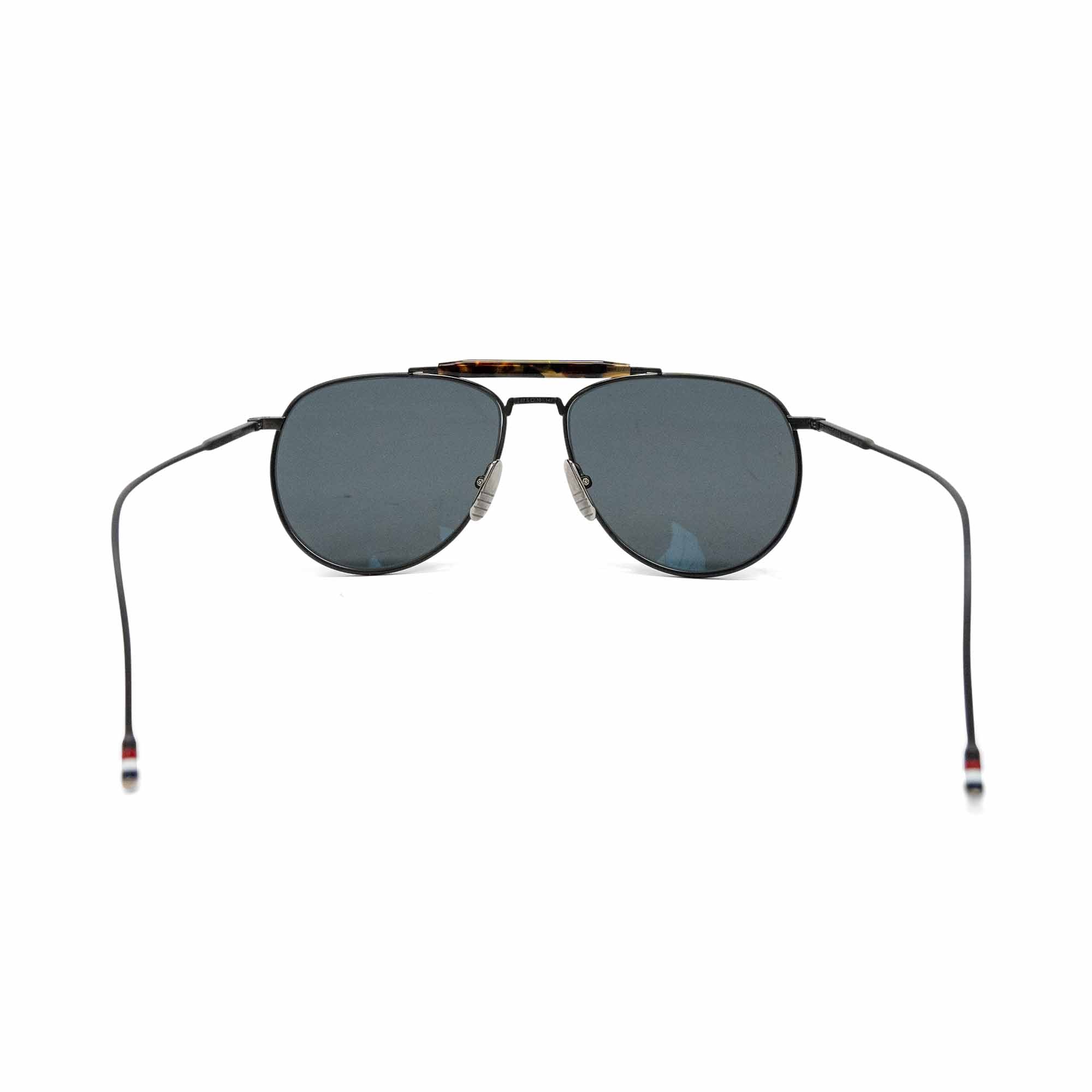 Thom Browne 'TB-O15-LTD' aviator sunglasses. Features matte black metal frames, a tortoise brow bar, black lenses, and silver nose pads.