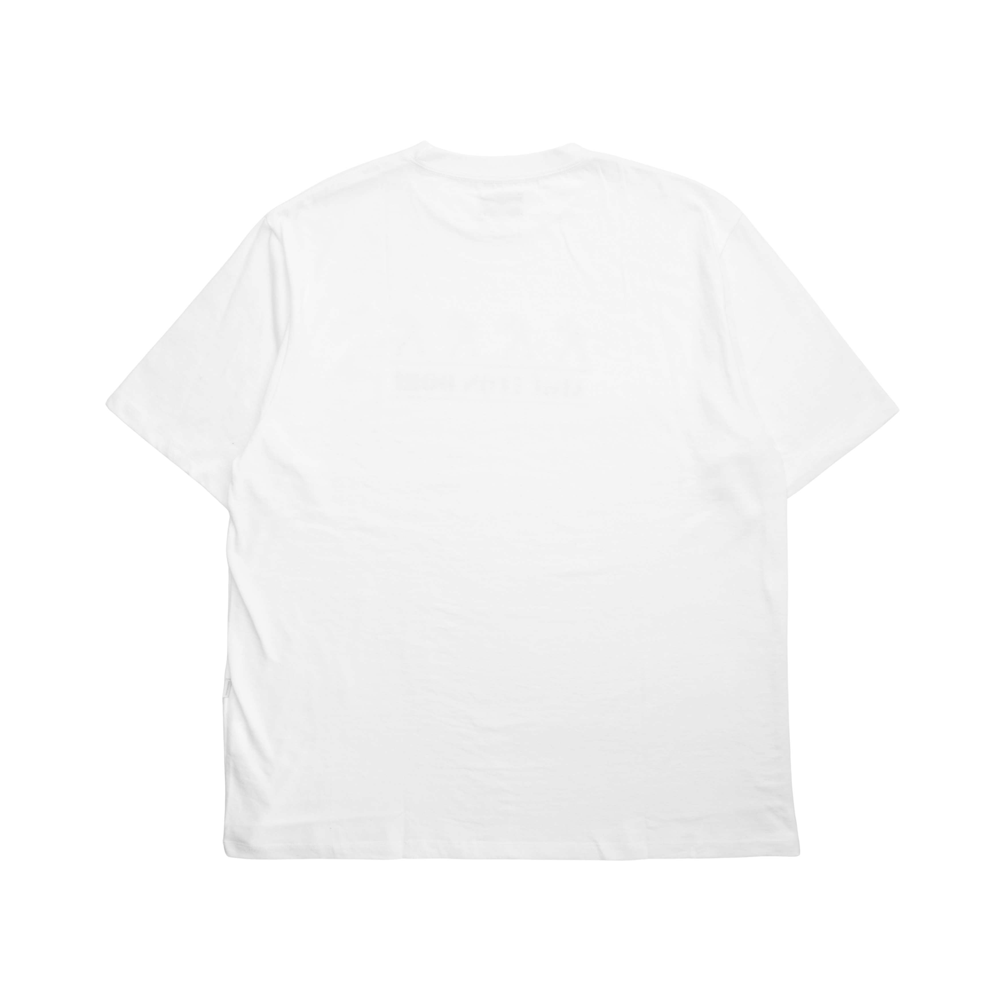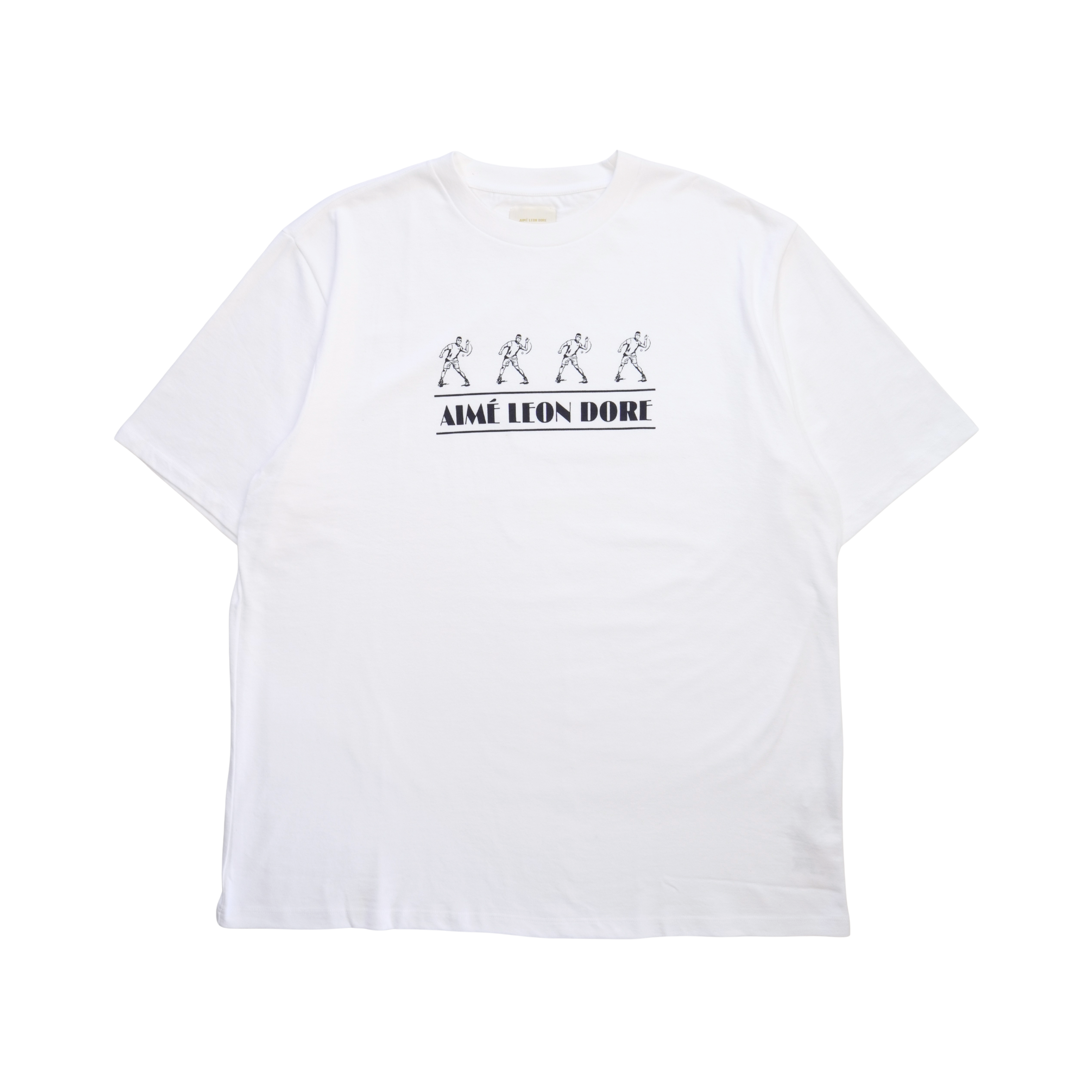 Aime Leon Dore 'Handball' t-shirt in white cotton with a black logo and handball player graphic on the chest.