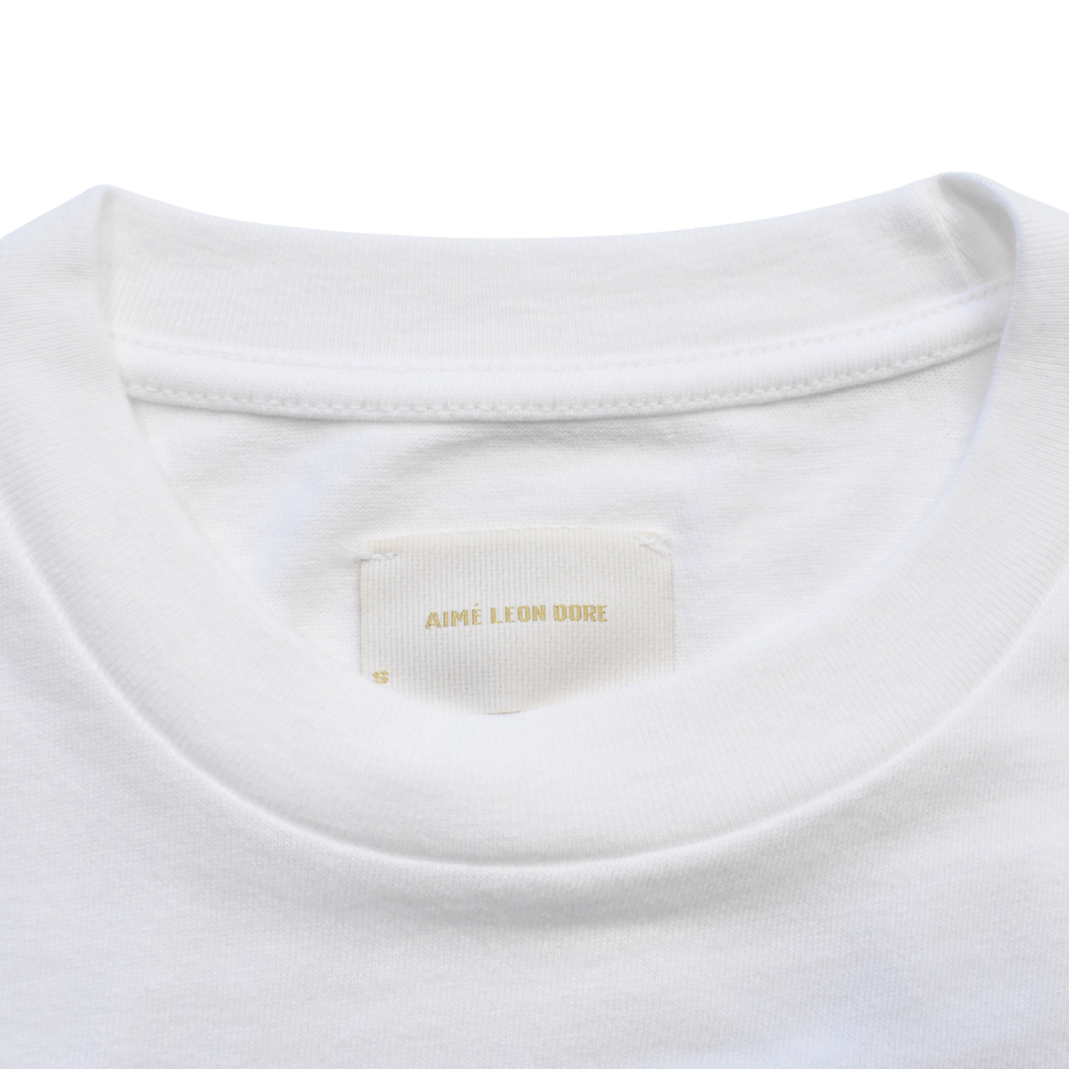Aime Leon Dore t-shirt in white cotton with a small cream embroidered logo on the chest.