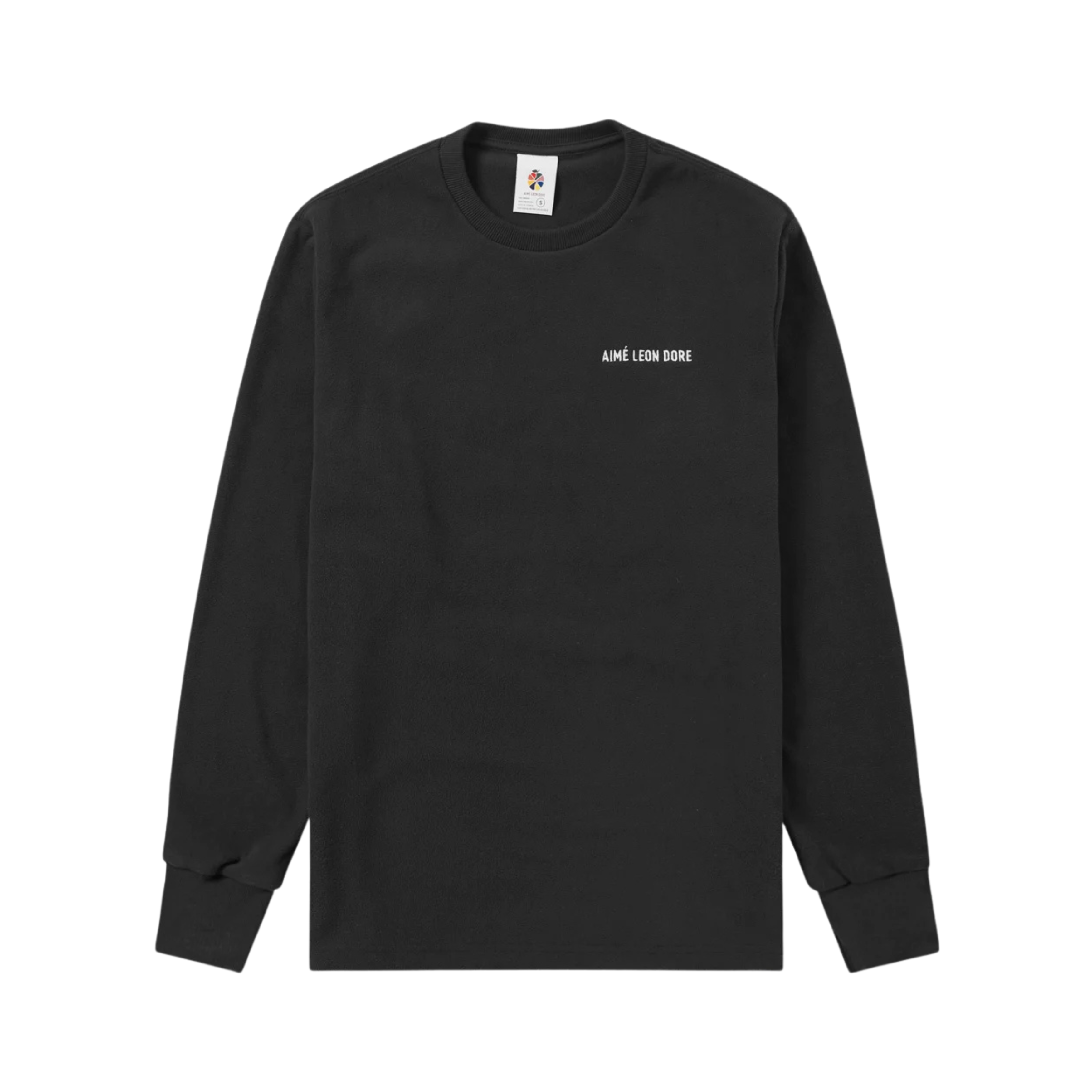Aime Leon Dore long-sleeve t-shirt in black cotton with a white embroidered logo on the chest.