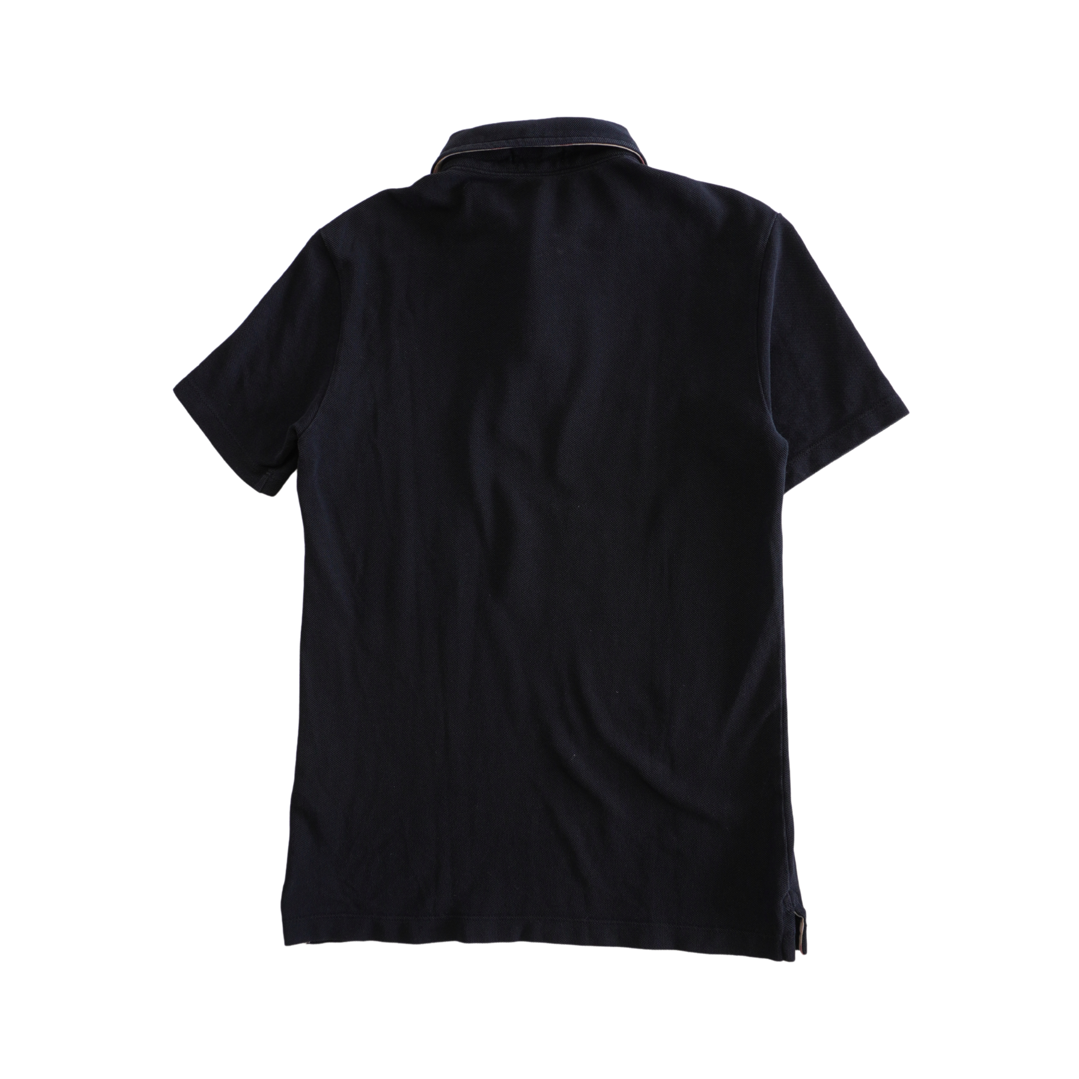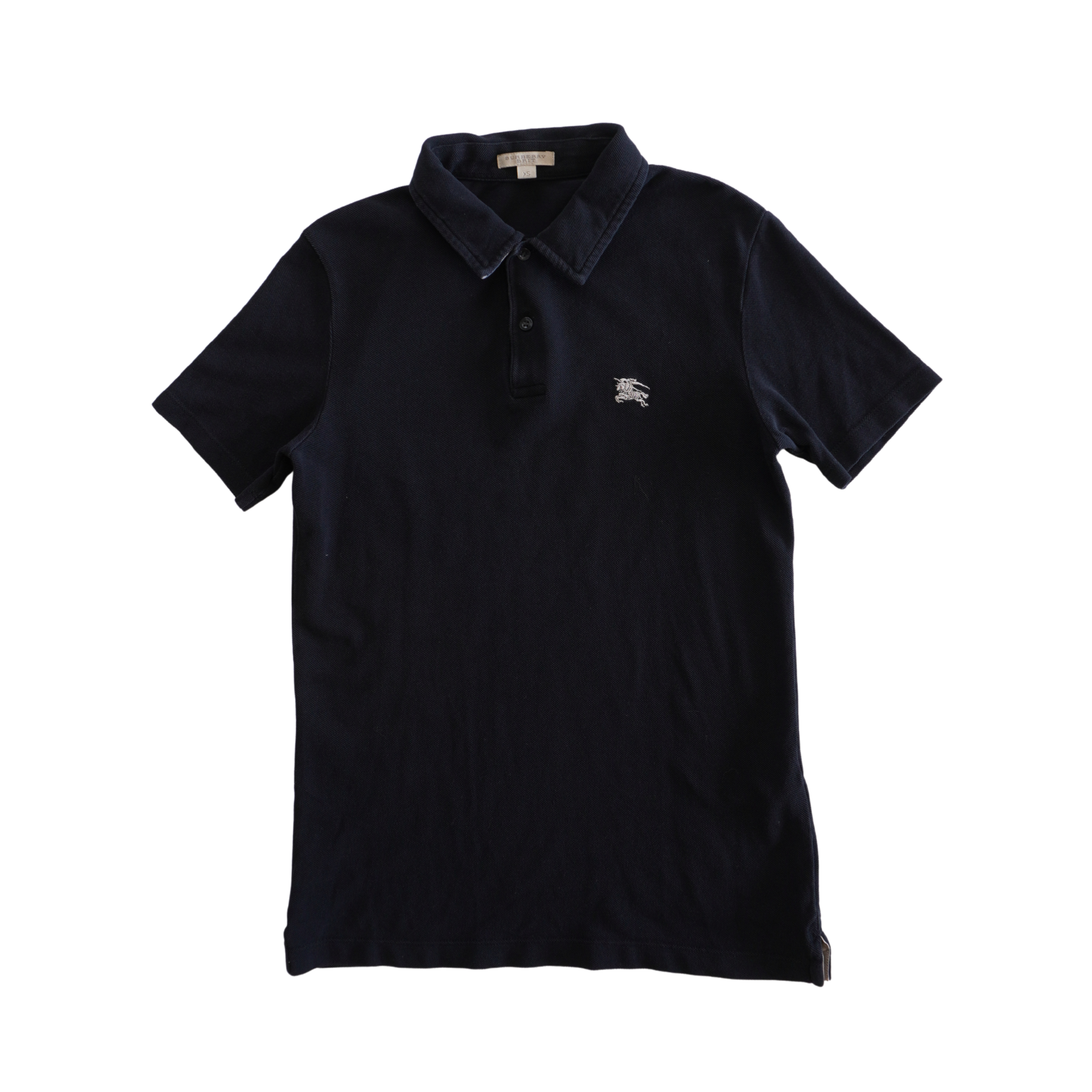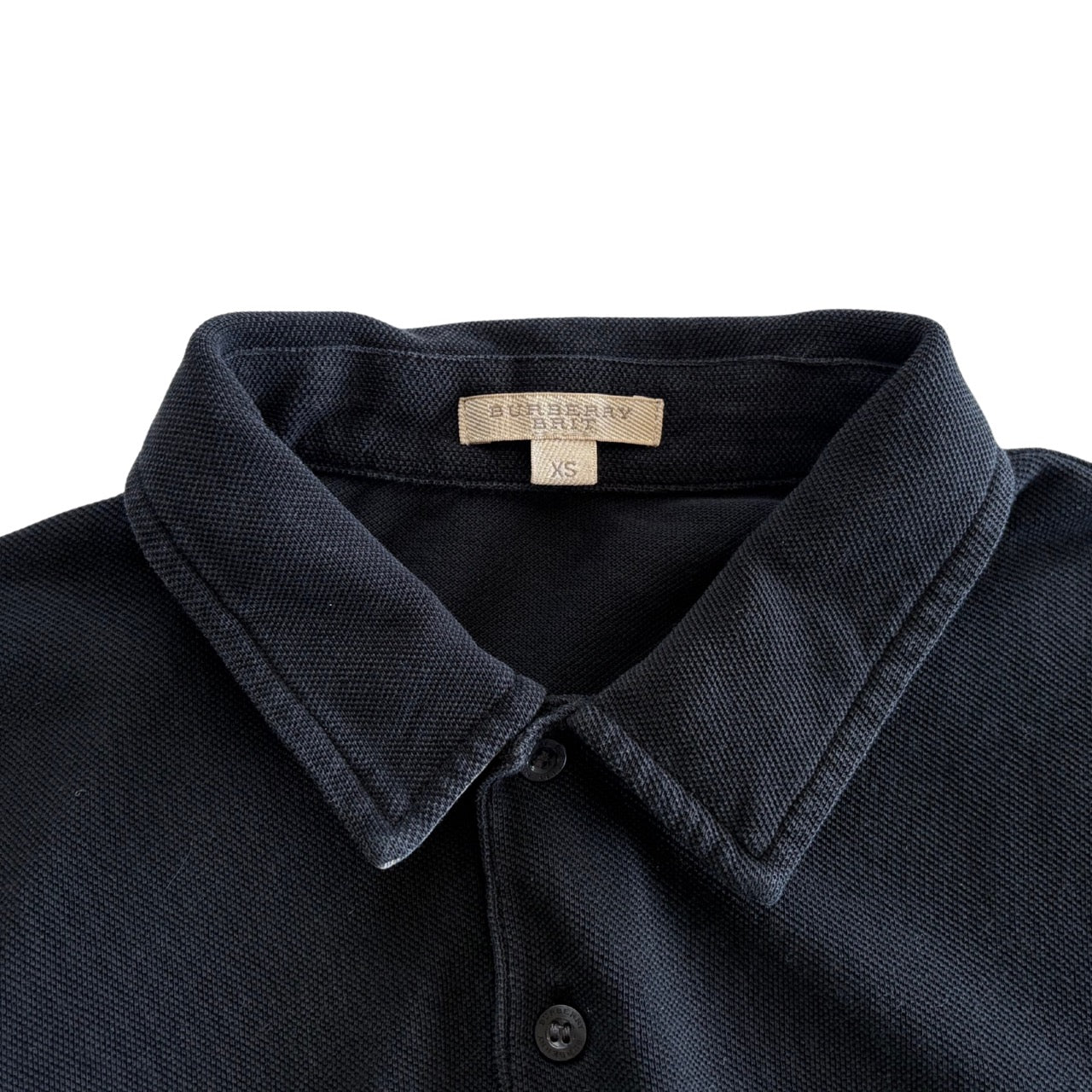 Burberry Brit short sleeve polo shirt in black cotton jersey with a small beige logo on the chest and novacheck under-collar.