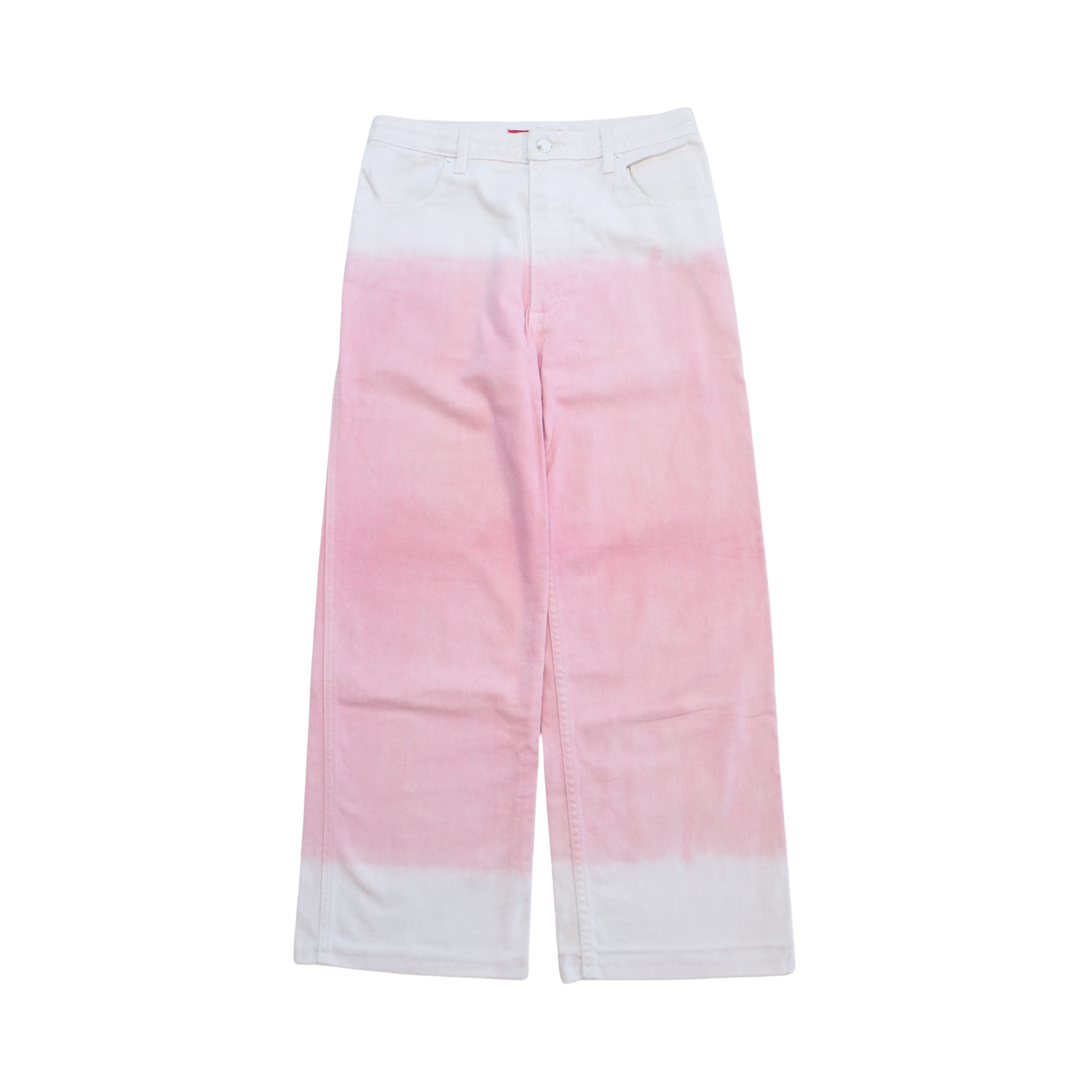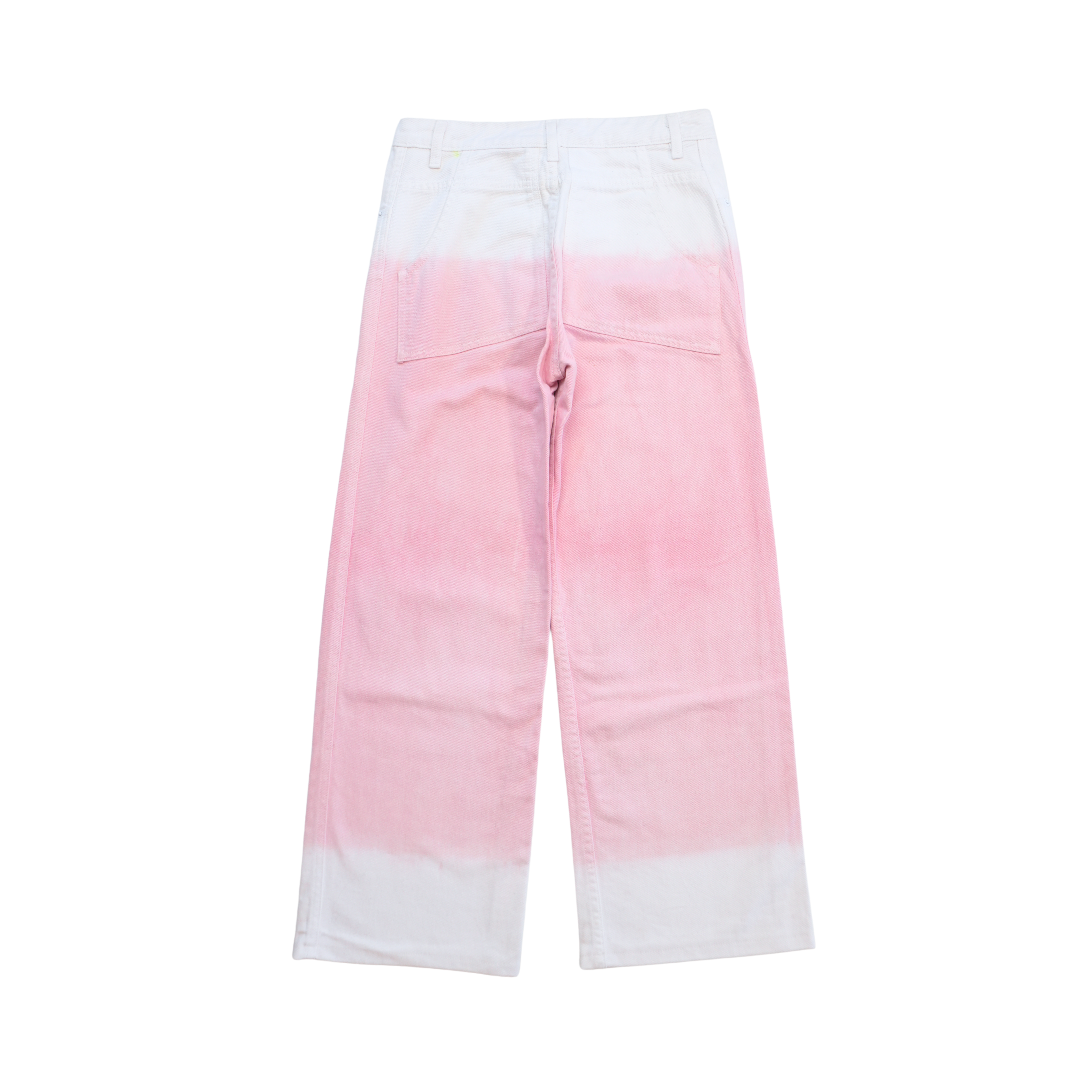 Eckhaus Latta high-waisted jeans in pink and white ombre denim with a wide leg fit.