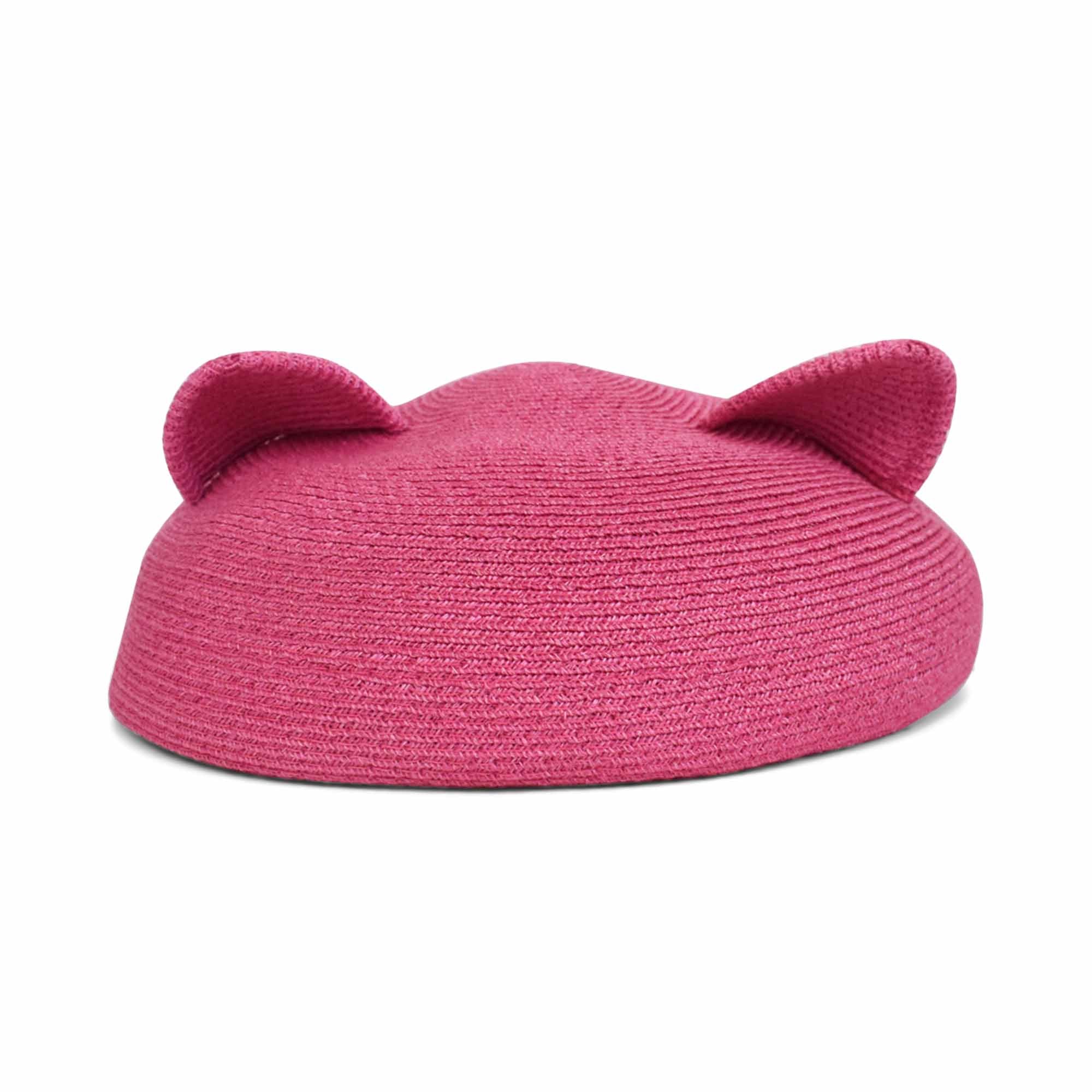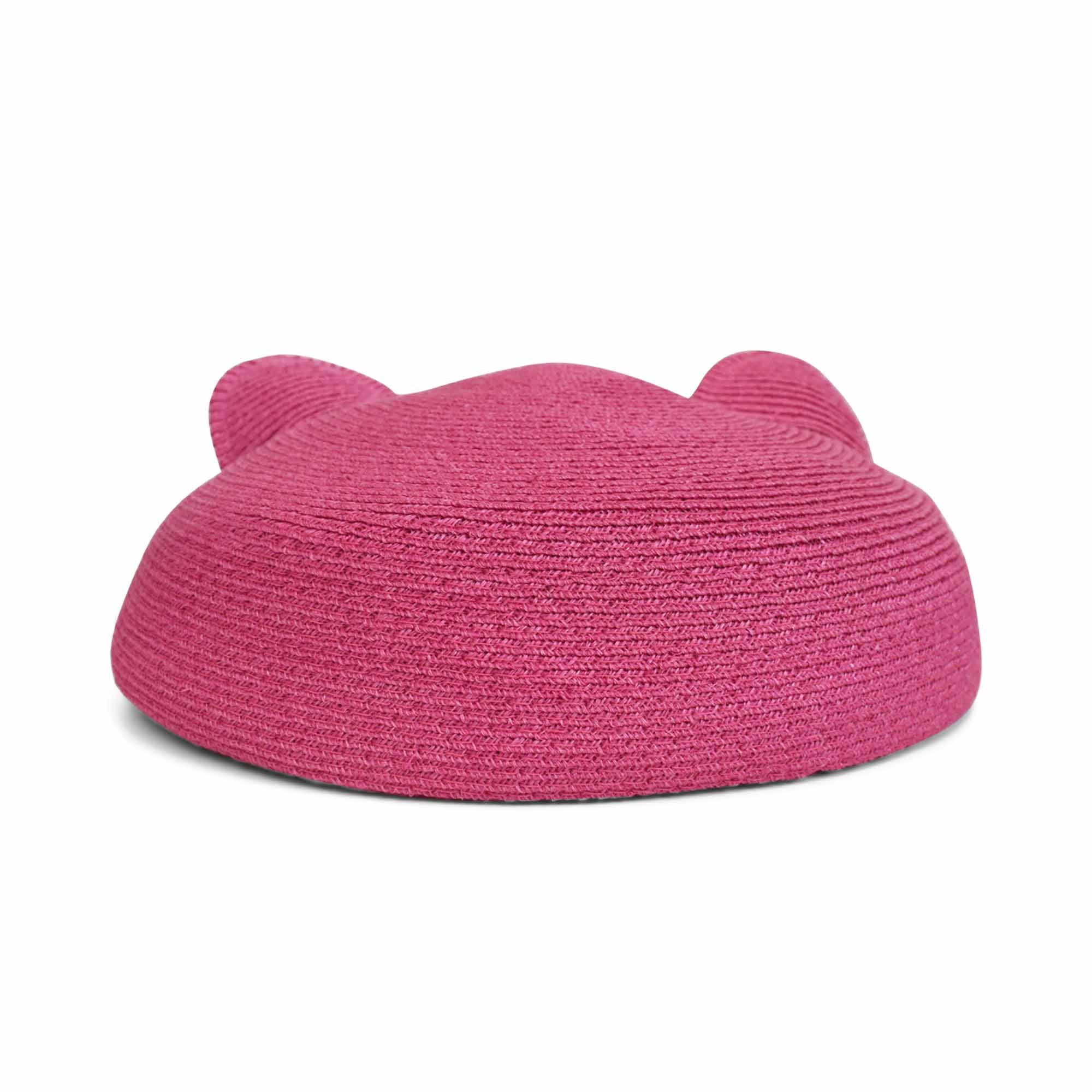 Eugenia Kim 'Caterina' braid beret in pink straw with cat ears and a thin black chin elastic.