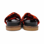 Ganni 'Anoush' sandals in black leather with knotted red suede leopard printed straps and a gum sole.