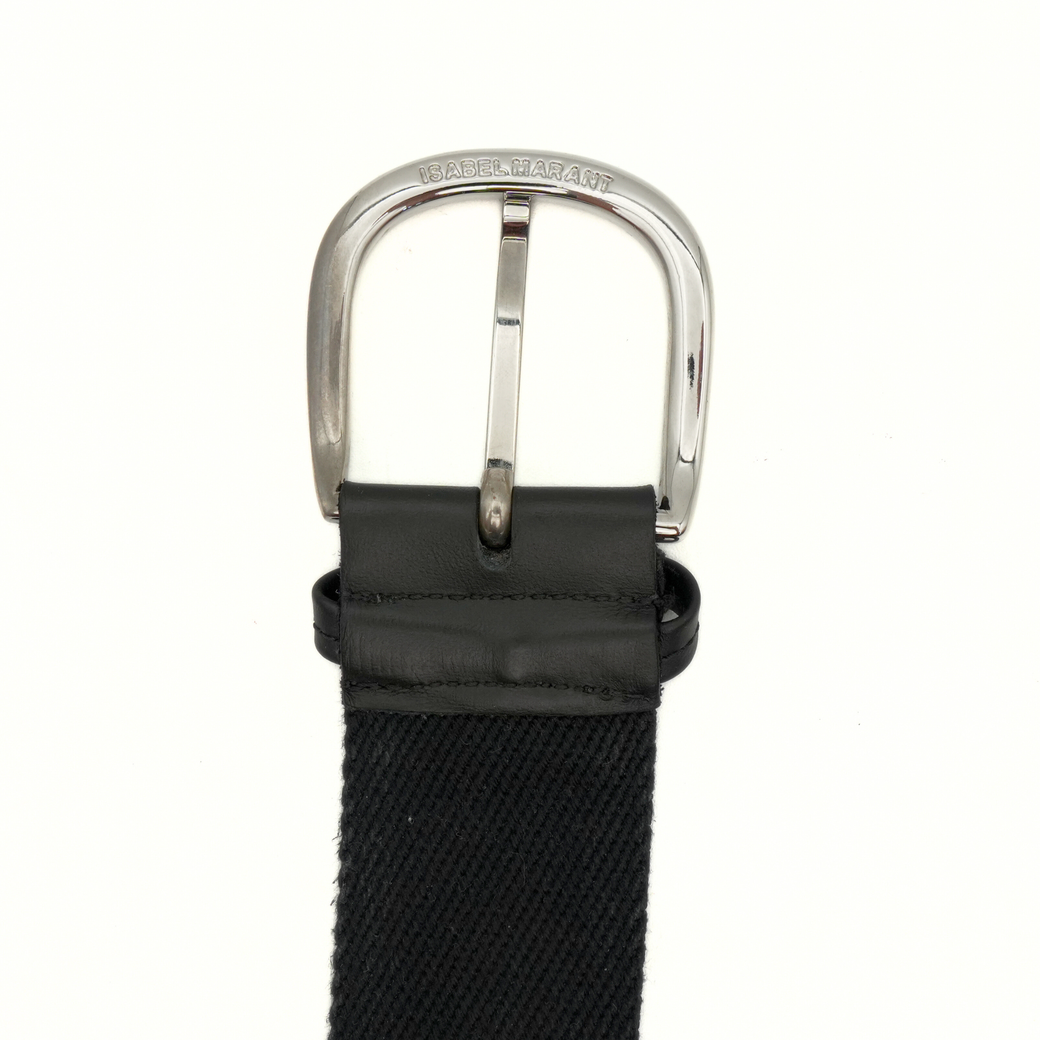 Isabel Marant belt in white, black, red and green woven cotton with a diamond pattern throughout, a black leather trim, and a silver pin buckle.