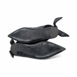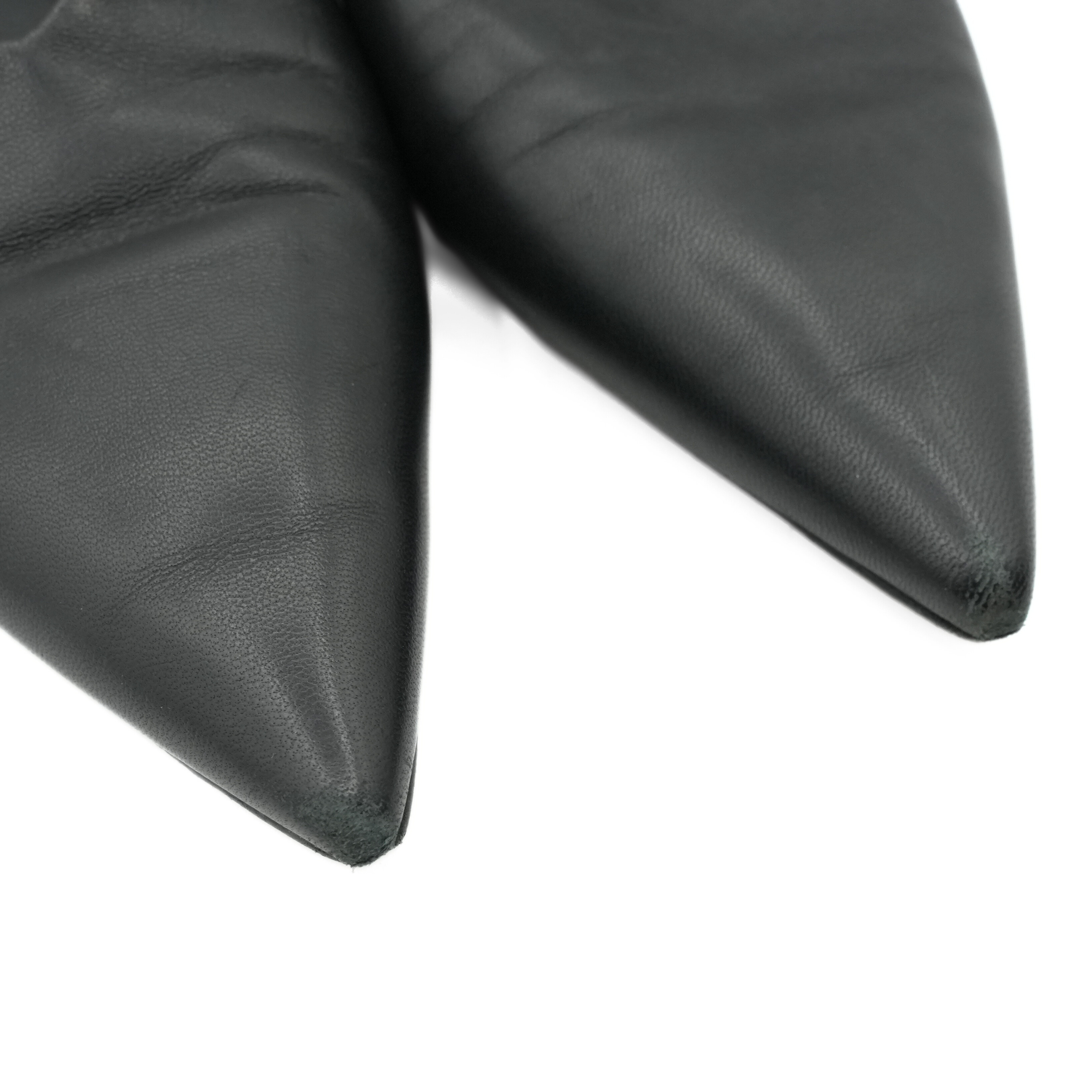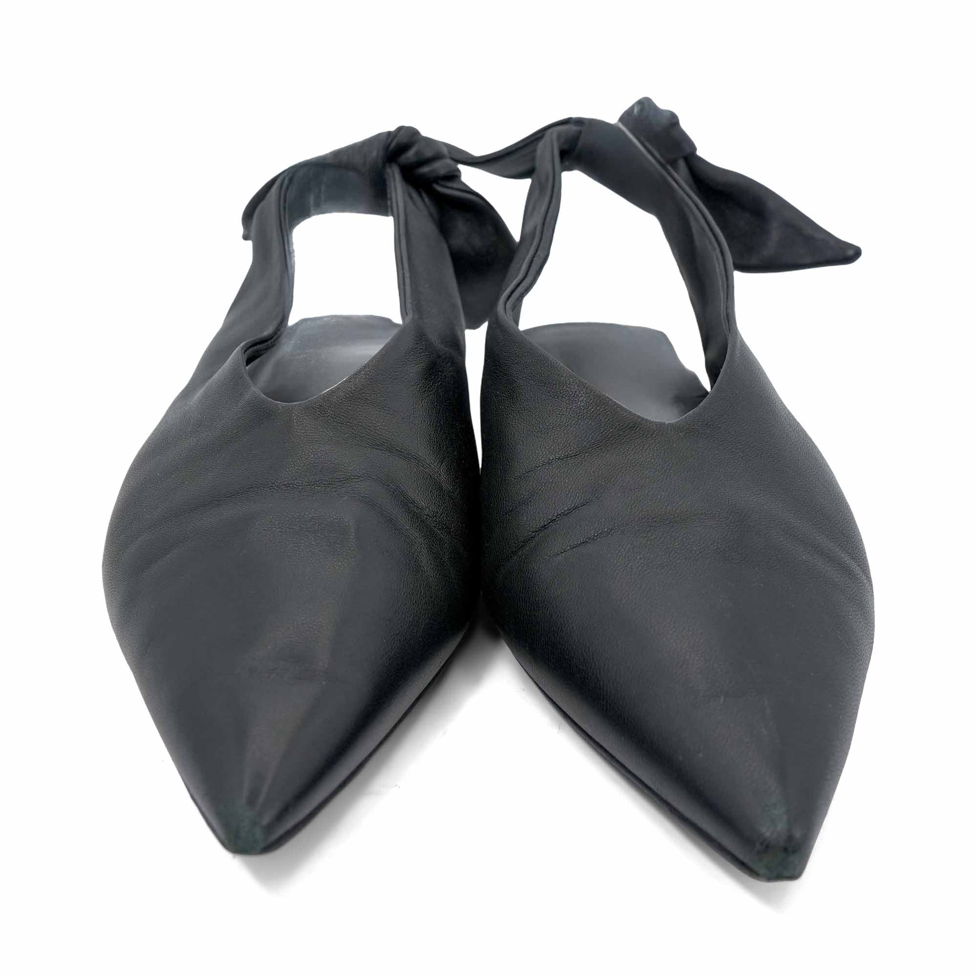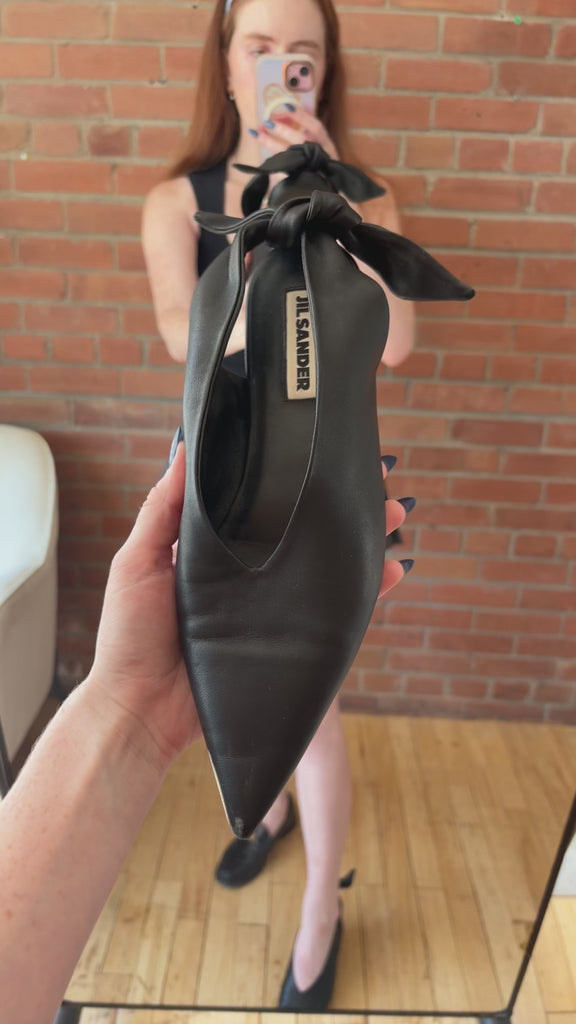 Jil Sander slingback flats in black leather with a knot detail at the heel and a pointed toe.