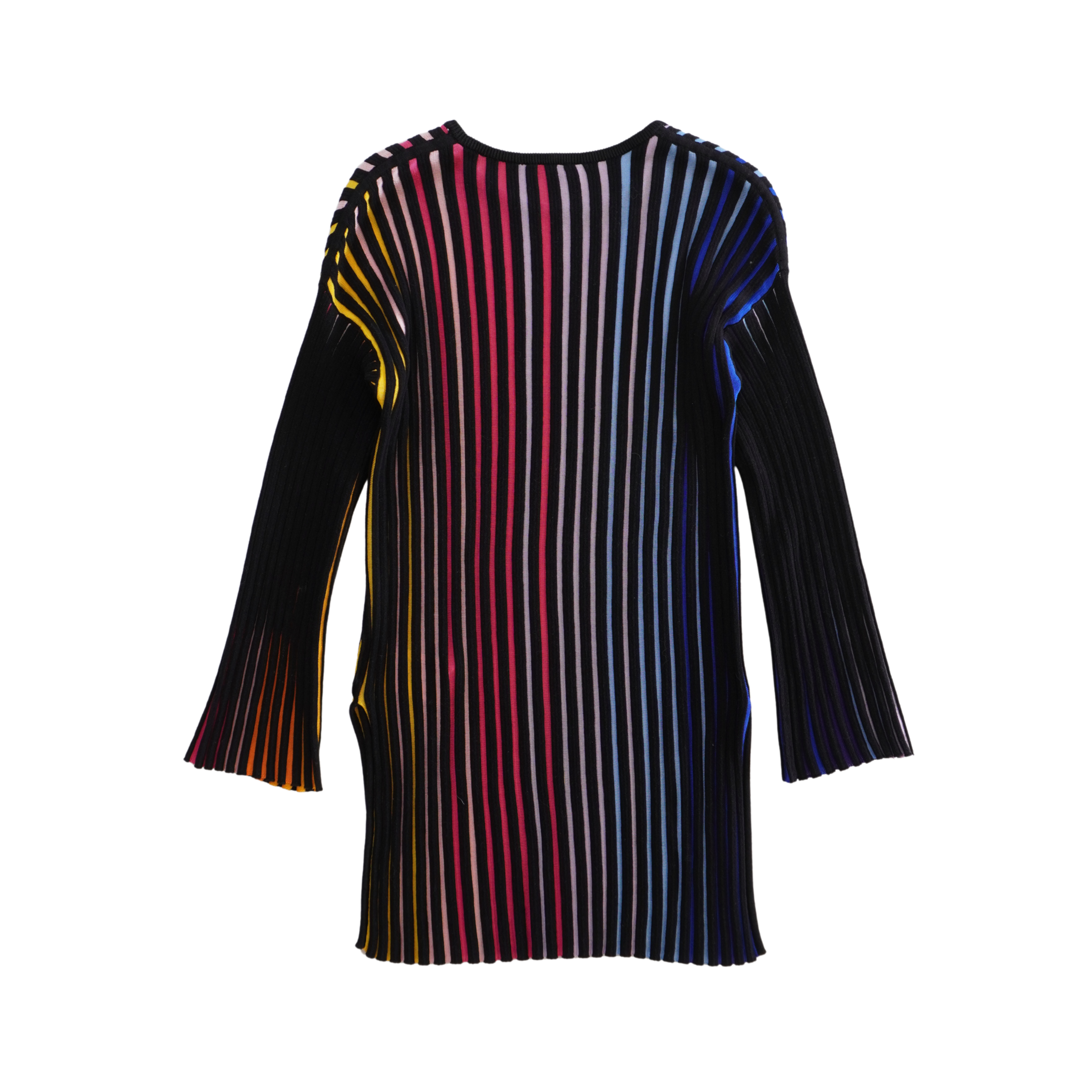 Kenzo top in black and multicolour striped ribbed knit with side slits and flare cuffs.