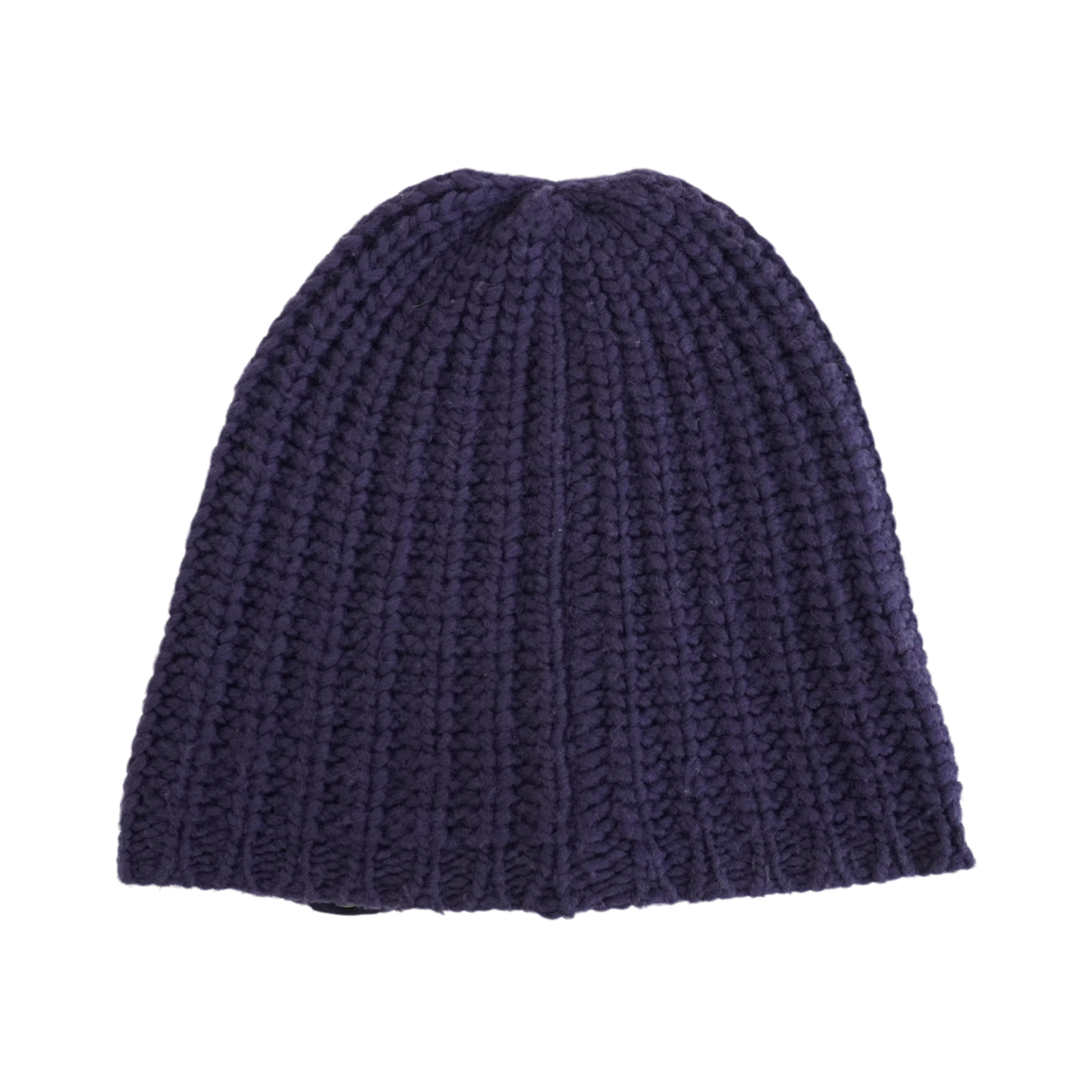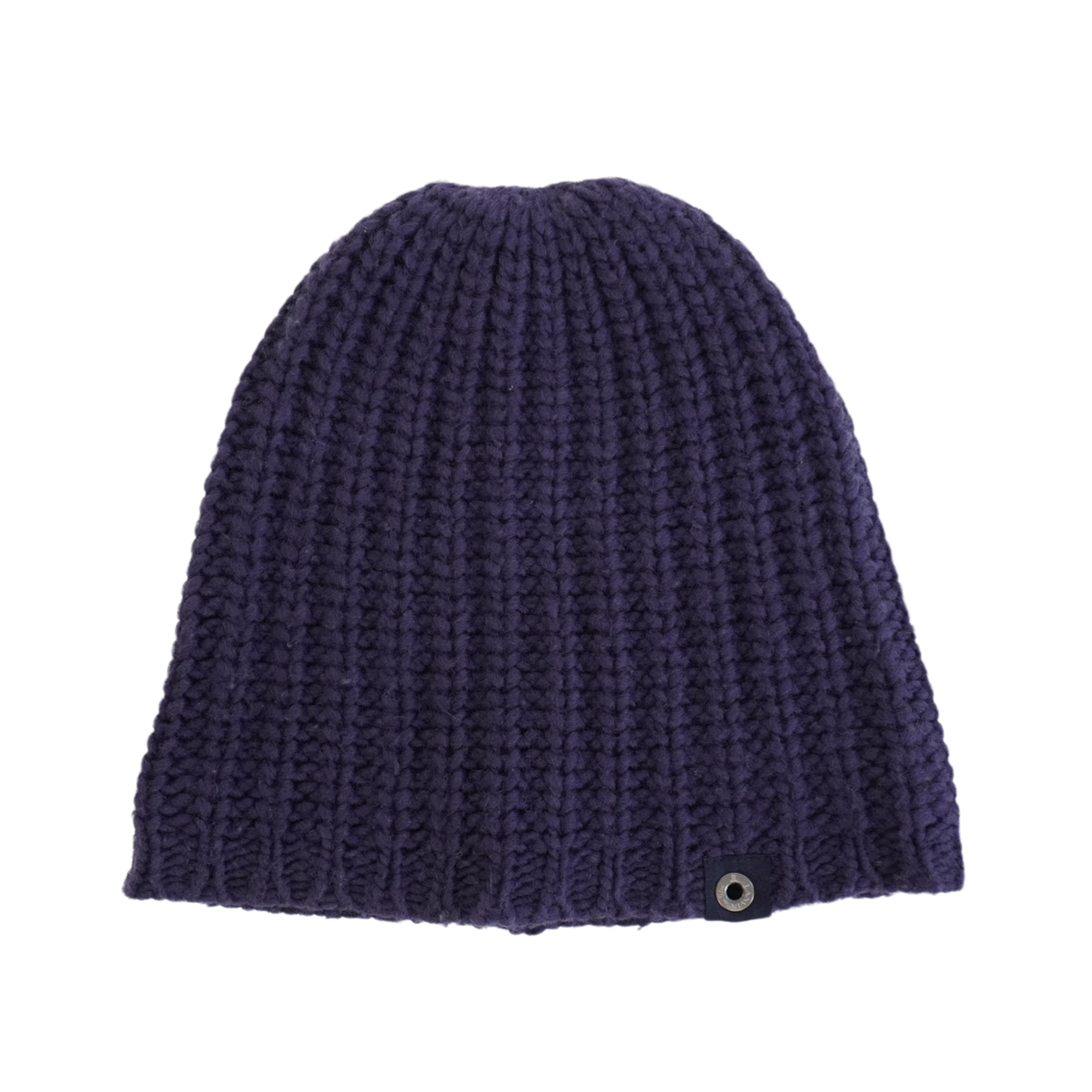Lanvin beanie in navy knit wool with a silver grommet detail on the edge.
