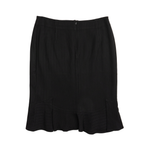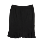 Max Mara black midi skirt with dotted pinstripe and pleated ruffle trim.