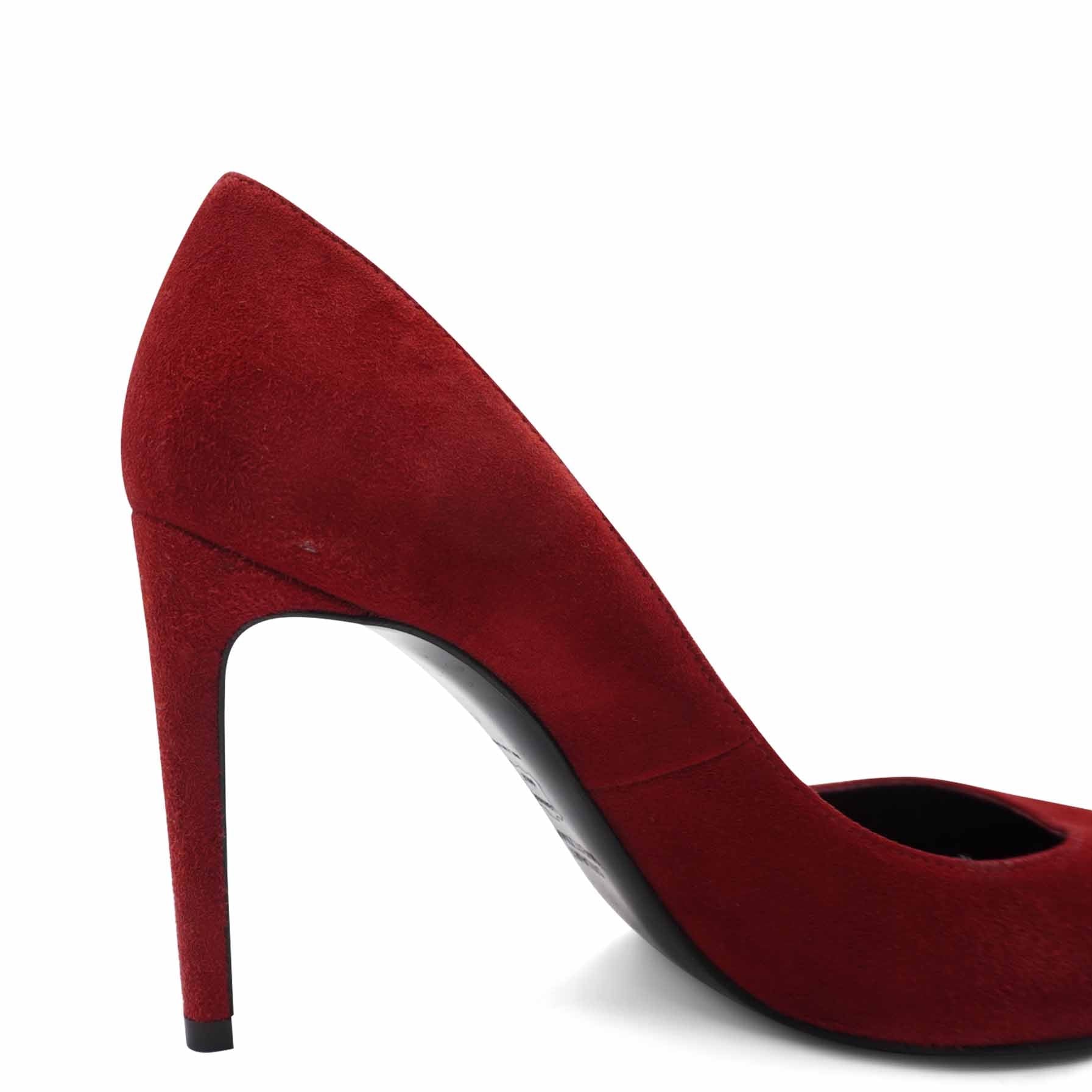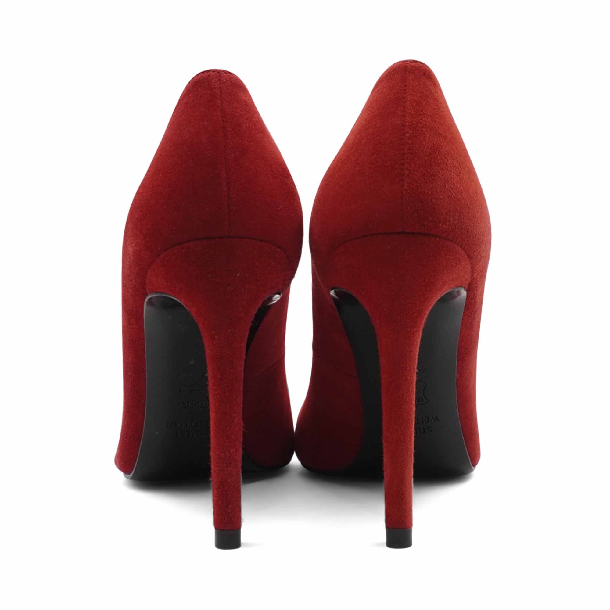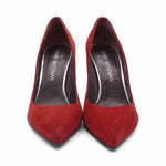 Stuart Weitzman 'Curvia' pointed-toe pumps in deep red suede.