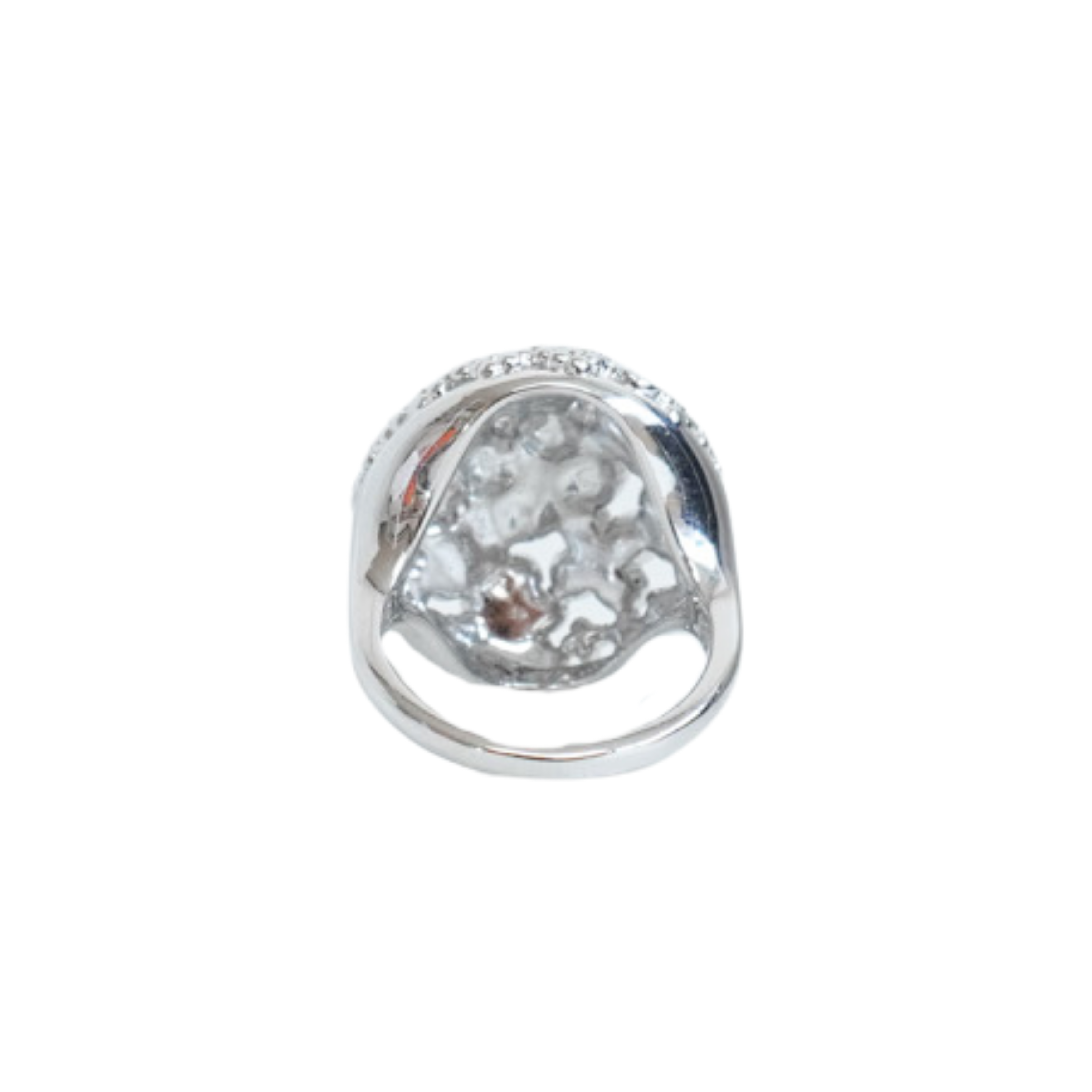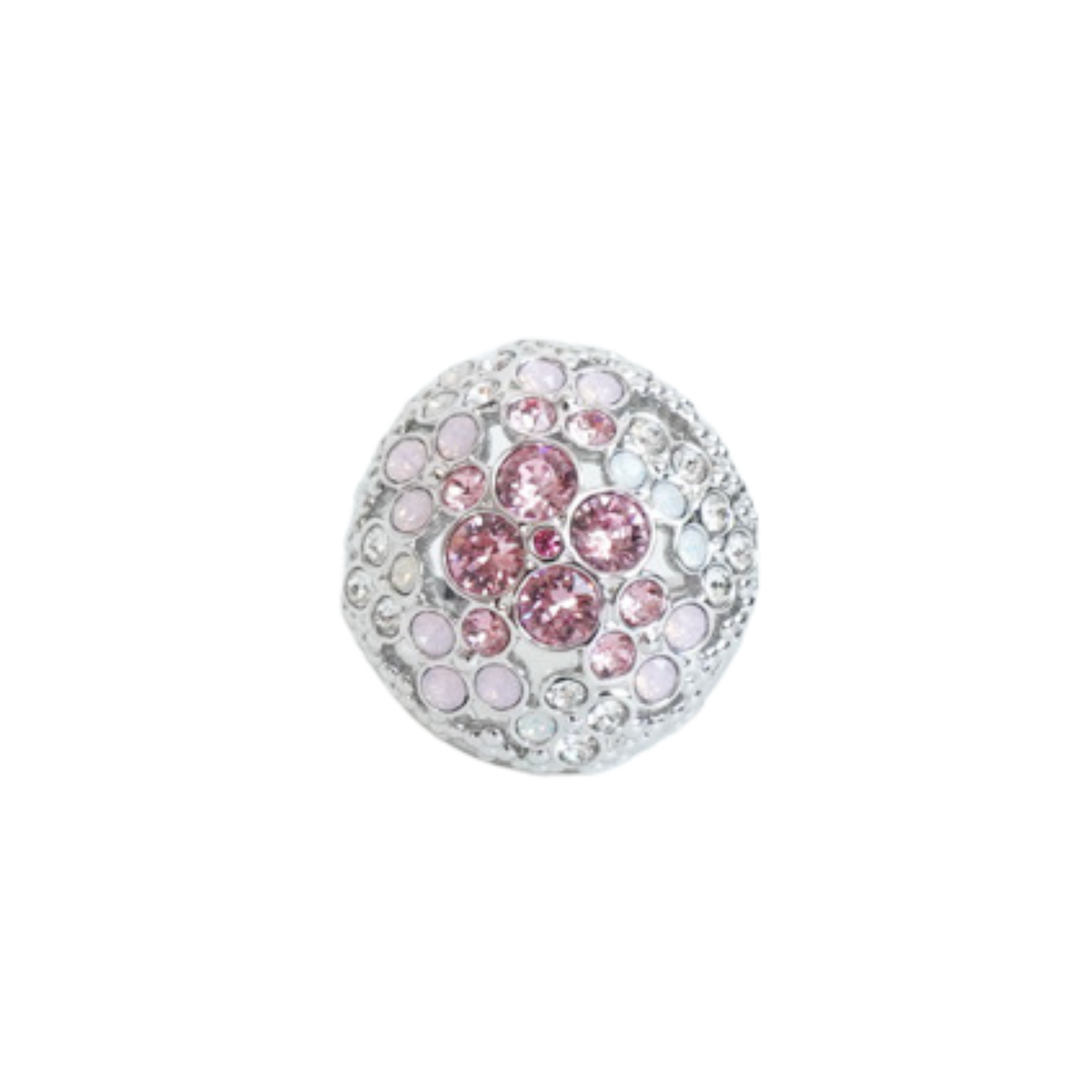Swarovski 'Cherie' dome ring in silver rhodium with pink and white rhinestones and a floral design.