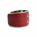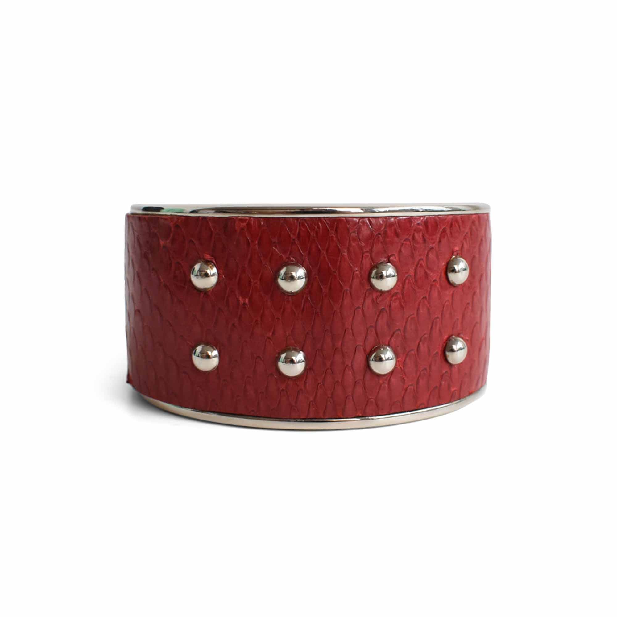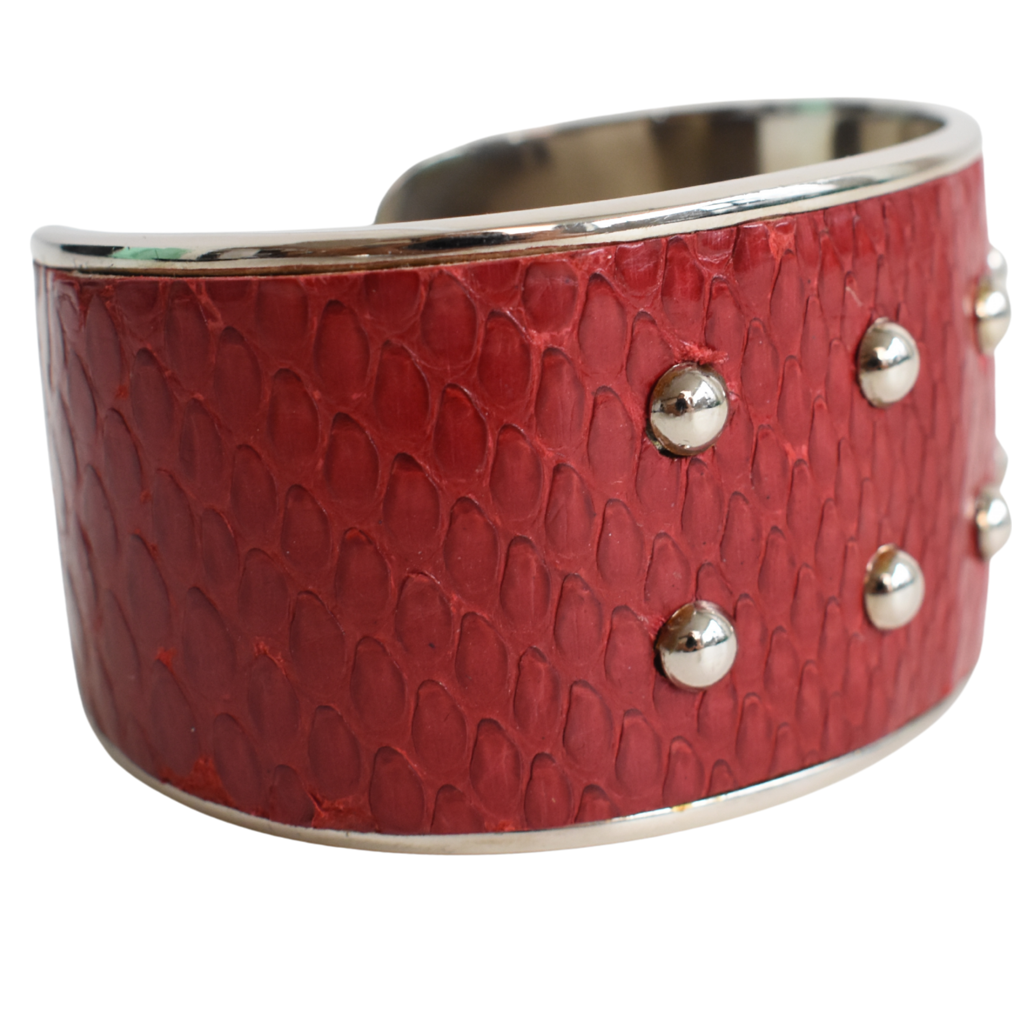 Tod's cuff bracelet in red snakeskin and silver-tone metal featuring two rows of small round studs.
