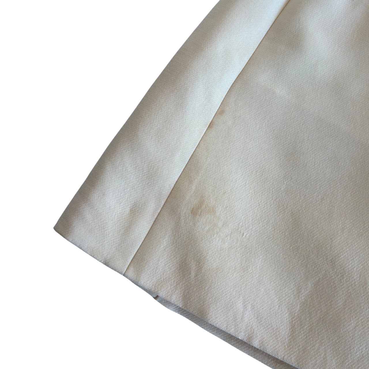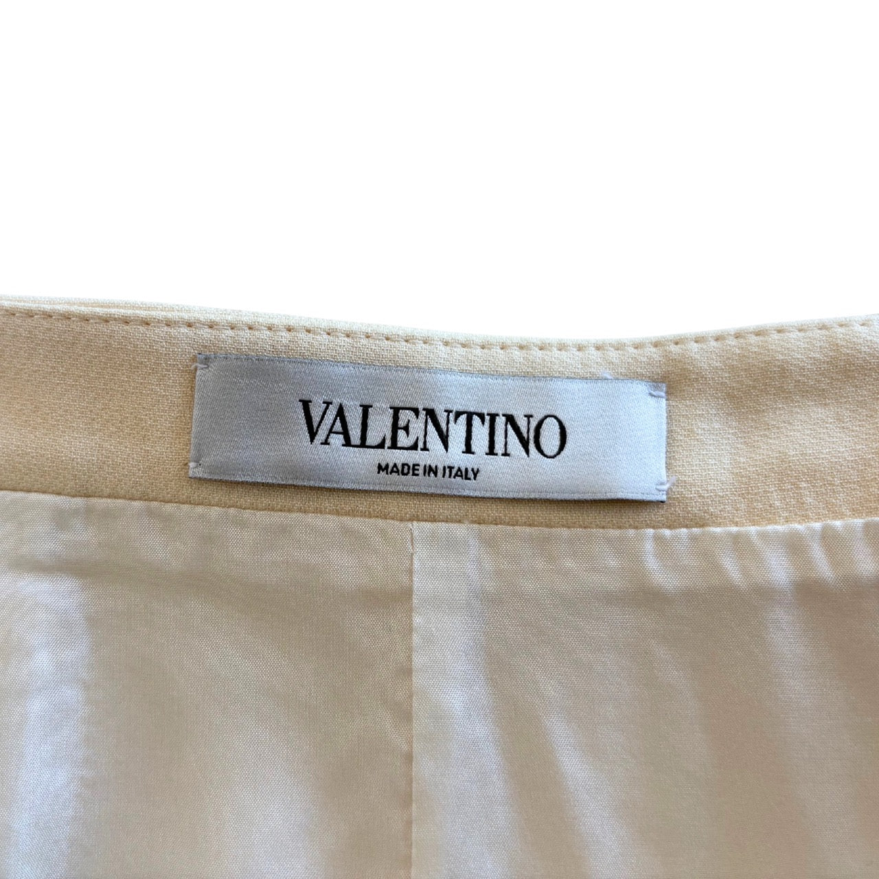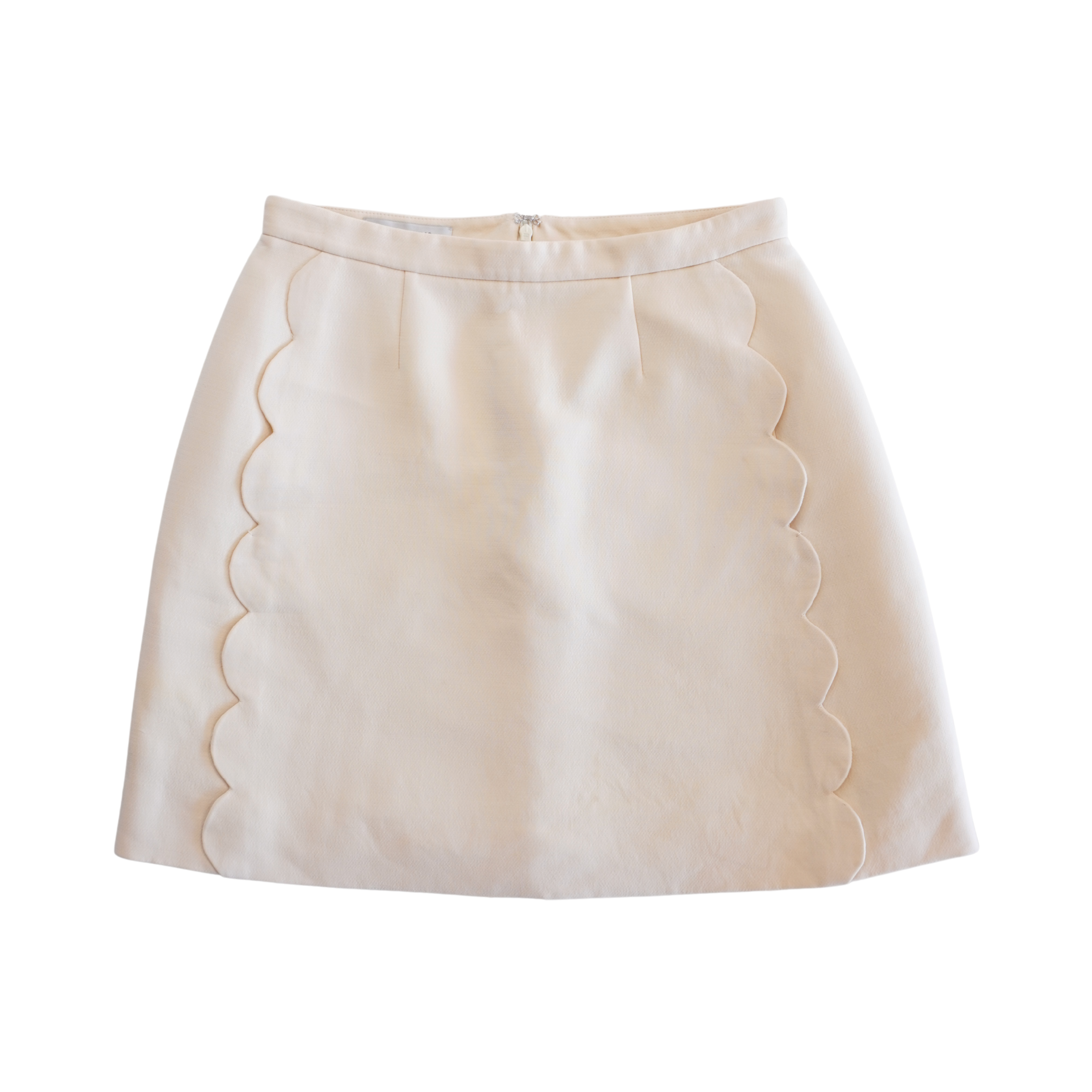Valentino a-line mini skirt in cream wool with scalloped front panel and thick waistband.