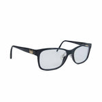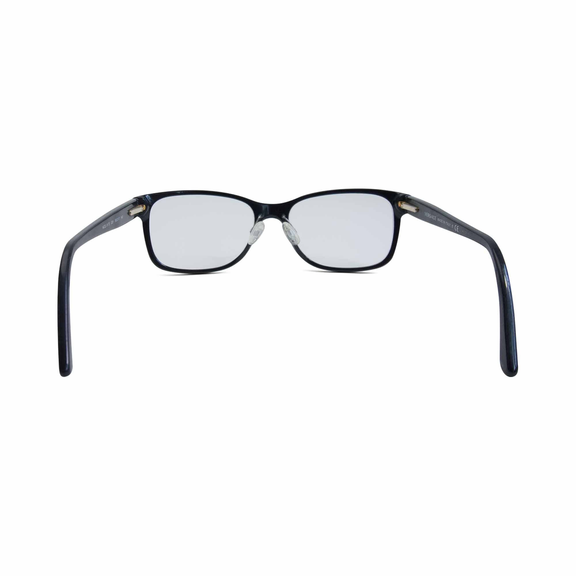 Versace eyeglasses in black acetate with a rounded square lens and a small gold logo plaque on the arms.