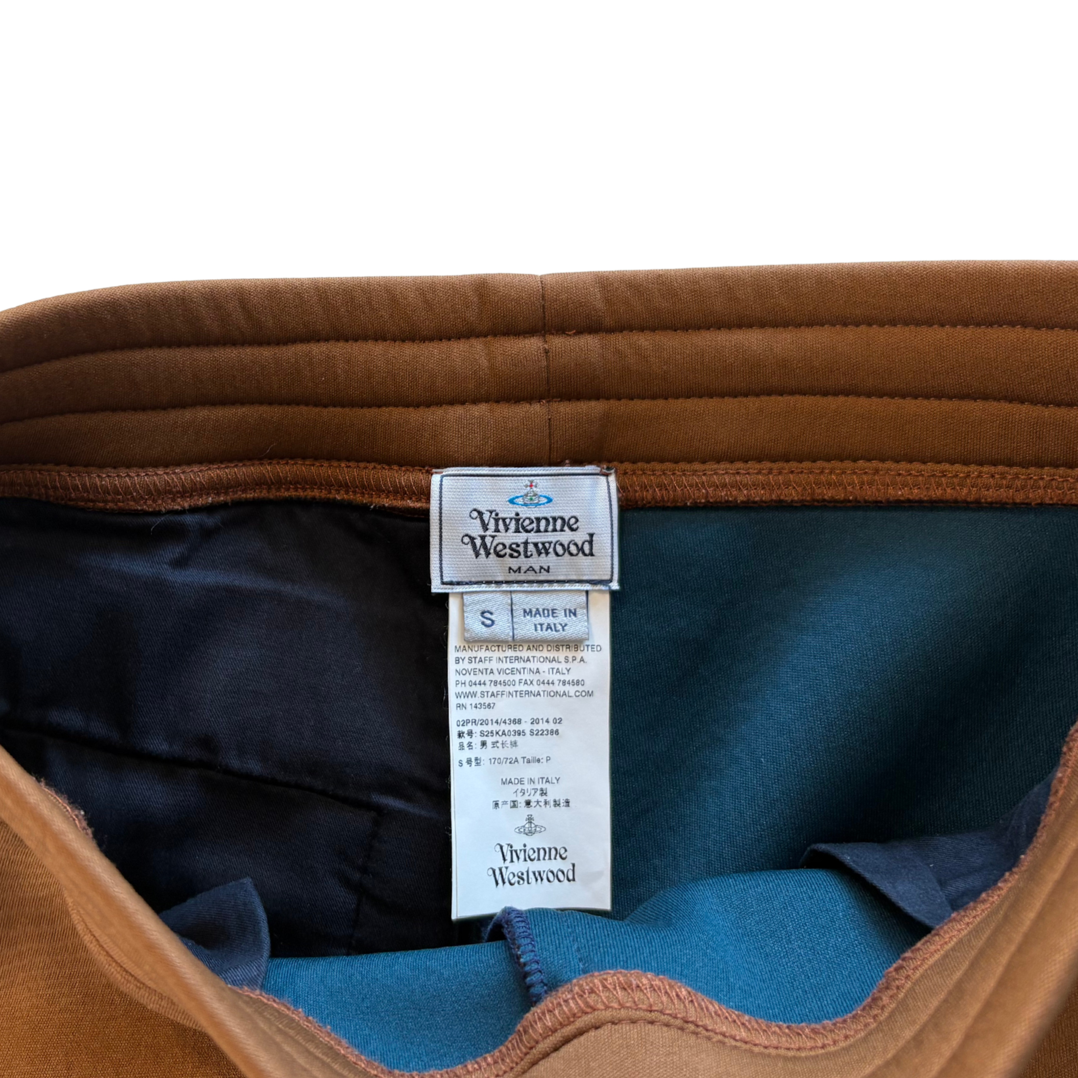Vivienne Westwood mid-length shorts in brown neoprene with embossed logo on right leg, side zip pockets and elastic waistband.