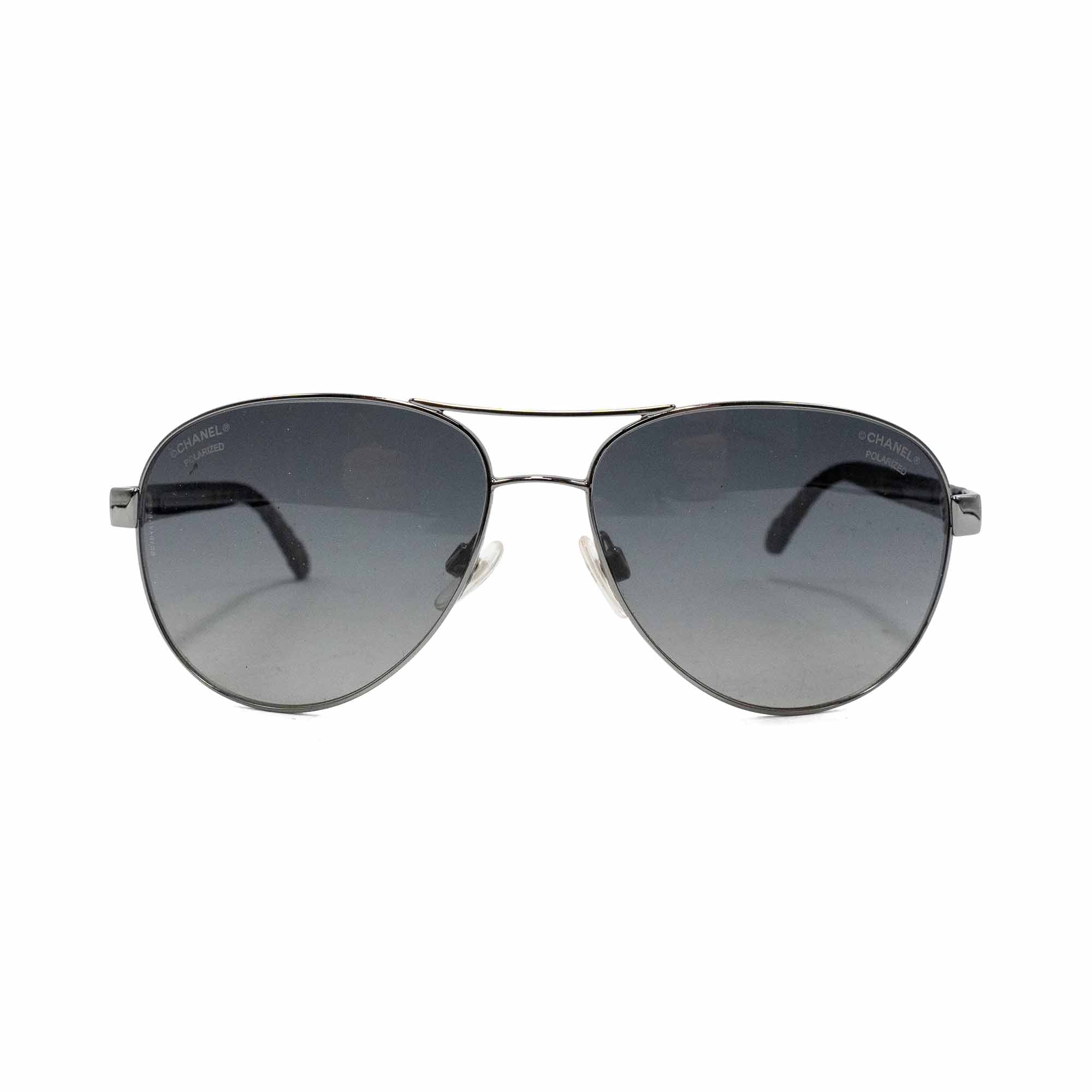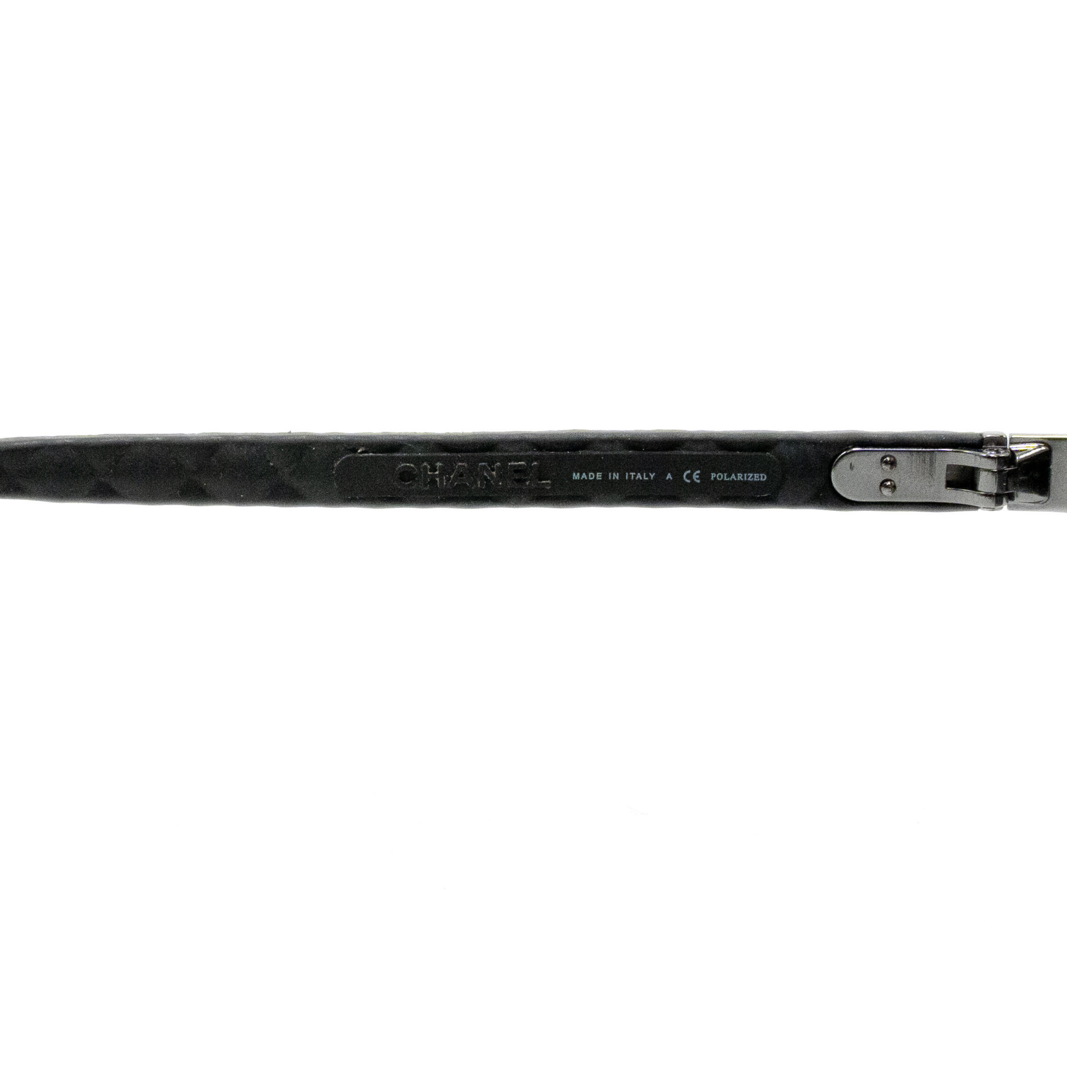 Chanel polorized aviator sunglasses with gunmetal frames and matte quilted arms.