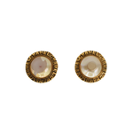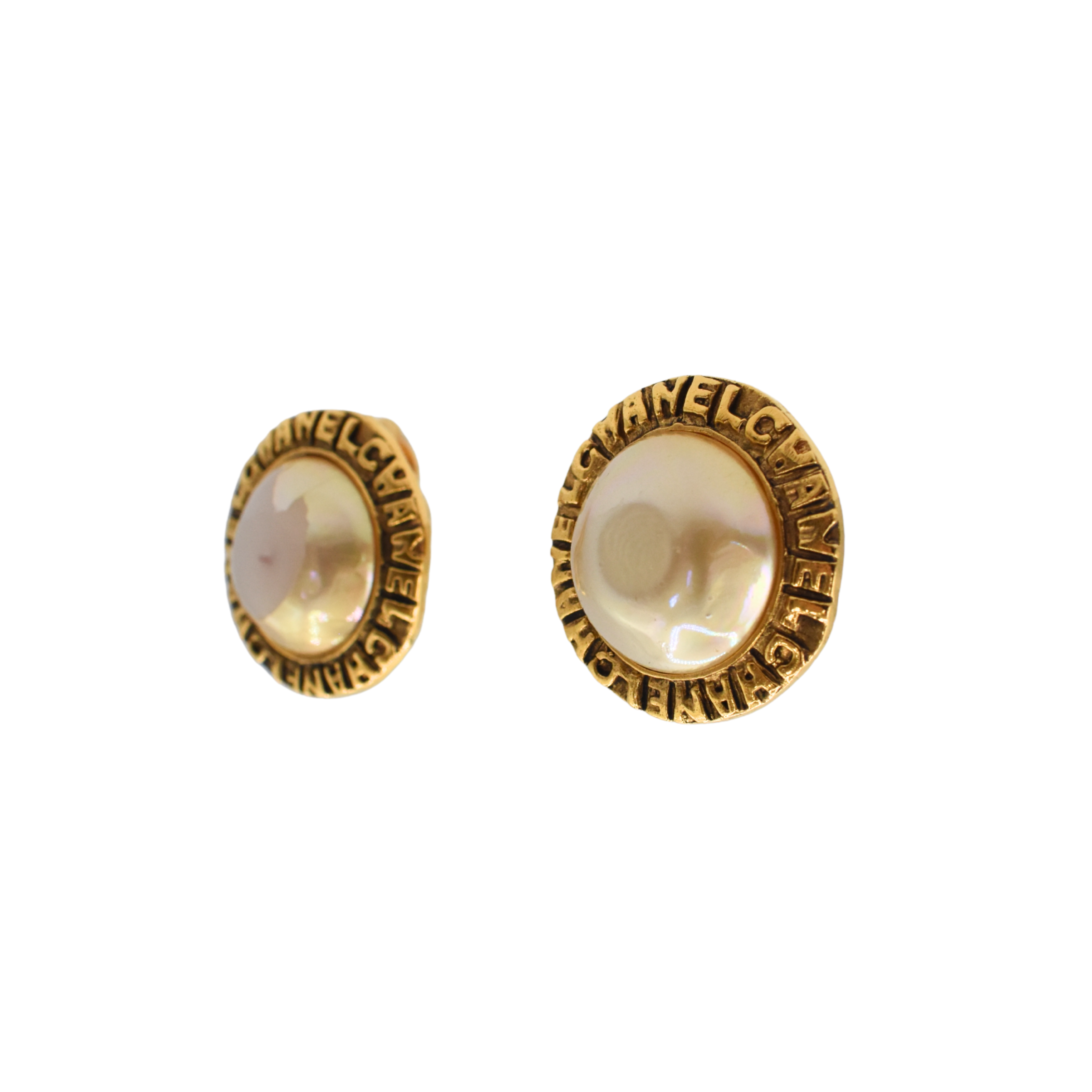 Chanel faux pearl clip on earrings in gold plated metal with logo border.