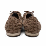 Christian Dior round toe ballet flats in brown trotter monogram canvas with a brown leather bow with on the upper, 'CD' gold embellishments, and a white raised sole.
