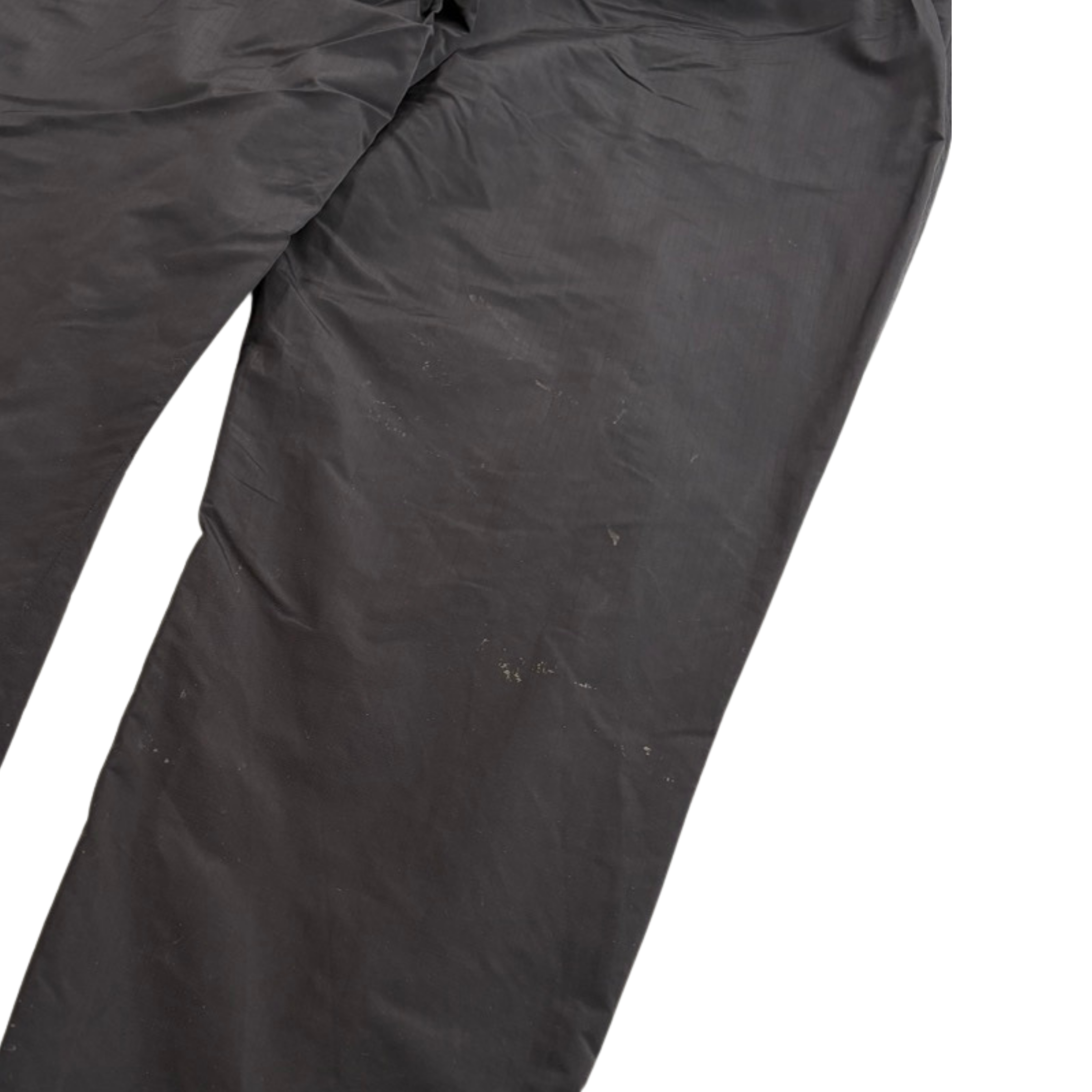 Dior tapered cargo pants in black nylon with a black canvas cargo pocket. Features hidden button closure, slip pockets on front, adjustable velcro at the ankle, and a small logo patch above back pockets.