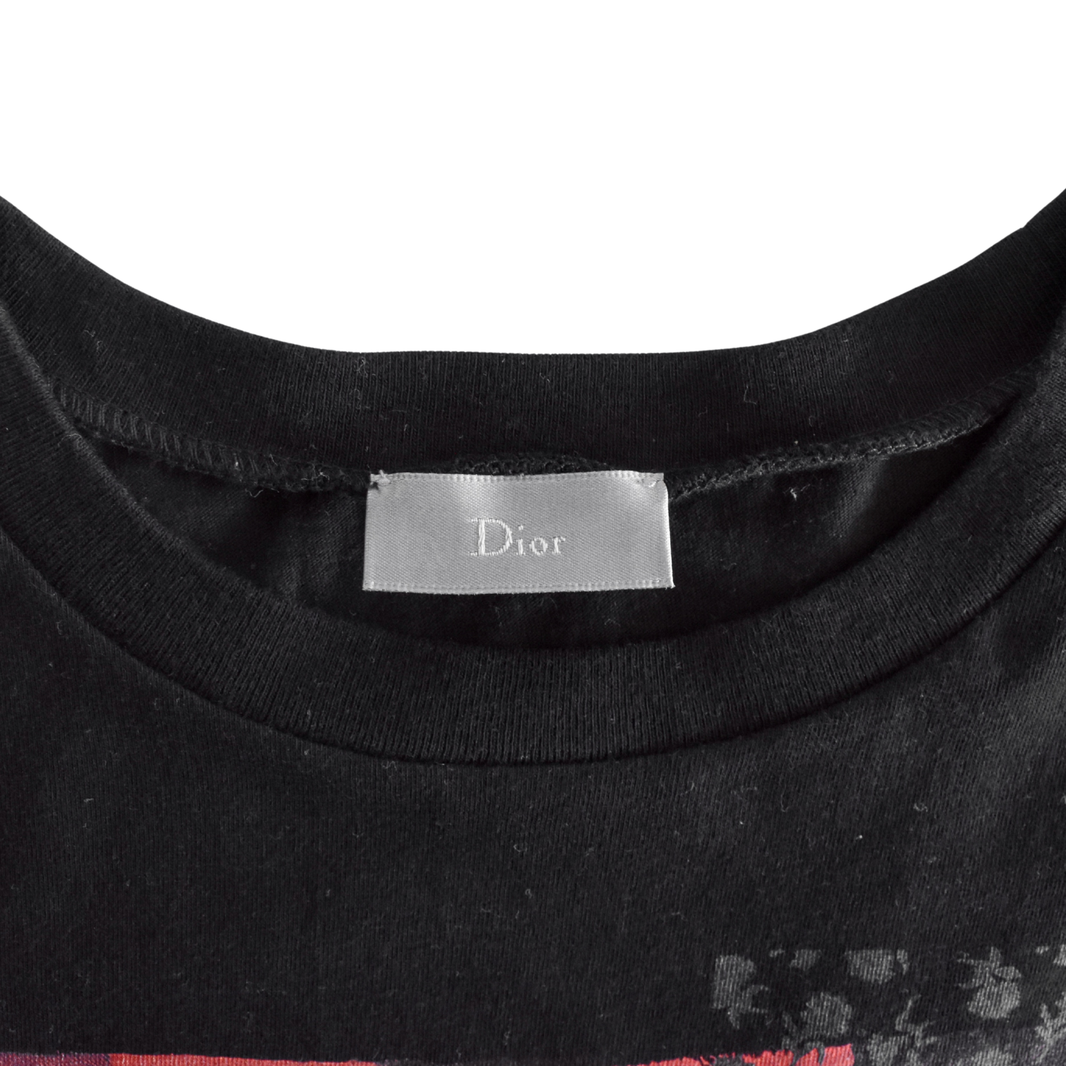 Dior Homme 'SS16' short sleeve t-shirt in black with red, grey, and black patchwork graphic.