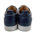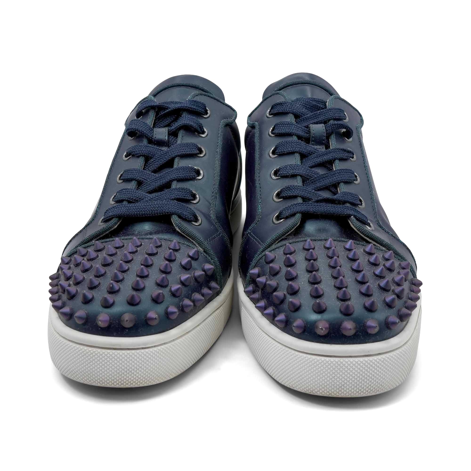 Christian Louboutin 'Louis Spike' low-top sneakers in iridescent blue leather with a tonal spiked toe and white soles.