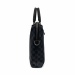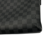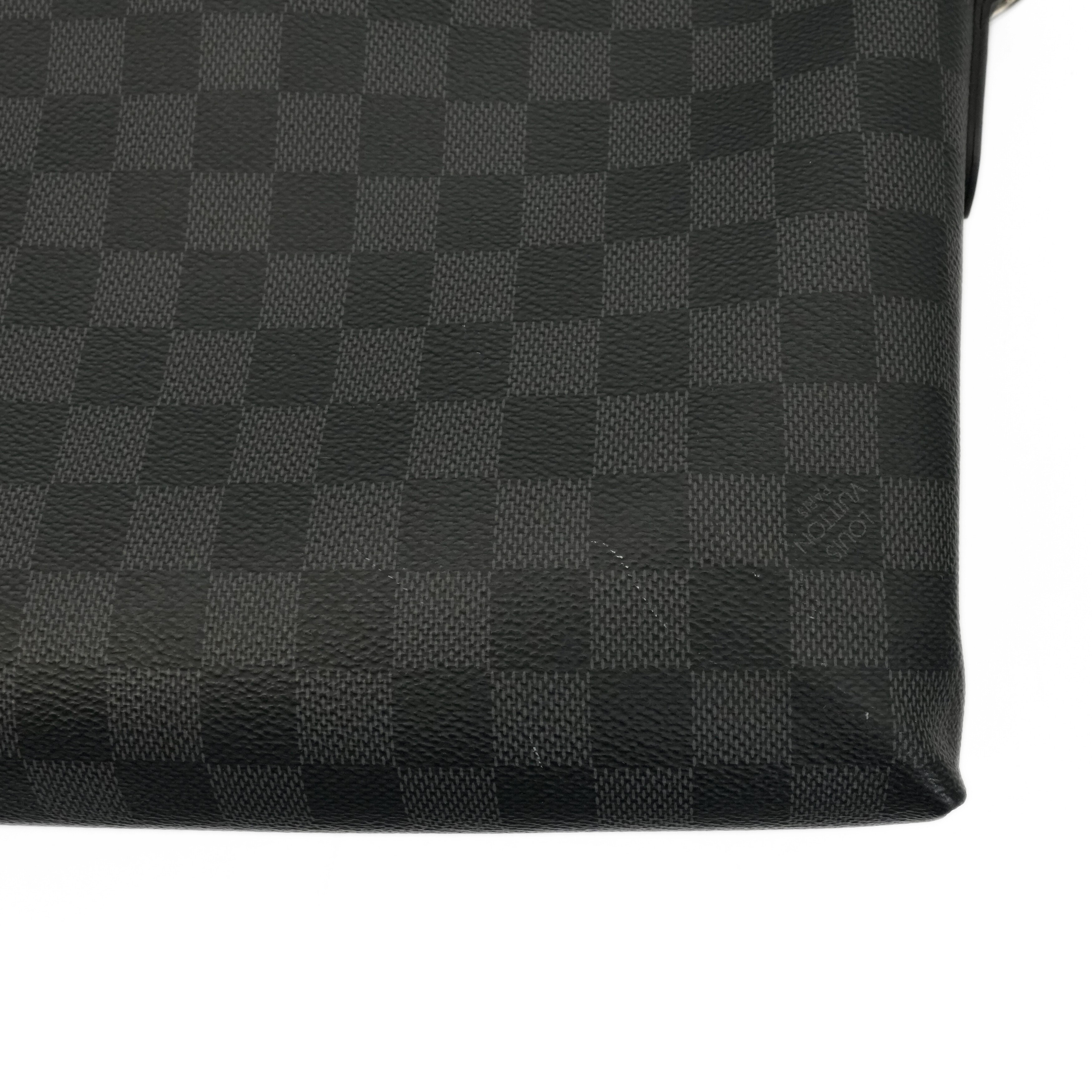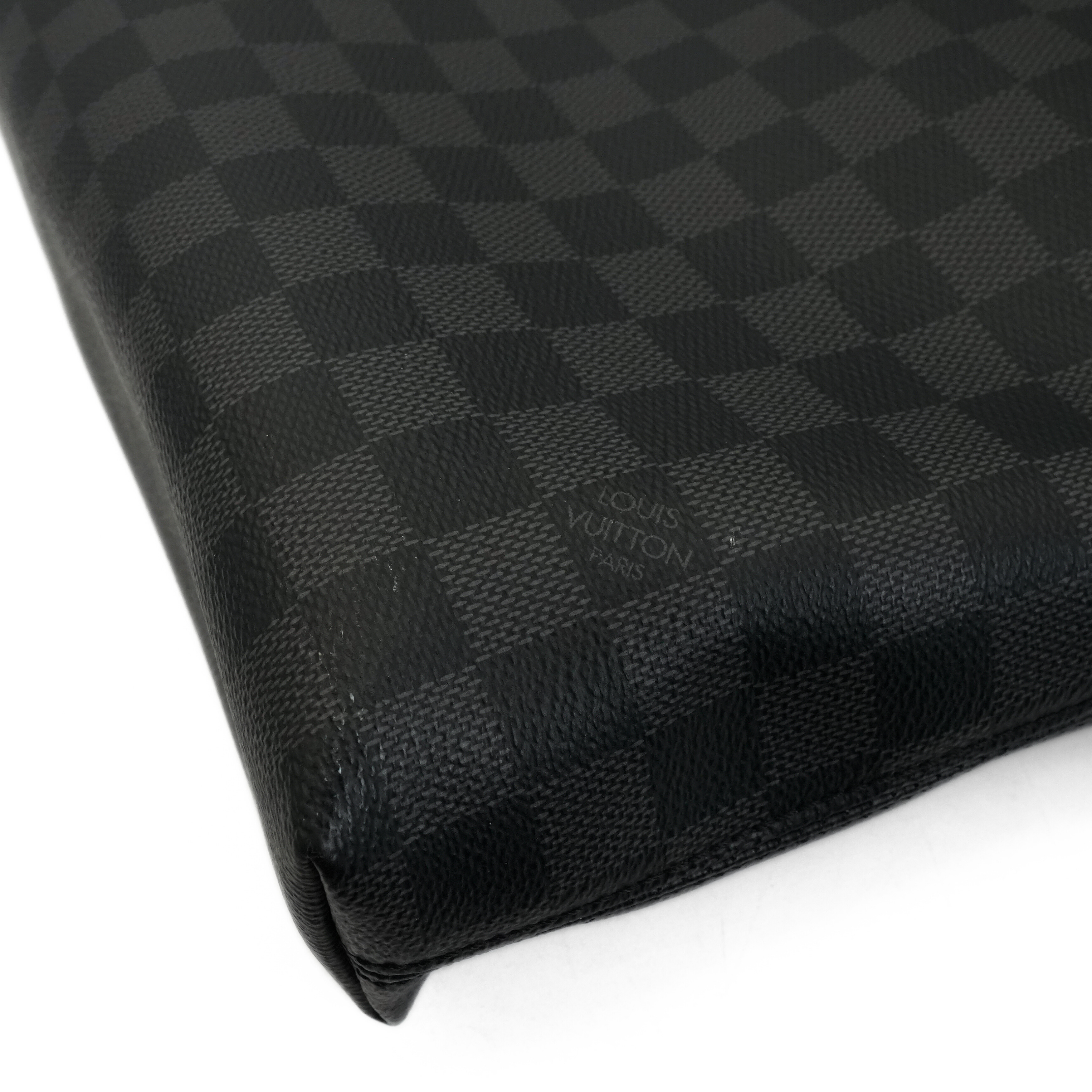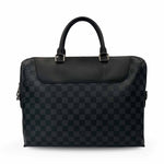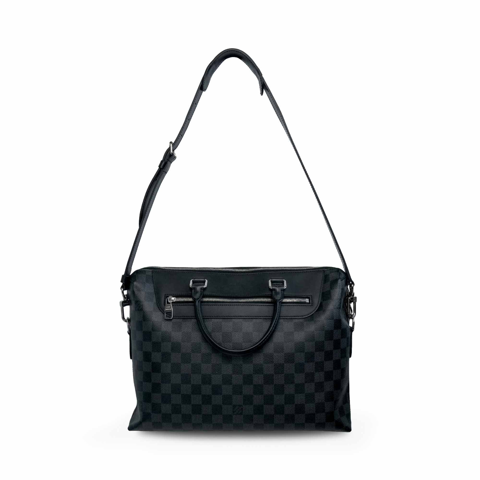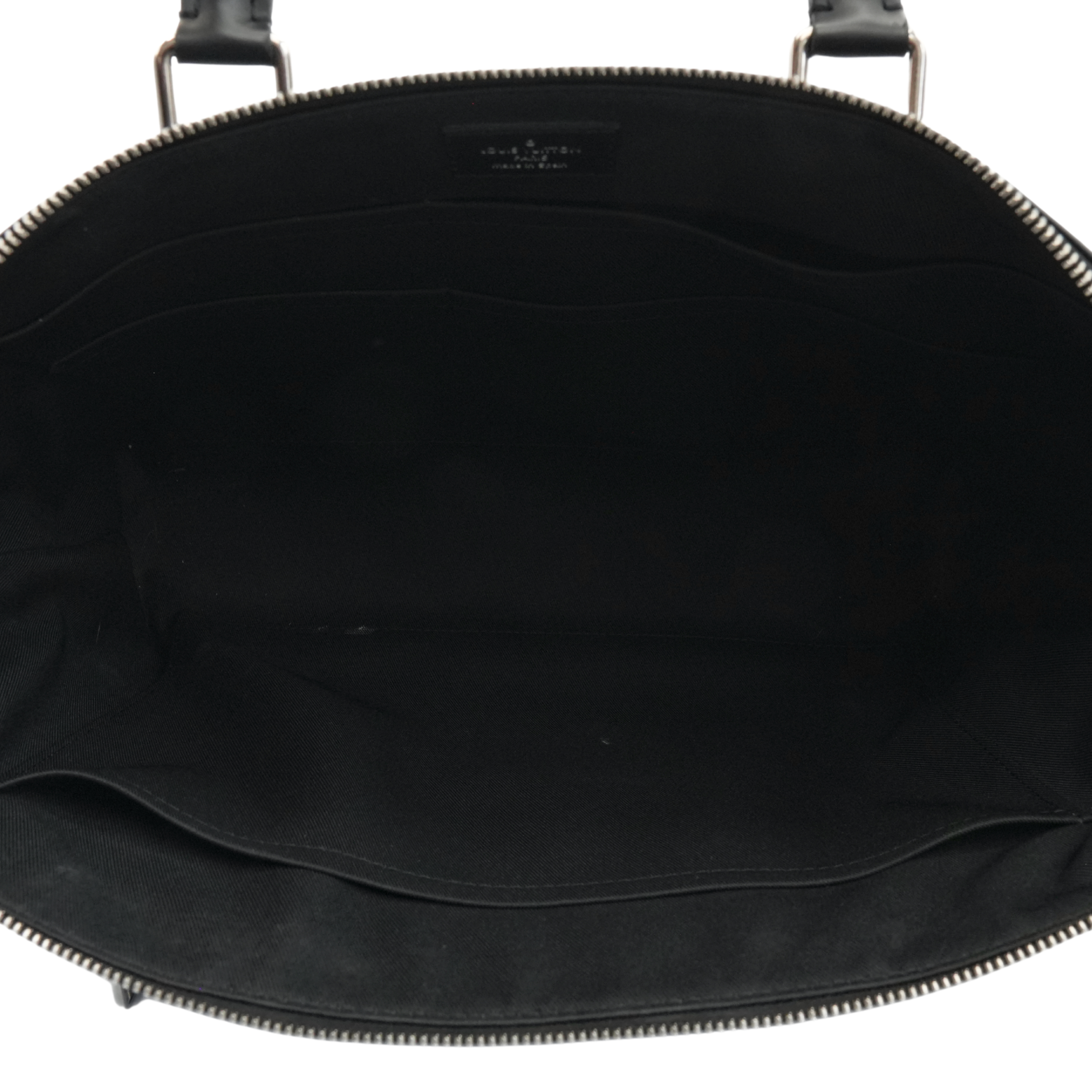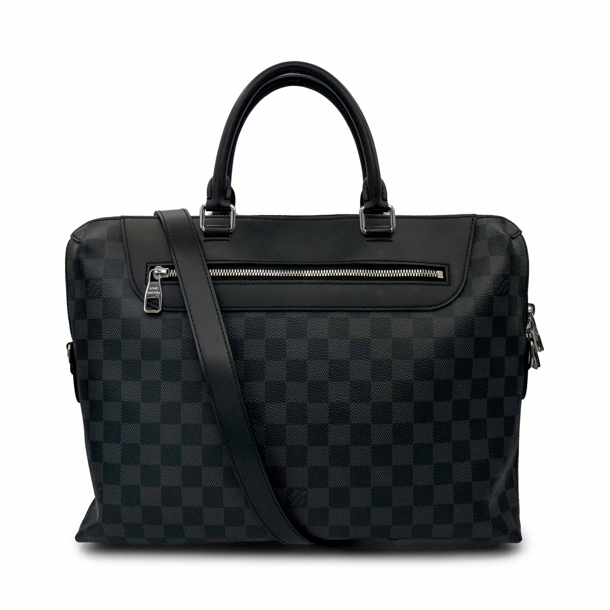 Louis Vuitton 'Porte-Document' briefcase in damier graphite coated canvas with black leather accents and silver hardware. Features a main pocket with two way zippers and a flat front zip pocket. The interior is lined with black canvas and features several slip pockets.